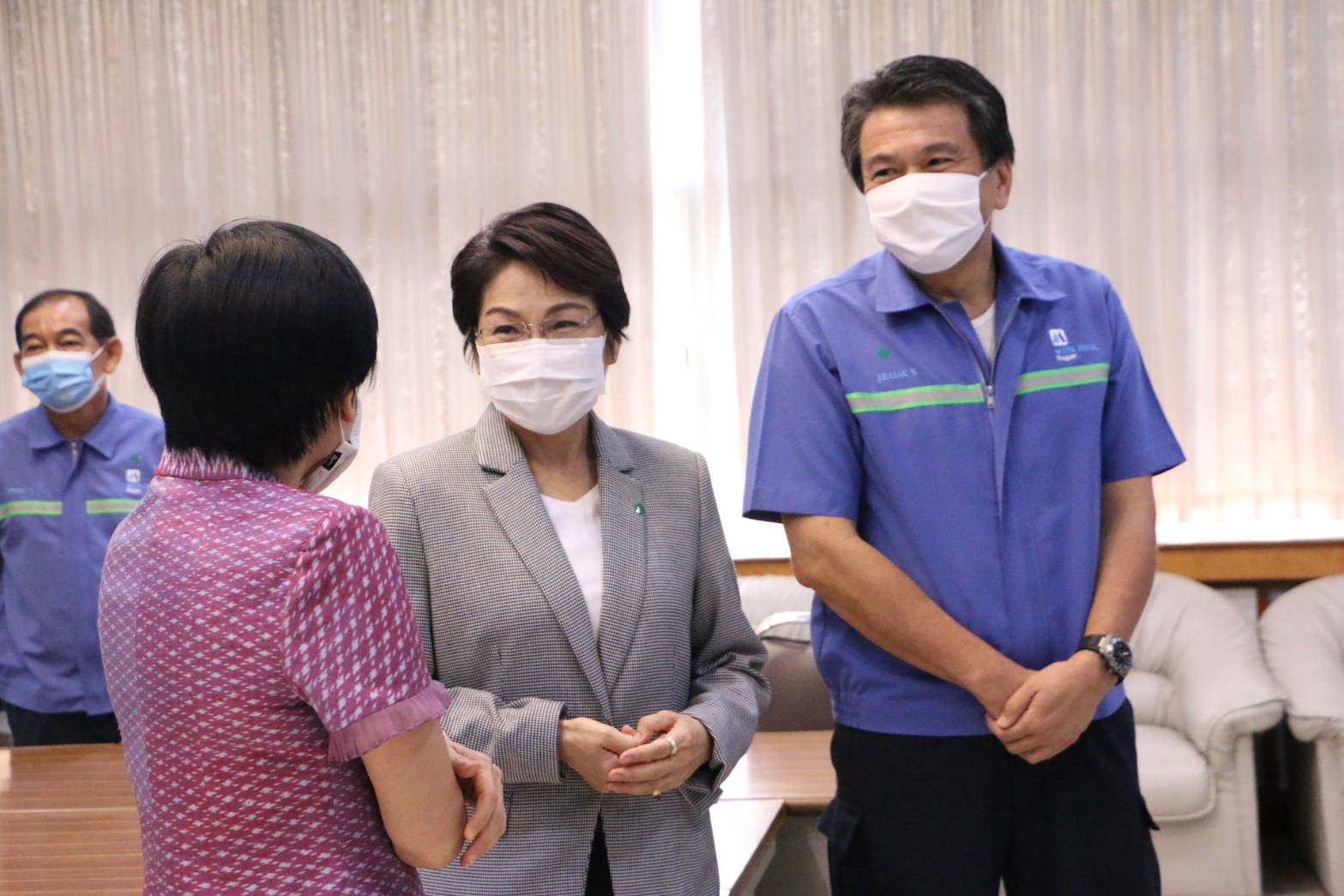 คุณผ่องศรี ว่องกุศลกิจและคุณ จิรศักดิ์ ว่องกุศลกิจ เป็นตัวแทนมอบ ให้นายแพทย์ธิติ แสวงธรรม ผอ. โรงพยาบาลบ้านโป่ง พร้อมด้วยบุคคลากรทางการแพทย์ร่วมรับมอบ