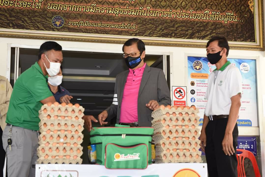 ราชบุรี น้ำใจชาวราชบุรีส่งเสบียงอาหารต้านภัยป้องกันโควิด 19ผ่านผู้ว่าราชการจังหวัดราชบุรี เช้าวันนี้ 21เมษายน 2563 ที่บริเวณหน้าศาลากลางจังหวัดราชบุรี นายชยาวุธ จันทร ผู้ว่าราชการจังหวัดราชบุรี รับมอบอาหารจากใจร่วมต้านภัย โควิด-19จากบริษัท เจริญโภคภัณฑ์อาหารจำกัด (มหาชน) โดยมีนายชาญณรงค์ เทียนจันทร์ ผู้จัดการแผนกขนส่ง เป็นผู้ส่งมอบ ประกอบด้วย ไข่ไก่ น้ำดื่ม และเนื้อสัตว์แช่แข็ง