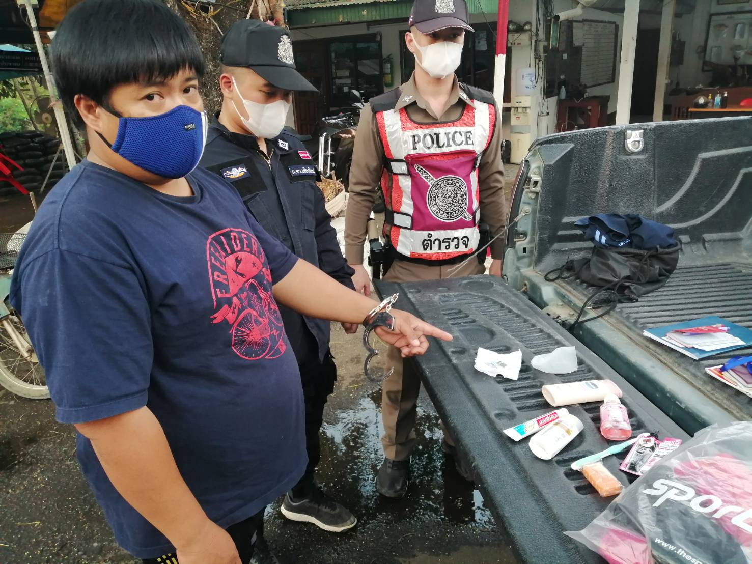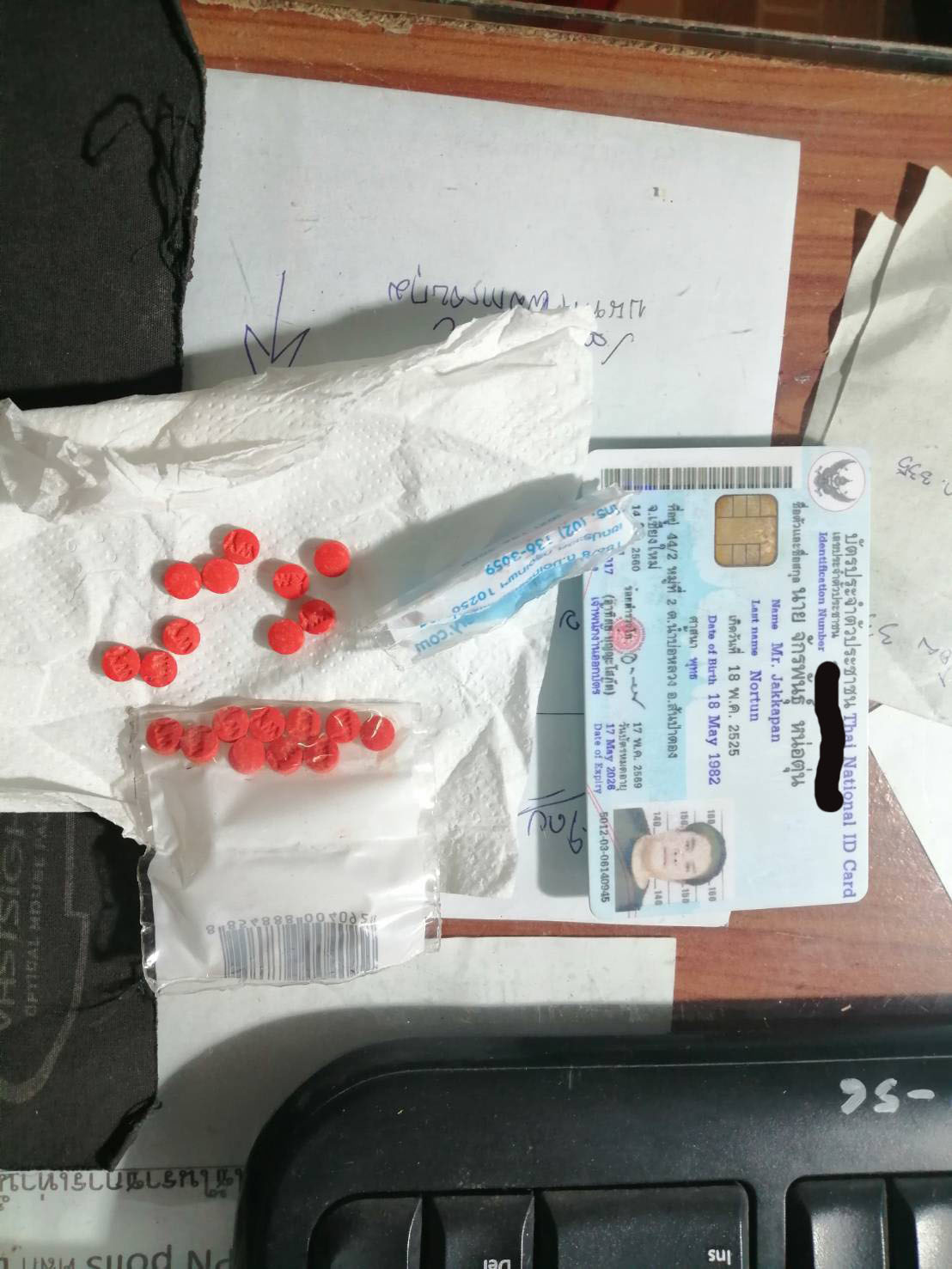 จึงได้ทำการขอตรวจค้นก่อนทำการตรวจค้น จึงทำการตรวจค้นร่างกาย ผลการตรวจค้นตัวไม่พบสิ่งผิดกฎหมายแต่อย่างใด จึงได้ทำการตรวจค้นรถยนต์คันดังกล่าว ผลการตรวจค้นพบ ของกลางลำดับที่ 1 บรรจุอยู่ในถุงพลาสติกใส ซุกซ่อนอยู่ในกระเป๋าสะพายหลังสีดำ วางอยู่เบาะหลังคนขับ จากการสอบถามนายนายจักรพันธ์ ฯ ยอมรับว่า ของกลางดังกล่าวว่าเป็นของตนเองจริง โดย ของกลางดังกล่าวได้ซื้อมาจากชายชาวเขา ในหมู่บ้านหม้อ ต.แม่ทะลบ อ.ไชยปราการ จ.เชียงใหม่ จำนวน 20 เม็ด ใน ราคาเม็ดละ 50 บาท เพื่อนำมาเสพเอง และรับว่าตนเองได้ไปเสพยาบ้า มาก่อน ทางเจ้าหน้าที่ได้นำตัวส่งพนักงานสอบสวนเพื่อดำเนินคดีตามกฏหมายแล้ว