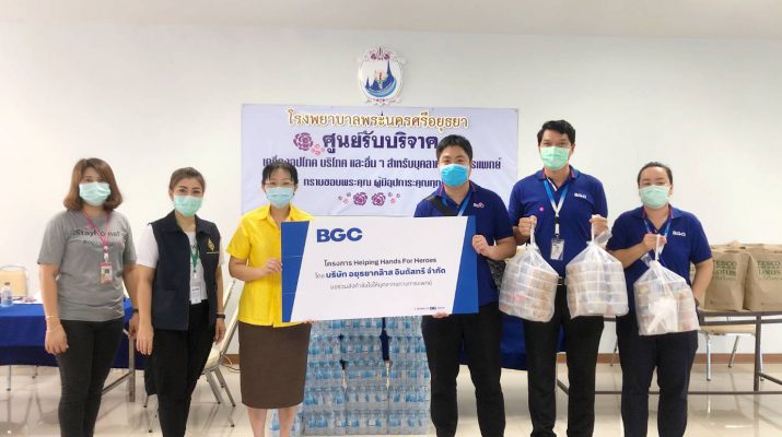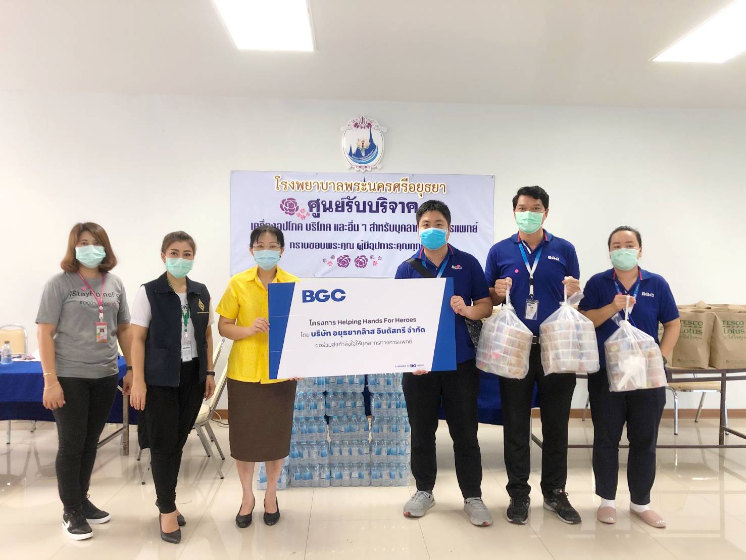 โรงพยาบาลพระนครศรีอยุธยา โดยศูนย์รับบริจาคเครื่องอุปโภคบริโภคสำหรับบุคลากรทางการแพทย์ รับมอบอาหารกล่องและอาหารสำเร็จรูปจาก ผู้บริหารและพนักงาน บริษัท อยุธยากล๊าส อินดัสทรี จำกัด (BGC อยุธยากล๊าส) เพื่อเป็นขวัญและกำลังใจให้กับ คุณหมอและพยาบาล รวมทั้งบุคลากรของ รพ.พระนครศรีอยุธยา ในการทำหน้าที่รักษาผู้ป่วย และร่วมต้านการแพร่เชื้อไวรัส COVID-19 ในพื้นที่ จ.พระนครศรีอยุธยา ซึ่งเป็นส่วนหนึ่งในโครงการ “Helping Hands for Heroes” ของบริษัทในเครือบางกอกกล๊าส