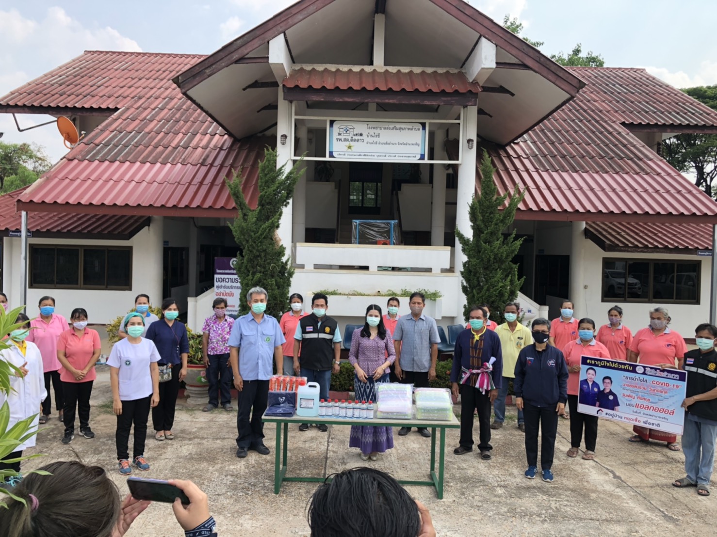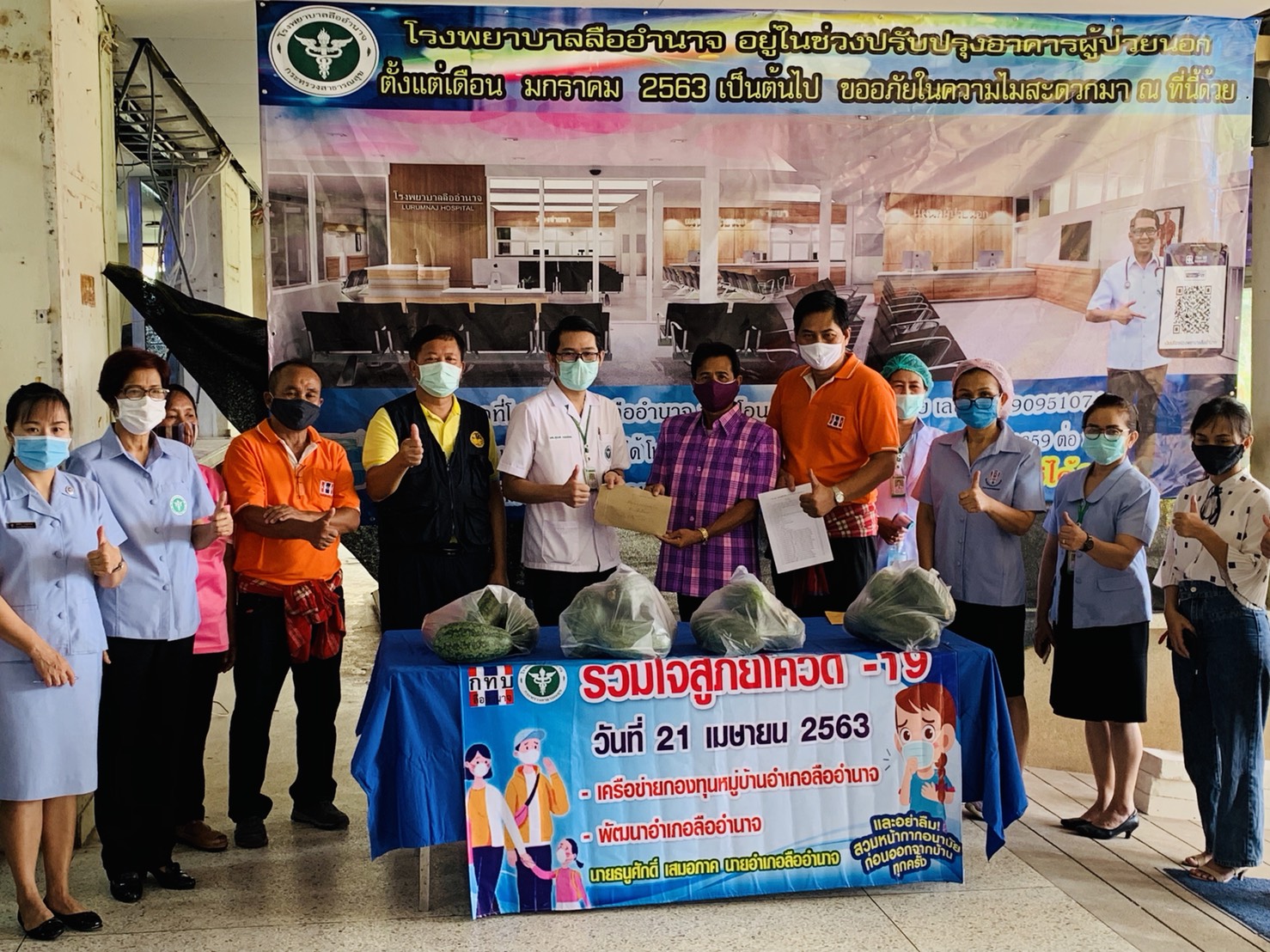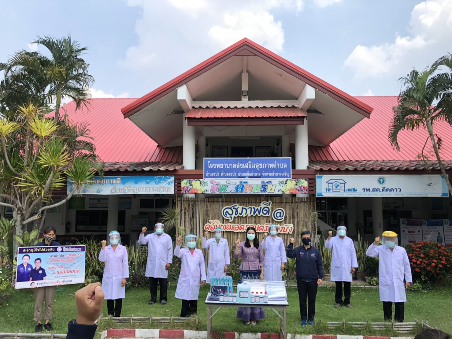 นายสุธี ทองแย้ม ผู้ว่าราชการจังหวัดอำนาจเจริญโครงการจังหวัดอำนาจเจริญ วันที่ 21 เมษายน 2563 เวลา 08.30 น. นายธนูศักดิ์ เสมอภาค นายอำเภอลืออำนาจ จังหวัดอำนาจเจริญ นางวัชราภรณ์ นาท้าว ปลัดอำเภอหัวหน้ากลุ่มงานบริหารงานปกครอง ร่วมให้การต้อนรับ กลุ่มภูมิใจไทอำนาจ คุณสุขสมรวย วันทนียกุล เลขานุการรัฐมนตรีว่าการกระทรวงคมนาคม มอบหมายให้คุณวันเพ็ญ ตั้งสกุล และกลุ่มภูมิใจไทอำนาจ ส่งมอบความห่วงใย เพื่อความปลอดภัยของเจ้าหน้าที่ รพ.สต.และ อสม. โดยได้มอบแอลกอฮอล์ล้างมือ หน้ากาก face shield, ผ้าบัฟสำหรับปิดจมูก และข้าวเกรียบมโนห์รา