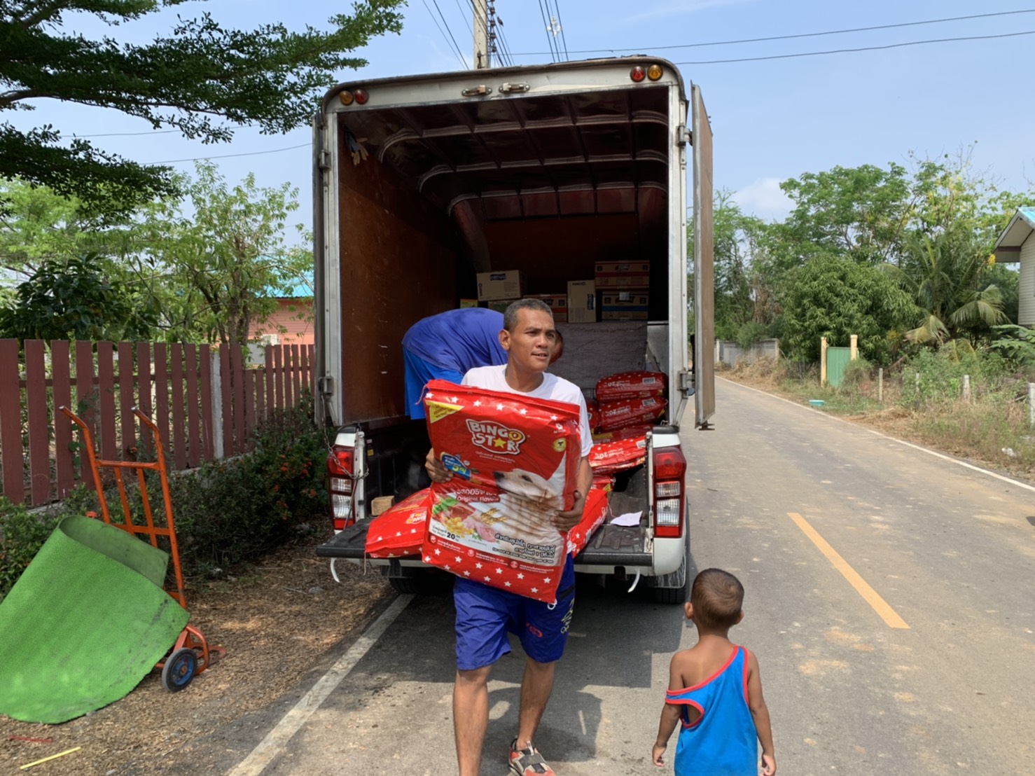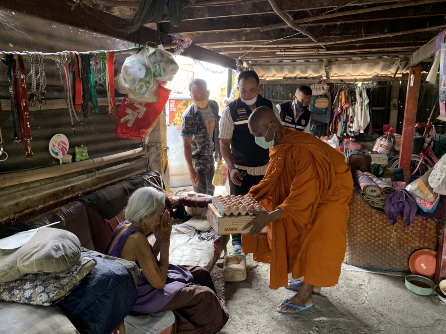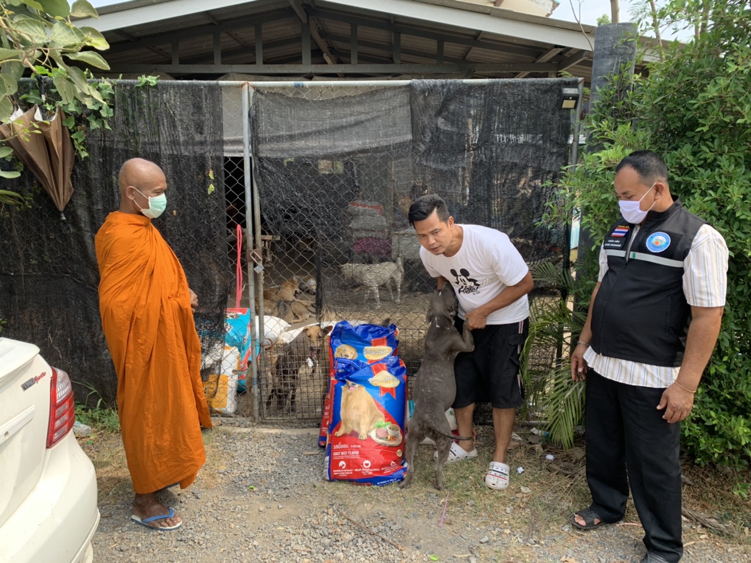 พระครูสมุห์อำนวย โชติปัญโญ เจ้าอาวาสวัดโปรยฝนคลอง 11 กล่าวว่า ได้นำข้าวสารอาหารเม็ดอย่างละ 2 กระสอบพร้อมปัจจัยมามอบทานมอบธรรมให้แก่ตลกต๊ะติ๊งโหน่งเพื่อนำไปดูแลเลี้ยงดูสุนัขกว่า 400 ตัวที่ตลกดังดูแลอยู่ เนื่องจากได้รับทราบข่าวจากสื่อต่างๆจึงรู้สึกสงสารและเกิด ความเมตตาจึงได้นำอาหารเม็ดและข้าวสารมามอบให้ในครั้งนี้ อีกครั้งในวันนี้ยังได้จัดถุงยังชีพเพื่อมอบทานมอบธรรมแก่ประชาชนที่ด้อยโอกาสในพื้นที่อีกจำนวนหนึ่งเพื่อเป็นกำลังใจให้เขาเหล่านี้ผ่านพ้นวิกฤติช่วงนี้ไปให้ได้ ด้านนายประพาส ศรีอ่อน หรือ ตลกบ้าหมา ต๊ะติ๊งโหน่ง กล่าวว่าขอขอบคุณทางผู้ใจบุญทั้งหลายที่ส่งอาหารเม็ดมาให้โดยเฉพาะในวันนี้ทาง พระครูสมุห์อำนวย โชติปัญโญ เจ้าอาวาสวัดโปรยฝนคลอง 11 ที่มีเมตตากับน้องหมากว่า 400 ตัวโดยนำข้าวสารอาหารเม็ดนำมามอบทานมอบธรรมในครั้งนี้ ซึ่งทางเราก็ยังต้องการทั้งเข้าวสารอาหารเม็ดอยู่ เนื่องจากน้องหมายังต้องกินอยู่ทุกวันซึ่งสามารถติดต่อตนเองได้โดยตรงที่เบอร์โทร 089-481-0635 ตลอด 24 ชั่วโมง
