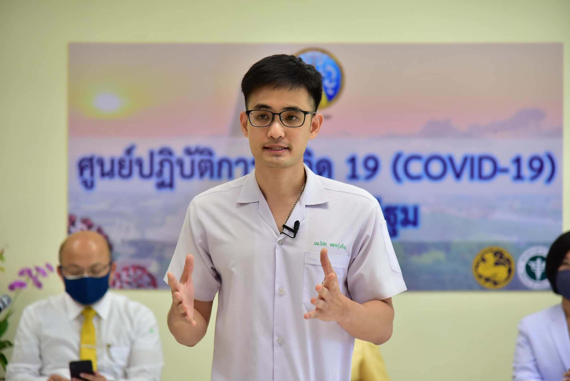 วันที่ 22 เมษายน 2563 ที่ห้องแถลงข่าว ศูนย์ปฏิบัติการ COVID-19 จังหวัดนครปฐม นายชาญนะ เอี่ยมแสง ผู้ว่าราชการจังหวัดนครปฐม พร้อมด้วย นายแพทย์สามารถ ถิระศักดิ์ นายแพทย์สาธารณสุขจังหวัดนครปฐม และแพทย์หญิงดารารัตน์ รัตนรักษ์ ผู้อำนวยการโรงพยาบาลนครปฐม ร่วมแถลงสถานการณ์การแพร่ระบาดของไวรัส COVID-19 ประจำวันที่ 22 เมษายน 2563 ซึ่งในวันนี้จังหวัดนครปฐมพบผู้ติดเชื้อรายใหม่เพิ่มขึ้น จำนวน 2 คน ได้แก่ เด็กชาย อายุ 12 ปี อาศัยอยู่ในพื้นที่ตำบลบ่อพลับ อำเภอเมืองนครปฐม มีอาการป่วยเมื่อวันที่ 20 เมษายน 2563 แพทย์ได้ทำการตรวจพบเชื้อ COVID-19 และเข้ารับการรักษาที่โรงพยาบาลนครปฐม