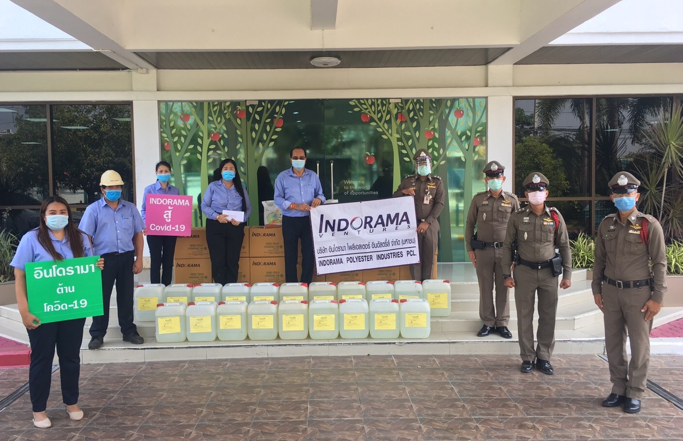 บริษัท อินโดรามา โพลีเอสเตอร์ อินดัสตรีส์ จำกัด (มหาชน) จังหวัดนครปฐม บริษัทในกลุ่มอินโดรามา เวนเจอร์ส หรือไอวีแอล นำทีมพนักงานอาสาสมัครลงพื้นที่ชุมชนให้บริการฆ่าเชื้อโรคบริเวณบ้านเรือน ป้ายรถประจำทาง ถนน และทางเท้าในชุมชนขุนแก้ว โรงเรียนสว่างอารมณ์และวัดสว่างอารมณ์ จังหวัดนครปฐม ตลอดจนมอบข้าวสาร อาหารแห้ง น้ำดื่ม หน้ากากอนามัยและเจลล้างมือแก่เจ้าหน้าที่ตำรวจ สถานีตำรวจภูธรนครชัยศรี และสถานีตำรวจภูธรเมืองนครปฐม เพื่อช่วยกันป้องกันชุมชนให้ปลอดภัย และสร้างขวัญกำลังใจให้แก่เจ้าหน้าที่ตำรวจในระหว่างการปฏิบัติหน้าที่ รับมือกับสถานการณ์การแพร่ระบาดของโควิด-19