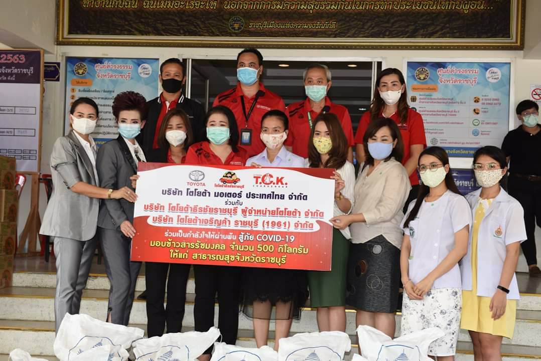 วันที่ 22 เม.ย. 63 ที่บริเวณด้านหน้าศาลากลางจังหวัดราชบุรี นายชยาวุธ จันทร ผู้ว่าราชการจังหวัดราบุรี รับมอบอาหาร เงิน และรถยนต์ให้ยืม เพื่อใช้ในภารกิจของศูนย์บริหารสถานการณ์การแพร่ระบาดของโรคติดเชื้อไวรัสโคโรนา จังหวัดราชบุรี และโครงการคนราชบุรีไม่ทิ้งกัน จากภาคเอกชนในจังหวัดราชบุรี ซึ่งประกอบด้วย คุณสุนิสา อัตถศาสตร์ กรรมการรองผู้จัดการบริษัทโตโยต้าธีรชัย ราชบุรี ร่วมกับบริษัทโตโยต้าเจริญค้า ราชบุรี จำกัด มอบข้าวสารรัชมงคลจำนวน 1.5 ตัน พร้อมให้ยืมรถยนต์ จำนวน 2 คัน