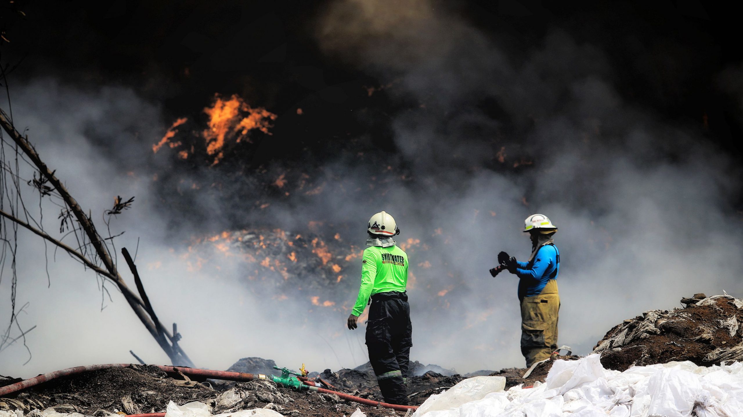 ด้านเจ้าหน้าที่ อบต.ยังคงฉีดน้ำเพื่อควบคุมเพลิงไหม้ไว้ไม่ให้ลุกลาม แต่ยังไม่สามารถดับได้สนิท อีกทั้งได้คอยเฝ้าระวังและคอยฉีดน้ำเลี้ยงไว้ไม่ให้ลุกลามไปบริเวณบ้านเรือนประชาชนที่อยู่ใกล้เคียง โชคดีที่วันนี้ยังไม่มีลมพัดแรง จึงทำให้ควันไฟไม่คลุ้งไปมาก แต่ก็ยังพบว่าควันไฟบางส่วนลอยไปทางบ้านเรือนประชาชนด้วยเช่นกันแต่ได้ประชาสัมพันธ์แจ้งให้ประชาชนที่อยู่พื้นที่ใกล้เคียงใส่หน้ากากป้องกันกลิ่นควันไฟด้วย