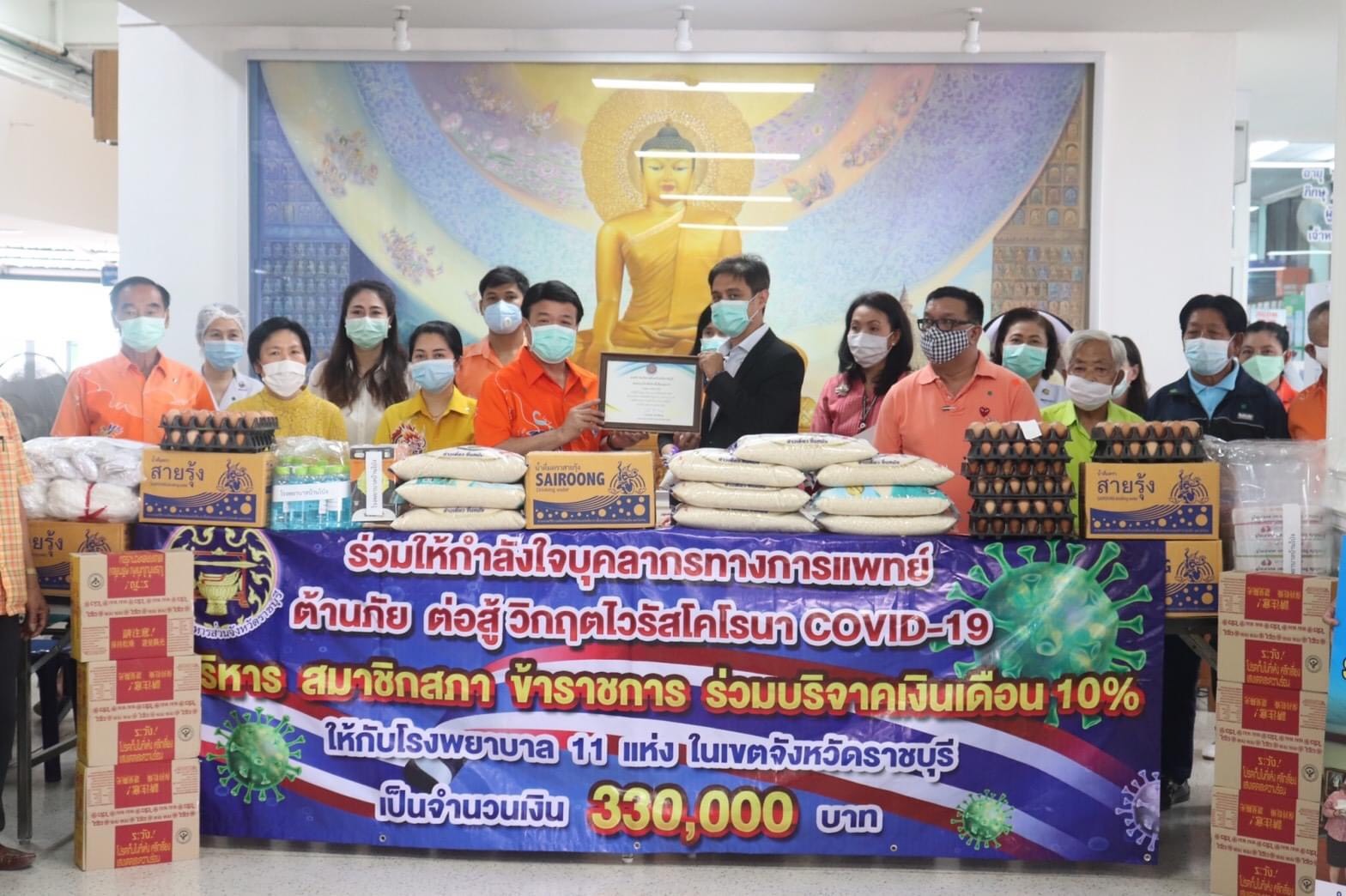 วันที่ 23 เมษายน 2563 : องค์การบริหารส่วนจังหวัดราชบุรี จัดทำโครงการช่วยเหลือผู้ได้รับผลกระทบจากการแพร่ระบาดโรคติดเชื้อไวรัสโคโรนา 2019 (COVID-19) โดยการรับบริจาคเงินจากภาคเอกชนและเงินร่วมสมทบจากคณะผู้บริหาร ข้าราชการ ลูกจ้างประจำ และพนักงานจ้างขององค์การบริหารส่วนจังหวัด และสมาชิกสภาองค์การบริหารส่วนจังหวัดราชบุรี เพื่อส่งมอบให้กับโรงพยาบาลของรัฐ จำนวน 11 แห่ง ในจังหวัดราชบุรี ซึ่งรวมถึงโรงพยาบาลบ้านโป่งด้วย โดย นายวันชัย ธีระสัตยกุล นายกองค์การบริหารส่วนจังหวัดราชบุรี นายสม เอี้ยวสุวรรณ รองนายกองค์การบริหารส่วนจังหวัดราชบุรี พ.ต.อ.ชาลี สร้อยสุมณฑา รองนายกองค์การบริหารส่วนจังหวัดราชบุรี นายสมาน โล่ห์สวัสดิ์กุล ที่ปรึกษานายกองค์การบริหารส่วนจังหวัดราชบุรี และทีมสมาชิกสภาจังหวัด บริจาคเงิน จำนวน 30,000 บาท (สามหมื่นบาทถ้วน)