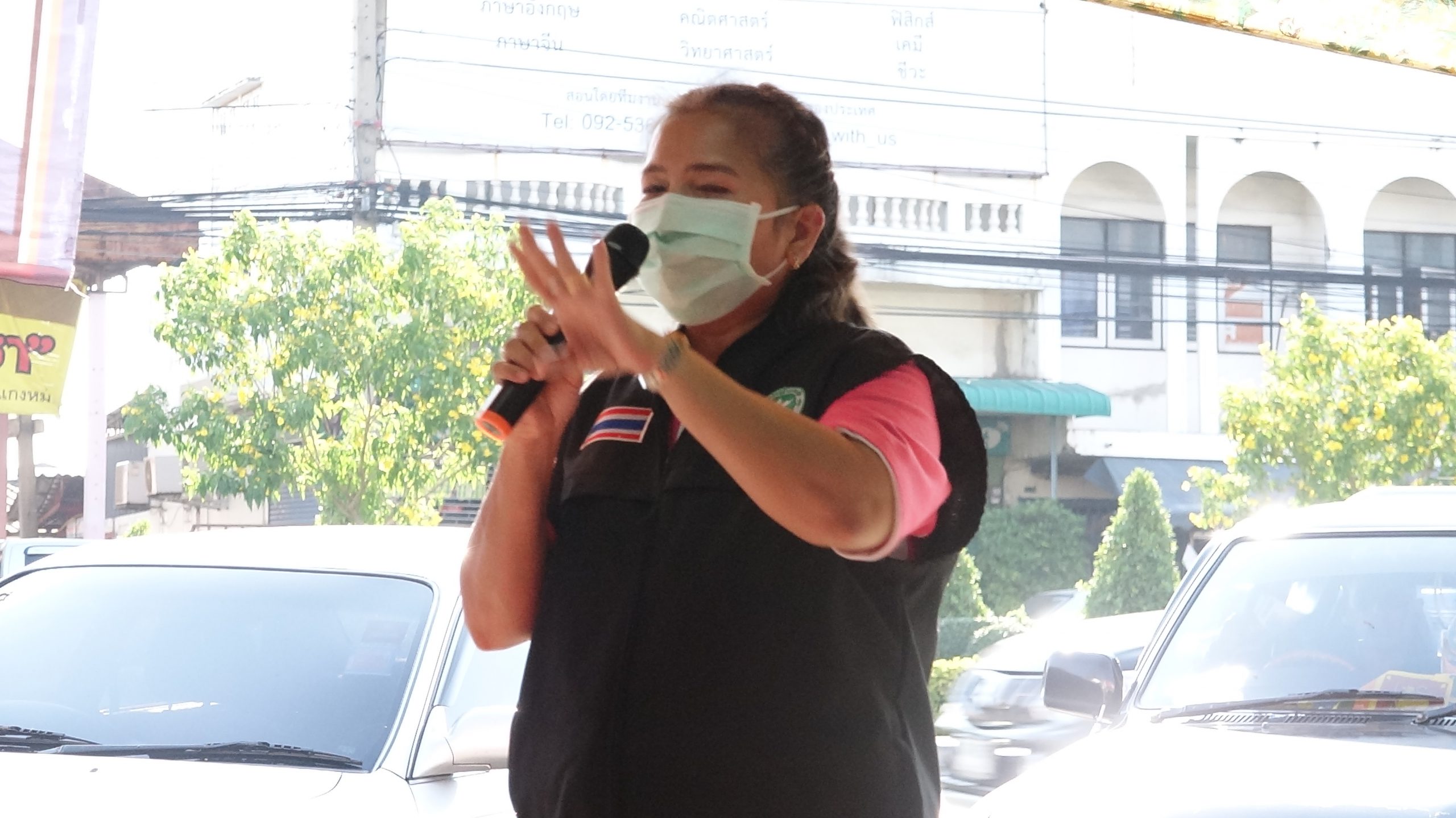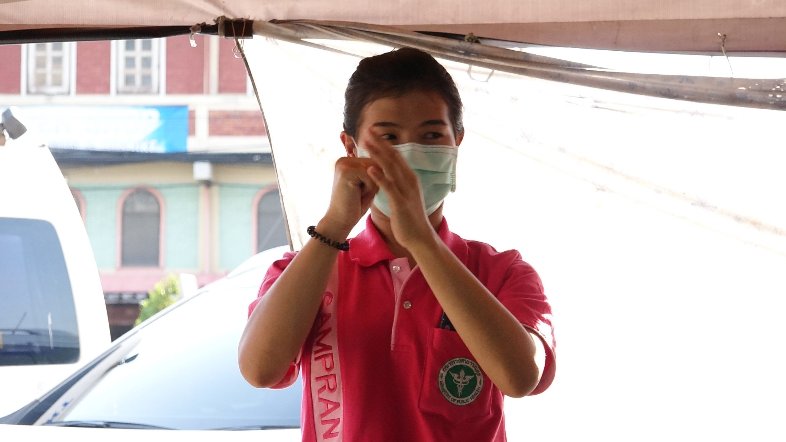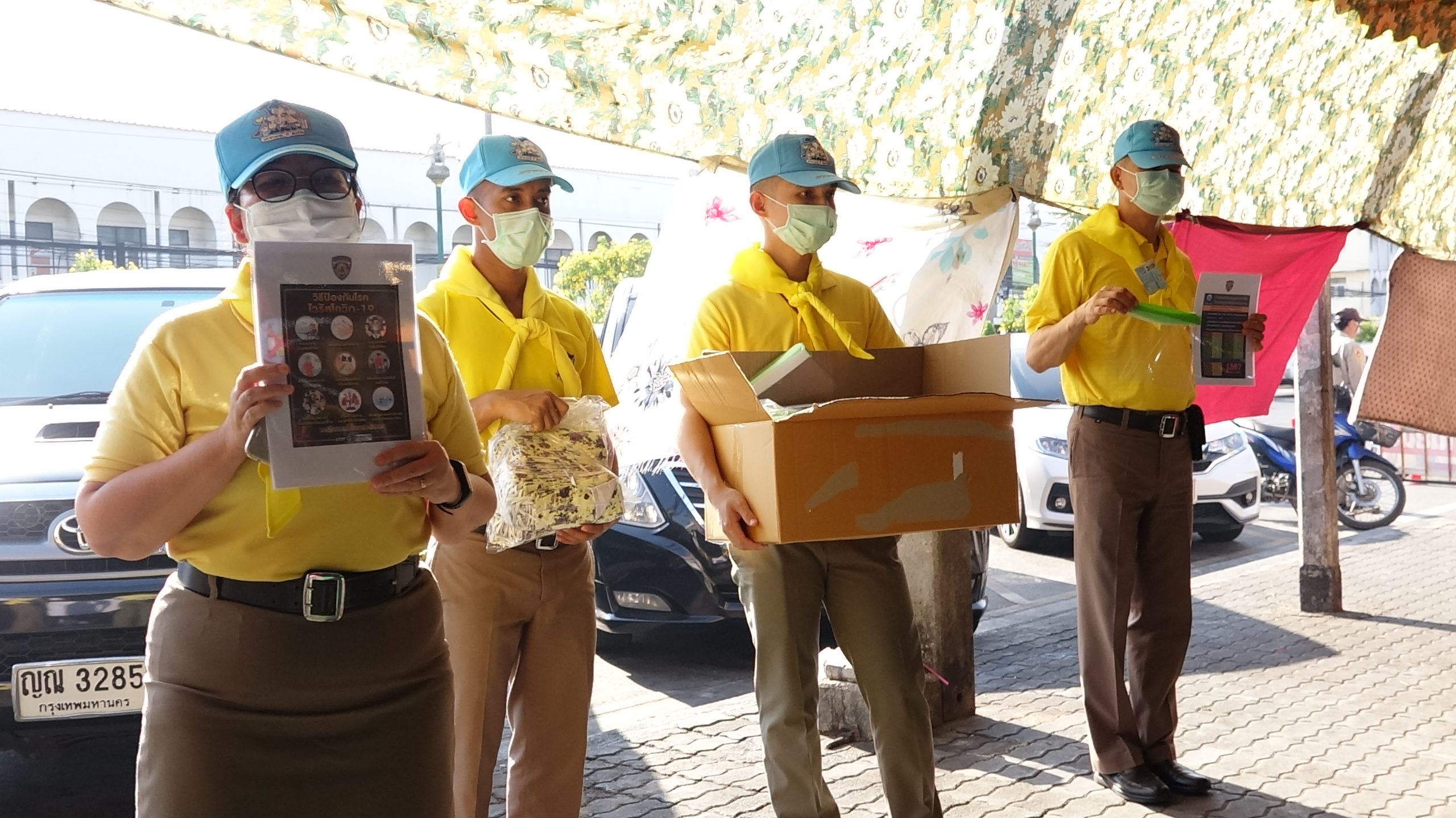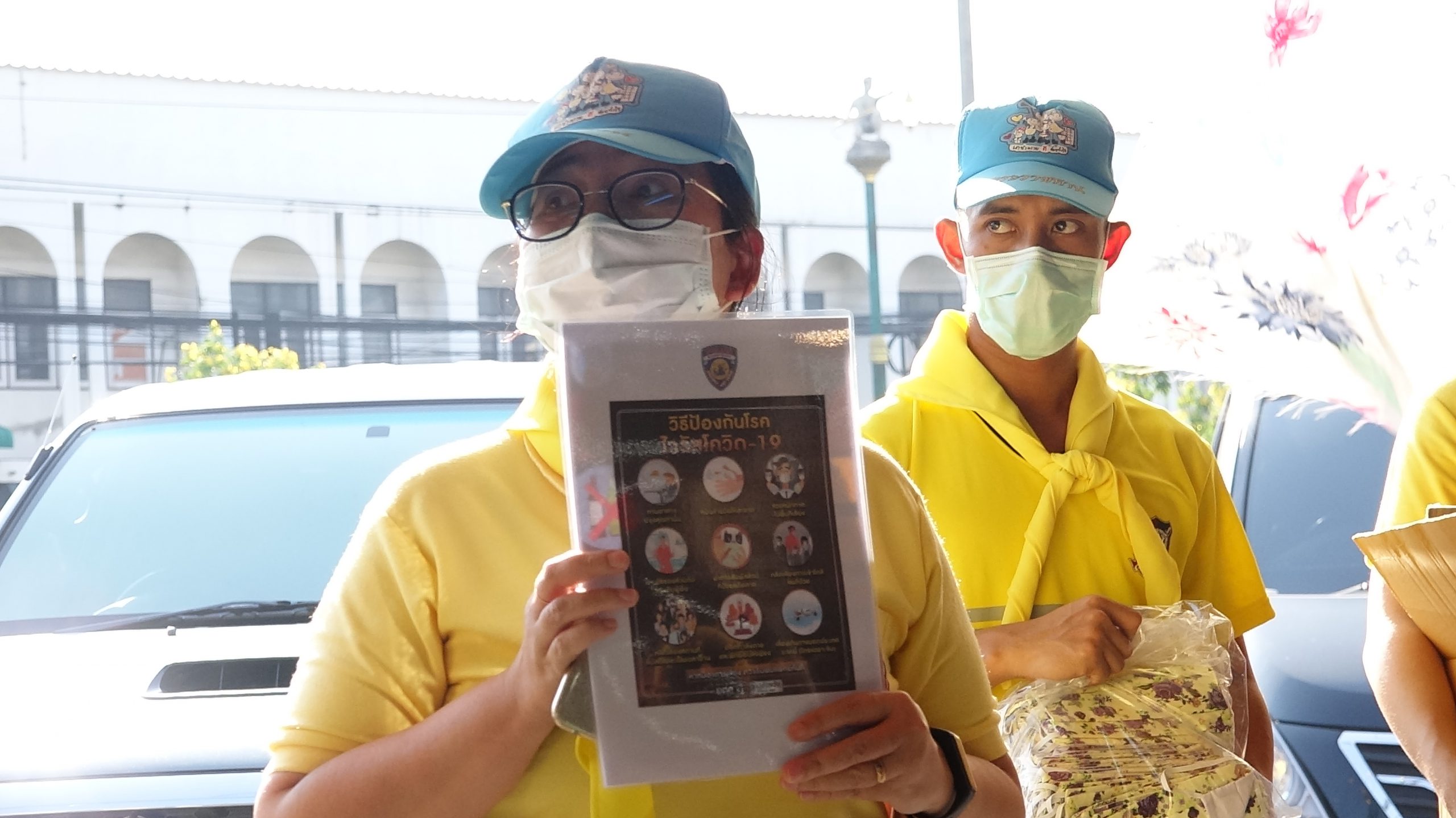 สภ.สามพรานร่วมกับรพ.สามพรานรณรงค์ให้ความรู้การล้างมือและกฎหมายพร้อมแจกface shieldแม่ค้าตลาดขุนแผน