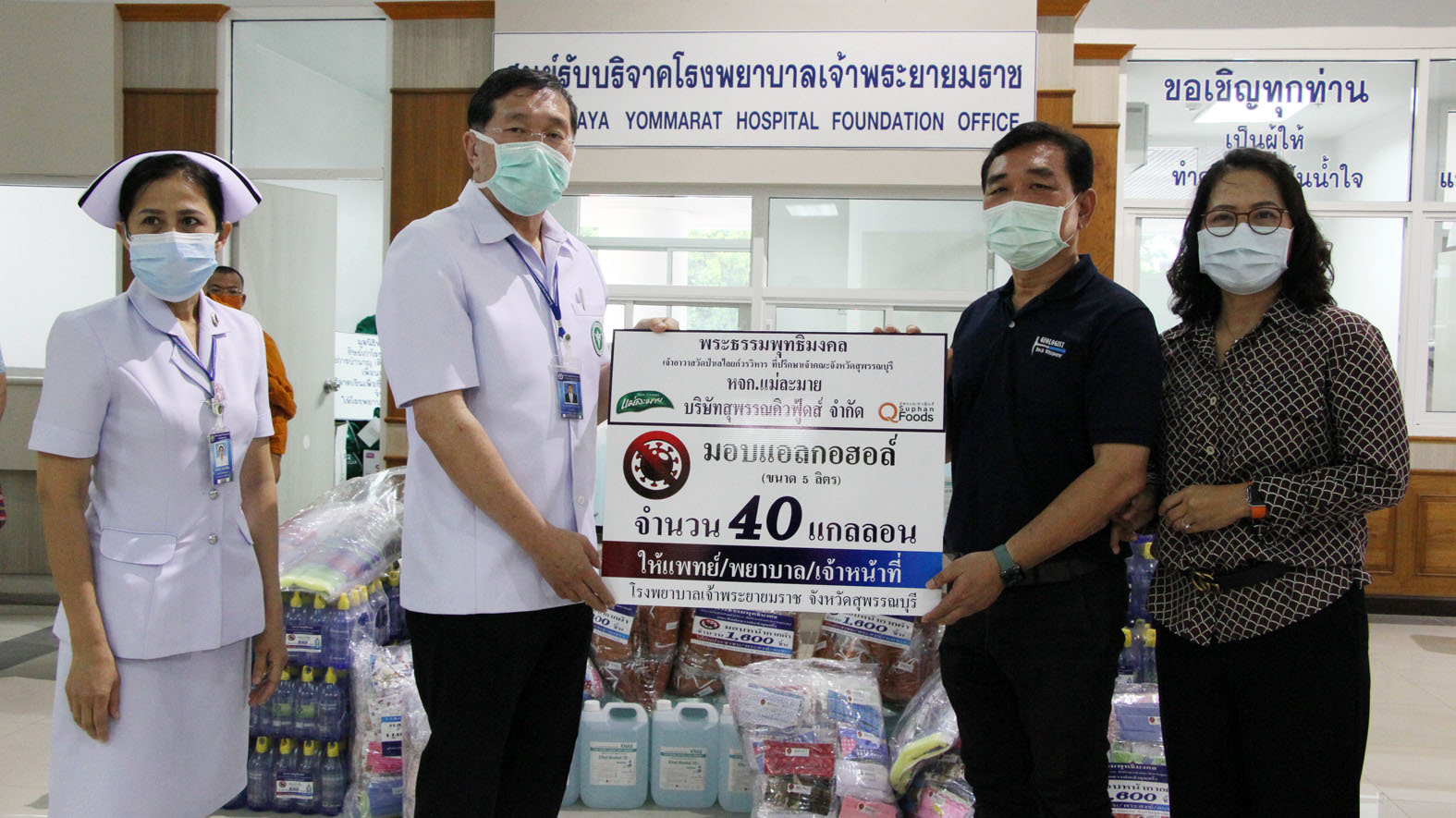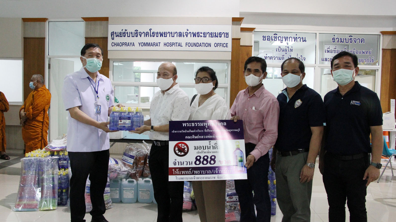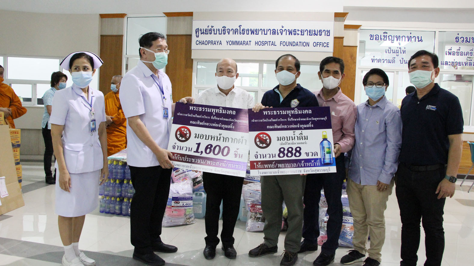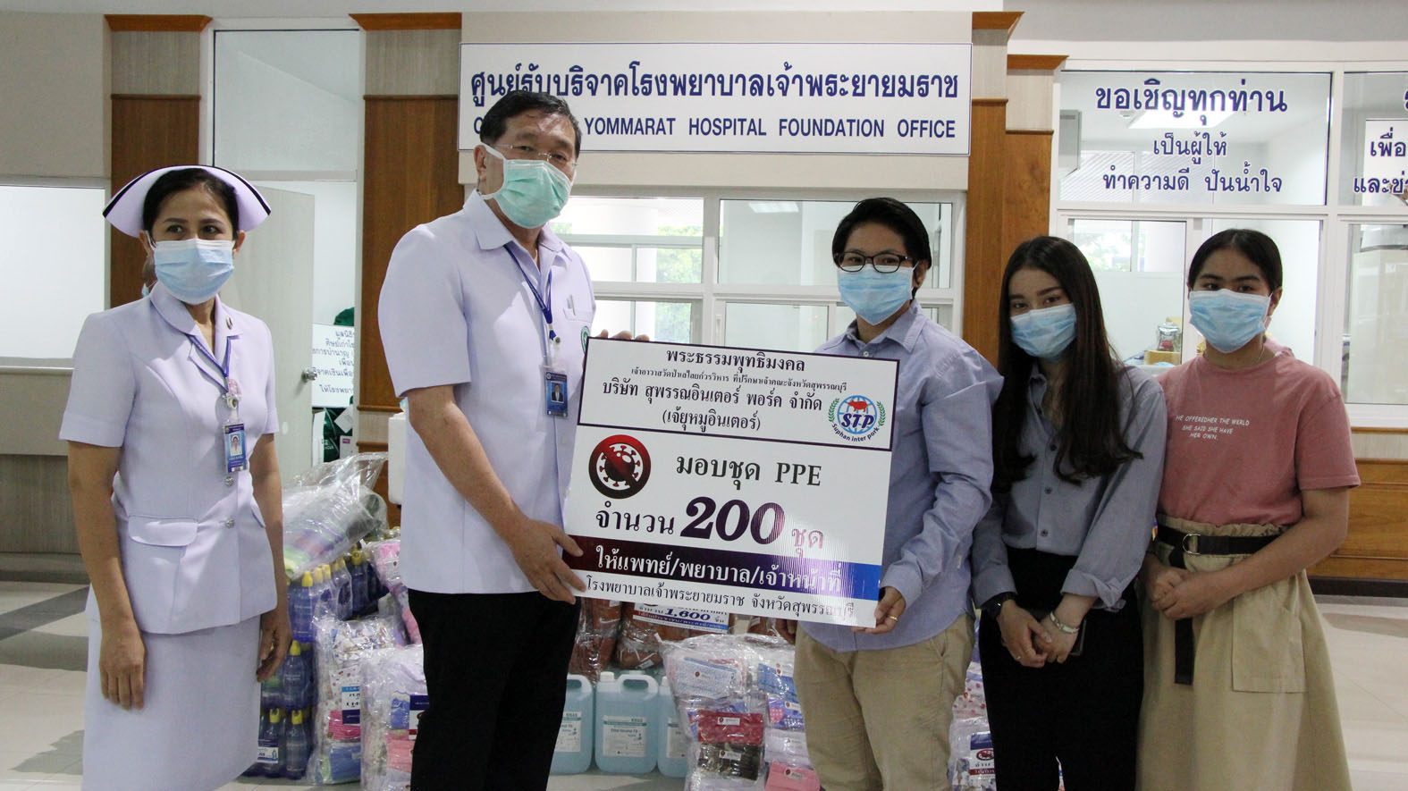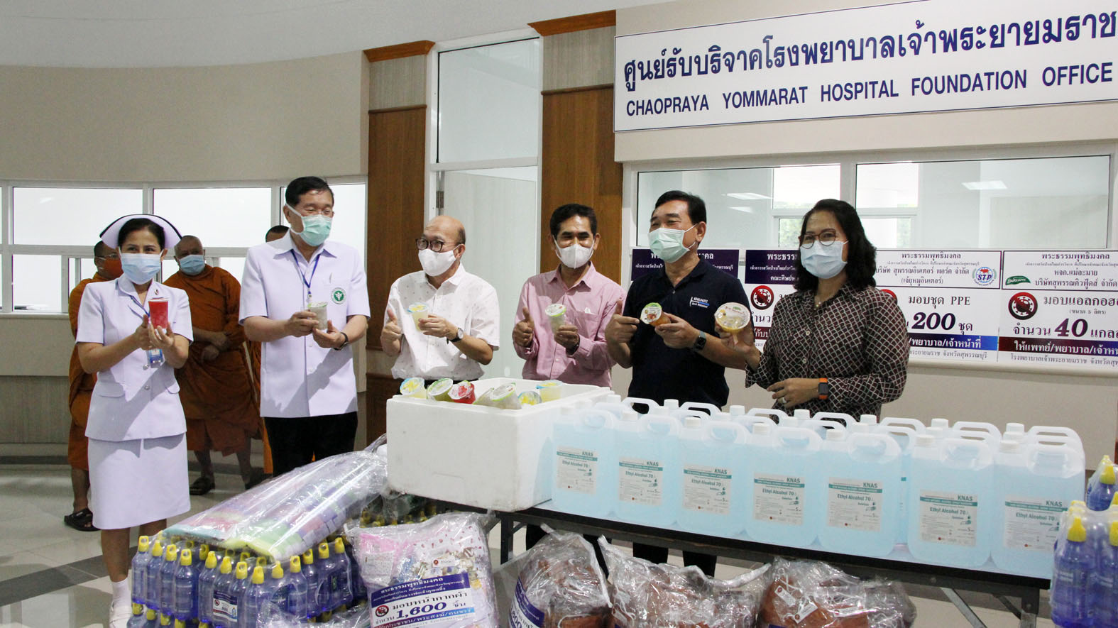 ประกอบด้วย ชุด PPE สำหรับสวมใส่คลุมทั้งร่างกาย เพื่อป้องกันเชื้อโรค จำนวน 200 ชุด หน้ากากอนามัยผ้า จำนวน 1,600 ชิ้น แอลกอฮอล์ล้างมือ จำนวน 40 แกล์ลอน น้ำดื่ม จำนวน 888 ขวด และ Face shield หน้ากากป้องกันละอองเชื้อโรค โดยมีนายแพทย์พงษ์นรินทร์ ชาติรังสรรค์ ผอ.โรงพยาบาลศูนย์เจ้าพระยายมราช พร้อมทีมแพทย์ พยาบาลร่วมกันรับมอบ ณ โรงพยาบาลศูนย์เจ้าพระยายมราช อ.เมือง จ.สุพรรณบุรี เพื่อให้คณะแพทย์ พยาบาล และบุคลากรทางการแพทย์ใช้ประกอบการตรวจคัดกรองและรักษาผู้ป่วยติดเชื้อโควิด-19 ให้กับพี่น้องประชาชนต่อไป