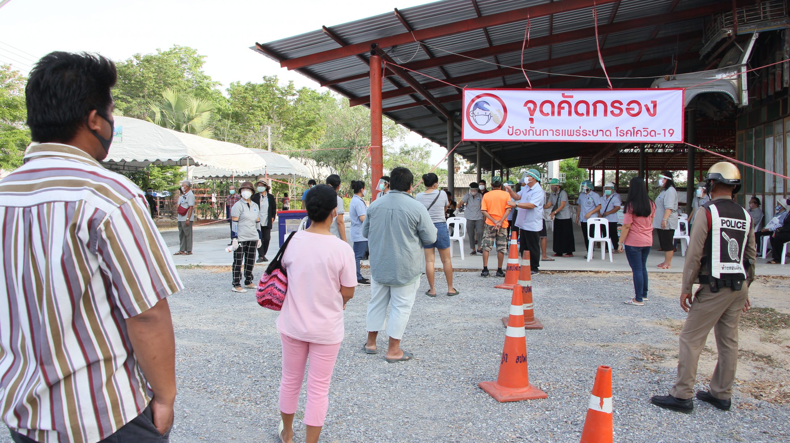ที่ จ.สุพรรณบุรี นายจีรศักดิ์ ชำนาญภักดี นายอำเภอสามชุก จ.สุพรรณบุรี นายสุเทพ ฉัตรทอง ประธานสภาเทศบาลตำบลสามชุก จ.สุพรรณบุรี นายสรุพล ผิวบาง รองนายกเทศมนตรีตำบลสามชุก น.ส.ขวัญธิดา ฉัตรทอง ผญบ.หมู่ 3 ต.สามชุก ร่วมกันนำสิ่งของประกอบด้วยข้าวสารบรรจุถุง 5 กิโลกรัม และปลากระป๋อง รวมกว่า 3,000 ชุด มาแจกให้กับพี่น้องประชาชน ต.สามชุก และมอบให้กับผู้ใหญ้าน ต.วังลึก นำไปแจกจ่ายให้พี่น้องประชาชนถึงบ้านเพื่อป้องกันไม่ให้เกิดการรวมตัวของประชาชนไม่โดยแพทย์หญิง พัชราภรณ์ วิริยเวชกุล ผู้อำนวยการ โรงพยาบาลสามชุก นำทีม อสม.มาช่วยบริการคัดกรองตรวจวัดอุณหภูมิ (วัดไข้) ให้ประชาชนล้างมือด้วยเจลแอลกอฮอล์ก่อนเข้ารับสิ่งของ โดยมี พ.อ.กุญช์ภัสร์ หาญสมบูรณ์ รอง เสธ. มทบ.ที่ 17 พ.ต.ท.ภูริภัทร ภิรมย์ภู่ รอง ผกก.ป.สภ.สามชุก นำกำลังทหาร ตำรวจ มาช่วยจัดระเบียบให้พี่น้องประชาชนเข้าแถวยืนระยะห่าง เพื่อป้องกันการแพร่ระบาดเชื้อไวรัสโควิด19