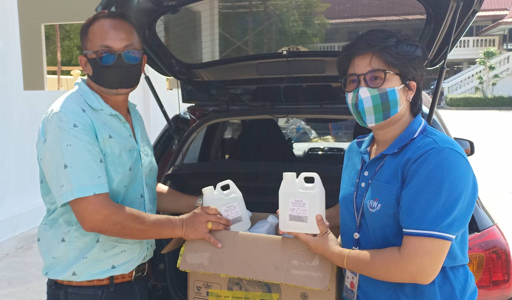 นอกจากนั้นยังได้รับการสนับสนุน จากโรงงานไฟฟ้าราชบุรีเวอลด์โคเจเนอรชั่น จำกัด ว่าที่ร้อยตรีหญิงอัญจนา แดโดย สนับสนุนงบประมาณในการร่วมบริจาคข้าวสารแก่นายก กำนันตำบลบ้านฆ้องจำนวน 40,000 บาท และเจล แอลกอฮอล์ให้กับหมู่ที่ 7 ตำบลบ้านฆ้องจำนวน 20 ลิตรเพื่อเป็นการบรรเทาในความเดือดร้อนของประชาชนที่ได้รับผกระทบกับ เหตุการณ์วิกฤตครั้งนี