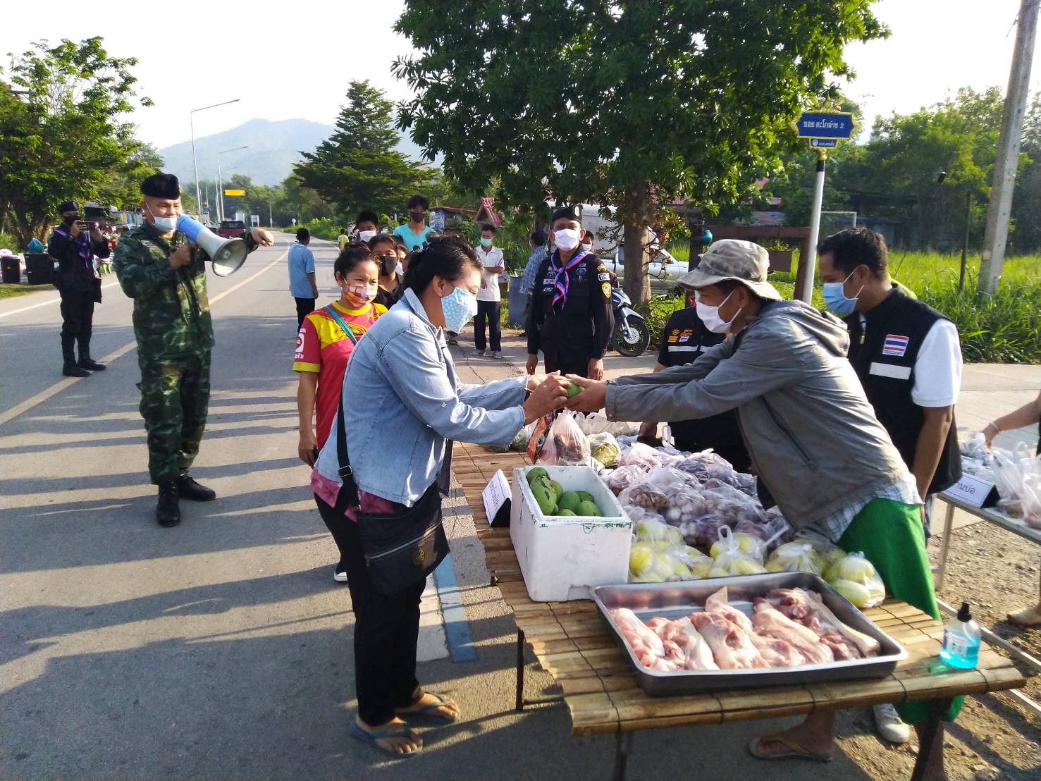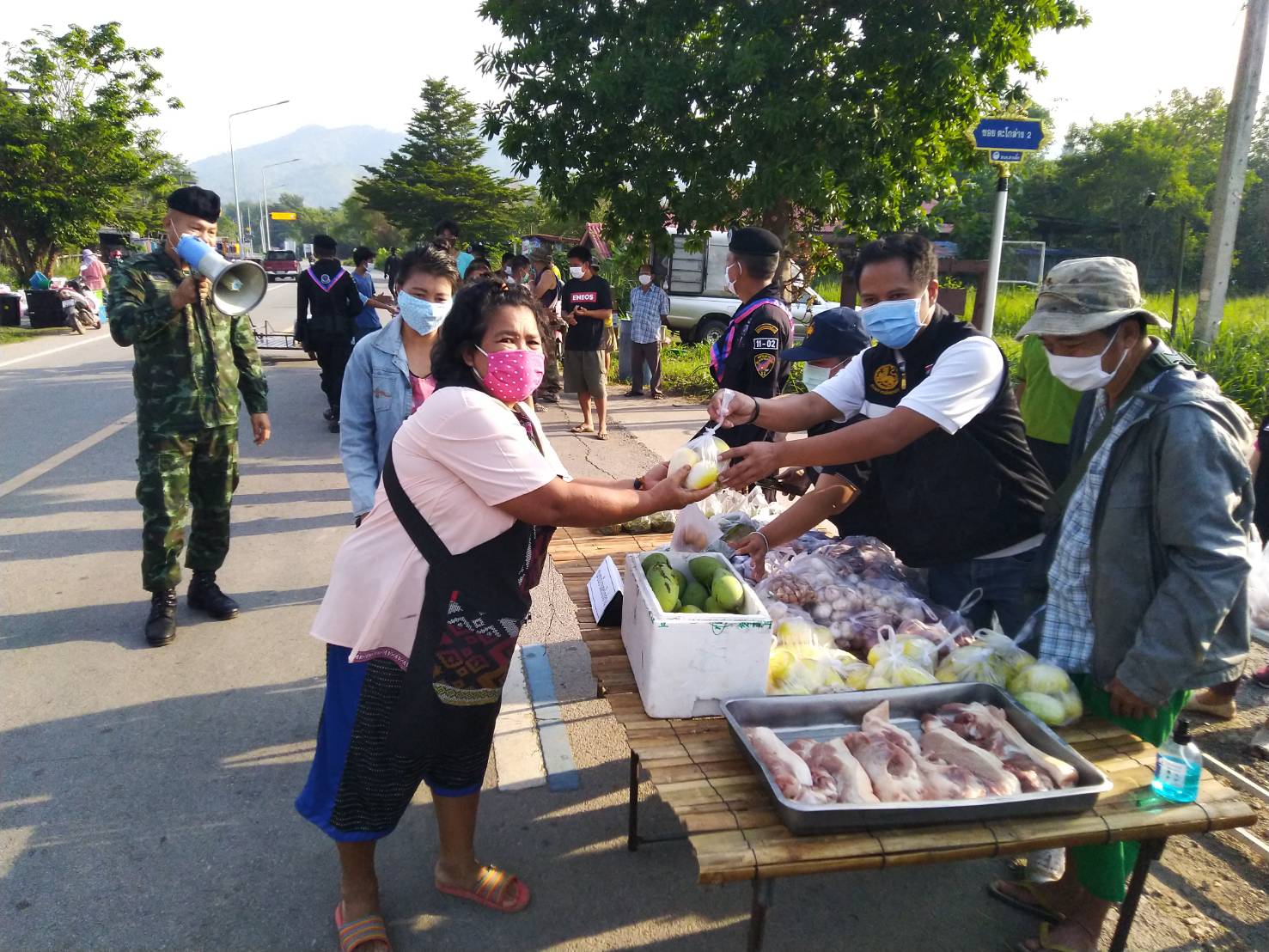 กาญจนบุรี กกล.สุรสีห์ ร่วมส่วนราชการและผู้นำชุมชน จัดกิจกรรมแลกเปลี่ยนสินค้าและพืชผลการเกษตรเพื่อลดการความยากลำบากในการดำรงชีพของประชาชน จากสถานการณ์แพร่ระบาดไวรัสโควิด – 19