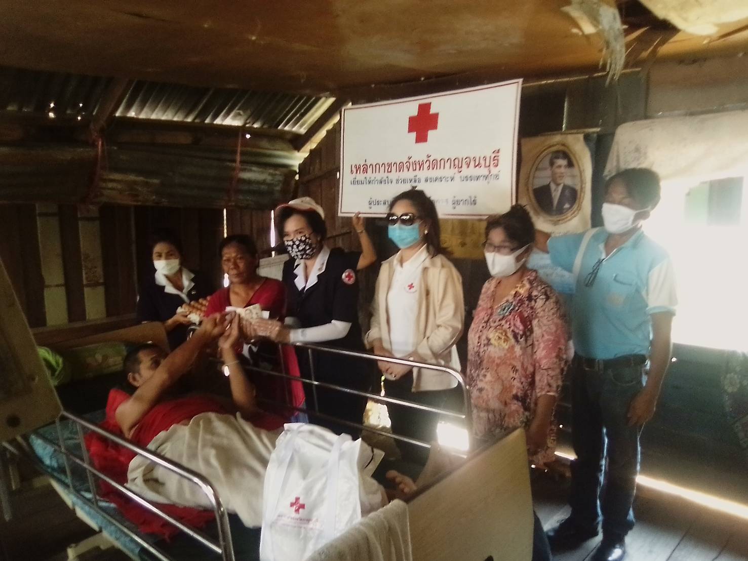 กาญจนบุรี นายกเหล่ากาชาด นำทีมจิตอาสามอบถุงยังชีพช่วยเหลือผู้ป่วยติดเตียงในพื้นที่ตามโครงการ กาชาดพบปะเยี่ยมเยียนผู้ป่วยติดเตียง ผู้สูงอายุ และผู้พิการอำเภอไทรโยค