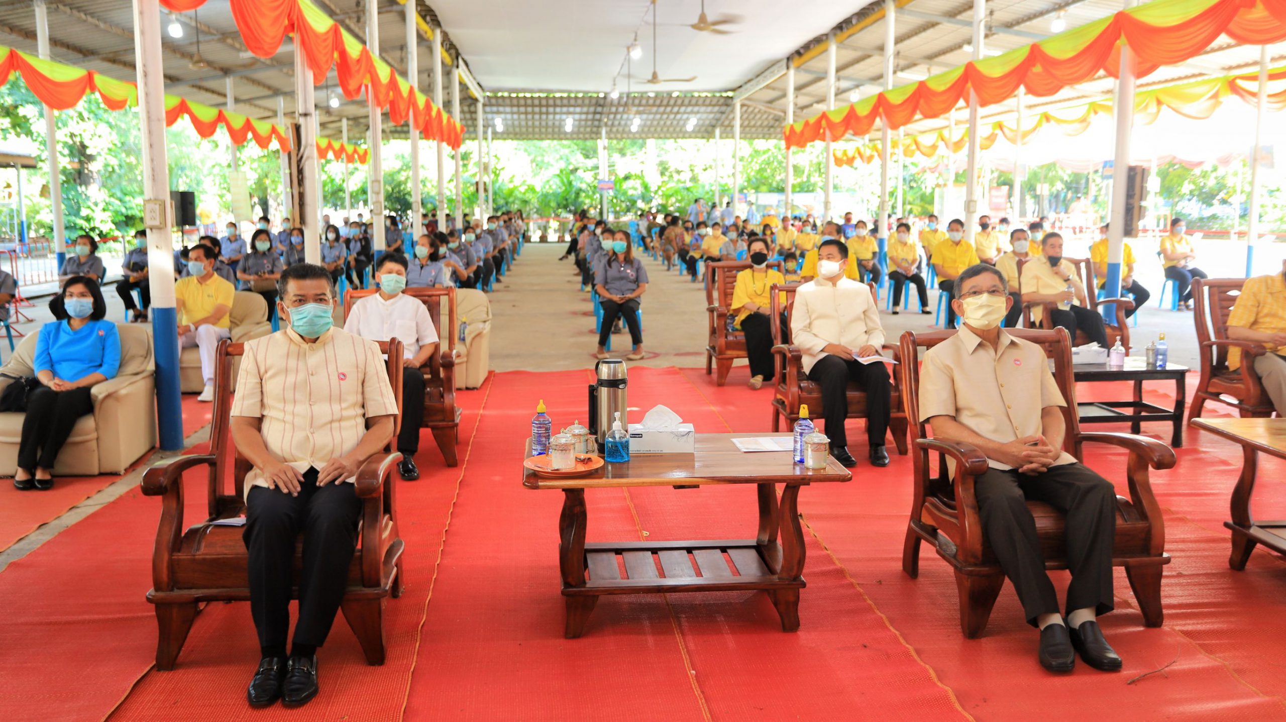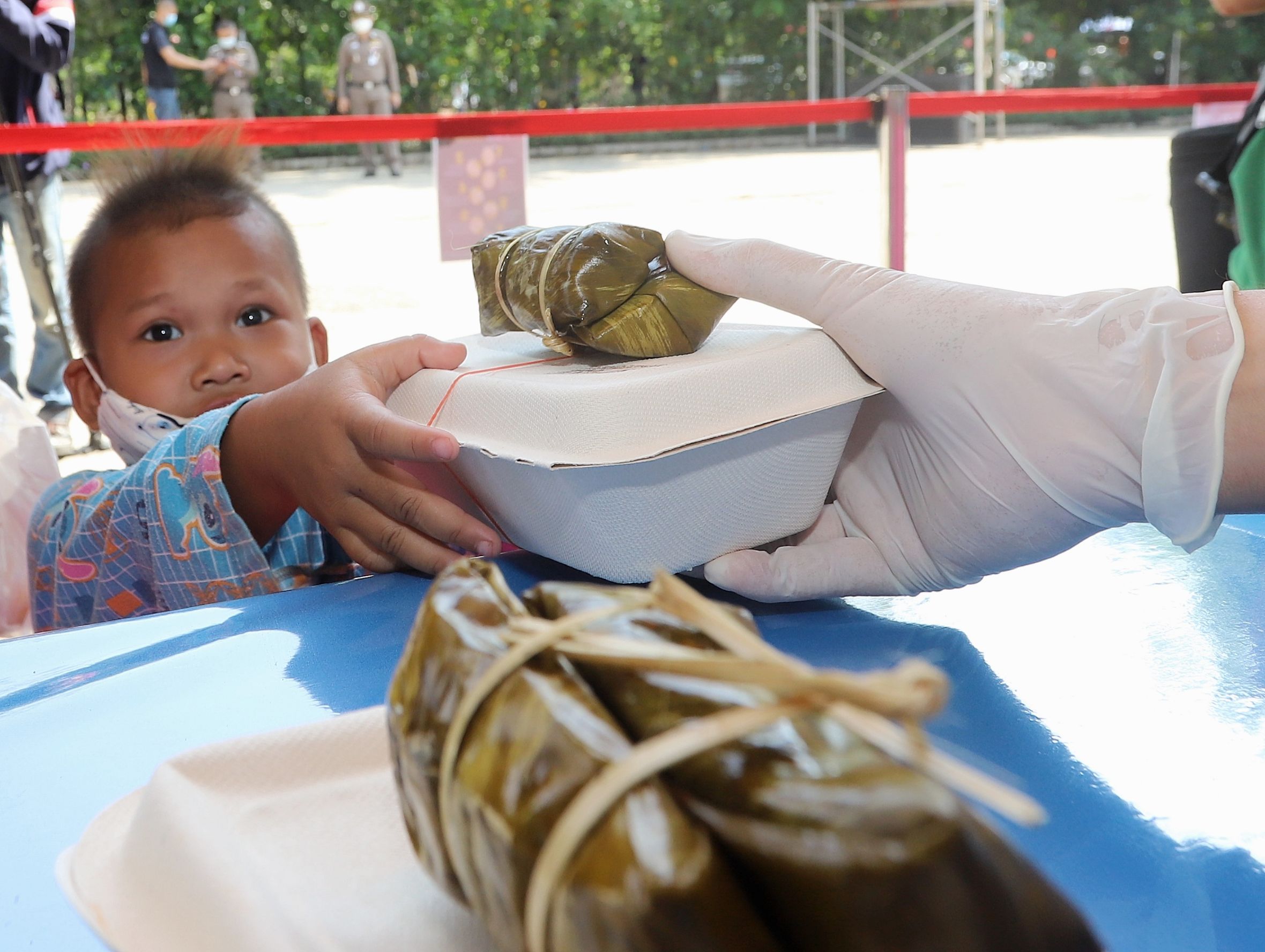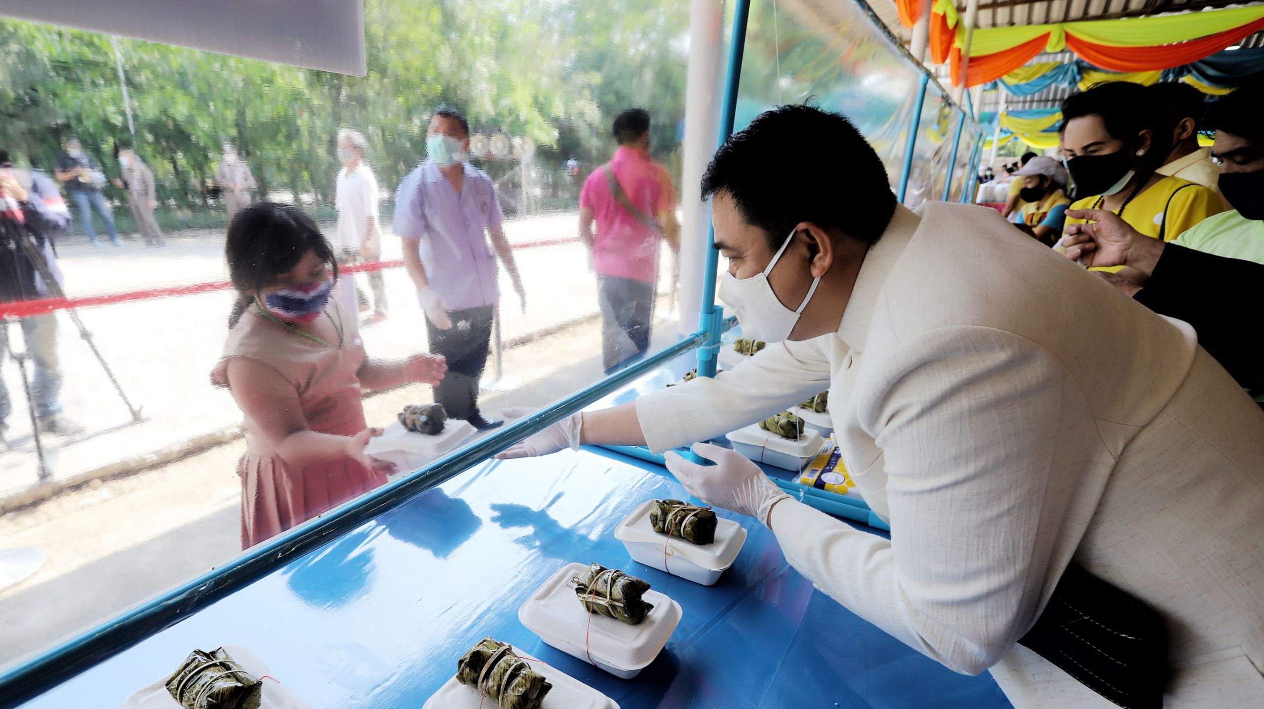 ทั้งนี้ผู้ที่มารับข้าวกล่องจะต้องผ่านจุดคัดกรองบริเวณด้านหน้า มีการตรวจวัดอุณหภูมิ ล้างมือด้วยเจลแอลกอฮอล์ และต่อแถวเว้นระยะห่างอย่างน้อย 1 เมตร โดยทางวัดจะทำฉากพลาสติกกั้นไว้ระหว่างผู้รับกับผู้มอบอาหาร เมื่อรับข้าวกล่องแล้วจะต้องกลับบ้านทันทีการจัดตั้งโรงทานและการแจกจ่าย ให้เป็นไปตามหลักสุขอนามัย โดยไม่มีการจัดพิธีการ พิธีกรรม กิจกรรม หรือการบริหารจัดการใดๆ ที่มีบุคคลจำนวนมากมารวมตัวกัน รวมทั้งให้ปฏิบัติตามคำสั่ง มาตรการ และคำแนะนำของทางราชการอย่างเคร่งครัด