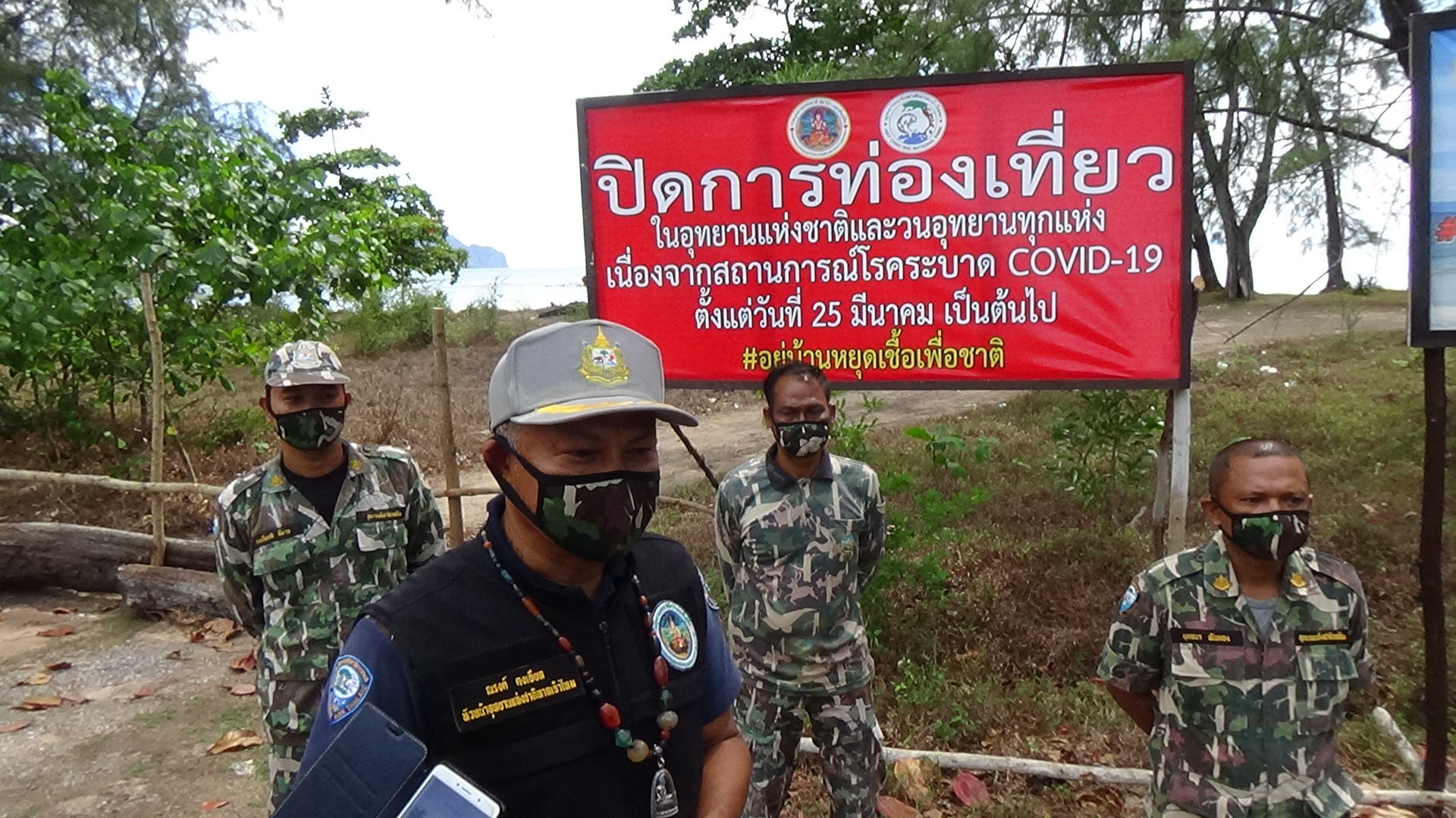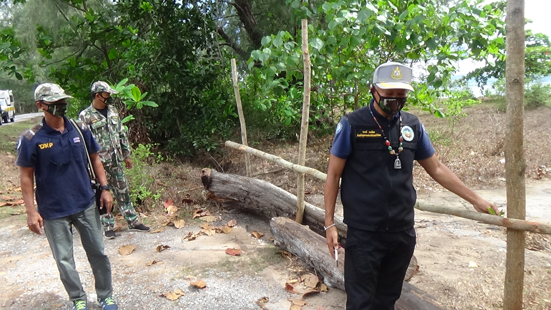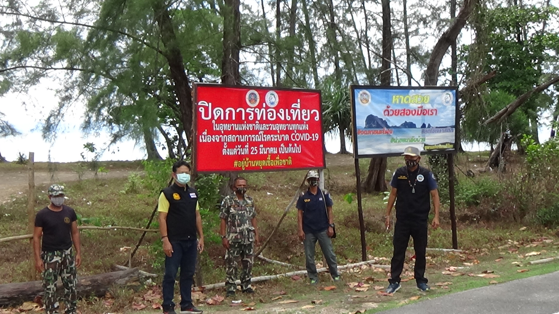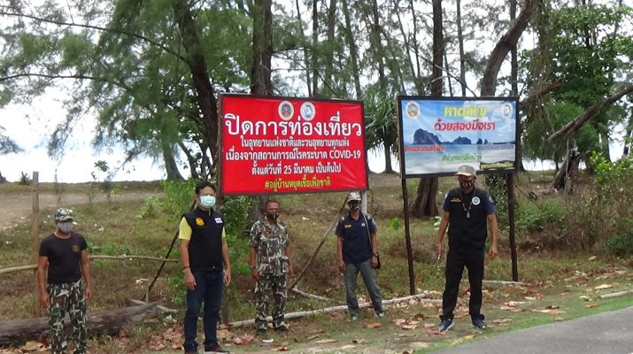 โดยการประชาสัมพันธ์และขึ้นป้ายประกาศห้ามท่องเที่ยว จากนั้นเจ้าหน้าที่อุทยานฯได้นำขอนไม้เก่า และกิ่งไม้ มาวางกั้นดักเส้นทางที่นักท่องเที่ยวจะขับรถลงไปบริเวณชายหาด เนื่องจากมีอยู่หลายจุด ระยะทางประมาณ 10 กิโลเมตร และเจ้าหน้าที่อุทยานฯพบต้นกระถินเทพา ที่กำลังจะล้มจึงได้ตัดกิ่งมาทำรั้วกั้น ซึ่งกระถินเทพานั้นไม่ได้เป็นต้นไม้พื้นถิ้นของจังหวัดตรัง แต่มีขึ้นอยู่จำนวนมาก ยากต่อการตัด ทางเจ้าหน้าที่อุทยานฯจึงตัดเฉพาะต้นที่ใกล้จะล้ม เพื่อป้องกันอันตรายที่จะเกิดขึ้น หากต้นไม้ล้ม จะส่งผลกระทบต่อประชาชนพื้นที่ได้ อาจทำให้เกิดอุบัติเหตุและได้รับบาดเจ็บจากต้นไม้ล้มได้ ส่วนขอนไม้ก็เป็นขอนไม้ที่ต้นไม้ล้มแล้วไม่มีการตัดเพิ่มใหม่แต่อย่างใด จึงยืนยันว่าไม่ได้มีการตัดต้นไม้แต่ออย่างใดและปฏิบัติตามคำสั่งของรัฐบาลและกรมอุทยานแห่งชาติสัตว์ป่าและพันธุ์พืชอย่างเคร่งครัด และเตือนนักท่องเที่ยวว่าจังหวัดตรัง ยังคงปิดแหล่งท่องเที่ยวจนกว่าจะมีคำสั่งเปลี่ยนแปลง