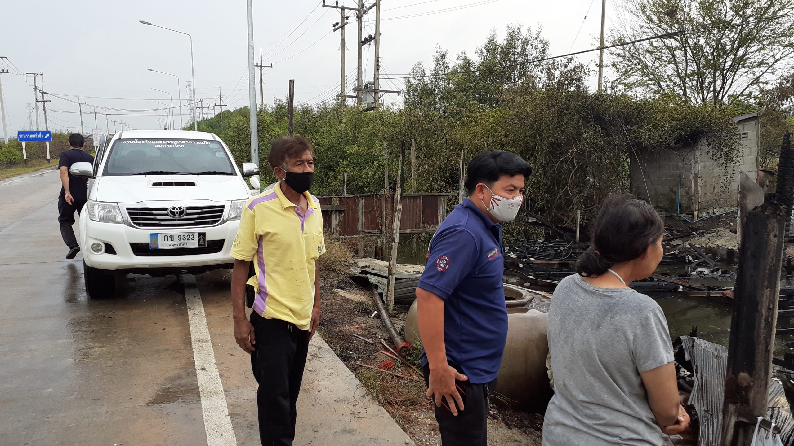 เมื่อเวลาประมาณ21.30น.ของวันที่ 26 เมษายน 2563 พ.ต.ต.สุชาติ สมบูรณ์ สารวัตรเวรสภ.บางโทรัด รับแจ้งเหตุเพลิงไหม้ที่บ้านเลขที่ 39/4 ม.6 ต.นาโคก อ.เมือง จ.สมุทรสาคร จึงรายงานให้ผู้บังคับบัญชาทราบพร้อมประสานรถน้ำดับเพลิงจากอบต.นาโคกและอบต.กาหลง และรุดไปตรวจสอบที่เกิดเหตุพร้อมด้วยนายวุฒิพงษ์ สุภัควนิช นายอำเภอเมืองสมุทรสาคร ที่เกิดเหตุเป็นเป็นบ้านไม้เก่าเจ้าหน้าที่ต้องระดมฉีดน้ำประมาณ30นาทีเพลิงจึงสงบ จากการสอบถามเบื้องต้นทราบว่าบ้านดังกล่าวมีผู้อาศัยซึ่งเป็นผู้พิการทางสมองอาศัยอยู่ แต่ระหว่างเกิดเหตุยังไม่มีใครพบเห็นตัวผู้อาศัย โดยคาดว่า อาจจะออกมาช่วงไฟไหม้ โดยสาเหตุเบื้องต้นคาดว่าไฟฟ้าลัดวงจร ค่าเสียหายประมาณ 2 แสนบาท โดยจะประสานเจ้าหน้าที่จากกองวิทยาการมาตรวจสอบสาเหตุที่แท้จริงต่อไป ต่อมาเมื่อเวลาประมาณ09.00น.ของวันที่ 27 เมษายน 2563 ร.อ. ทรัพย์ตพล เอี่ยมเจริญ รองปลัดองค์การส่วนตำบลนาโคก และเจ้าหน้าที่ป้องกันและบรรเทาสาธารณภัย อบต.นาโคกได้เดินทางมาดูความเสียหายของบ้านที่เกิดเหตุเพลิงไหม้เพื่อดูแลและให้กำลังใจนางอ้อย นิลเลี่ยม อายุ 60 ปี เจ้าของบ้านและนาง ลินดา นาคทอง อายุ 52 ปี อยู่บ้านเลขที่ 39/ 3 หมู่ที่ 6 ตำบลนาโคก อำเภอเมือง จังหวัดสมุทรสาครซึ่งมีบ้านปลูกติดกันกันกับบ้านที่เกิดเหตุเพลิงไหม้และเป็นน้องสาวของบ้านหลังดังกล่าว และจากการสอบสอบถามนางลินดา ทราบว่า ก่อนเกิดเหตุตนและสามีได้นั่งอยู่ในบ้านของตนแล้วจู่ๆก็ได้ยินเสียงเหมือนมีคนเดินหยียบสังกระสีตนจึงได้เปิดหน้าต่างดูจึงพบว่ามีไฟไหม้มาจากบริเวณหลังบ้านและลุกลามอย่างเร็ว
