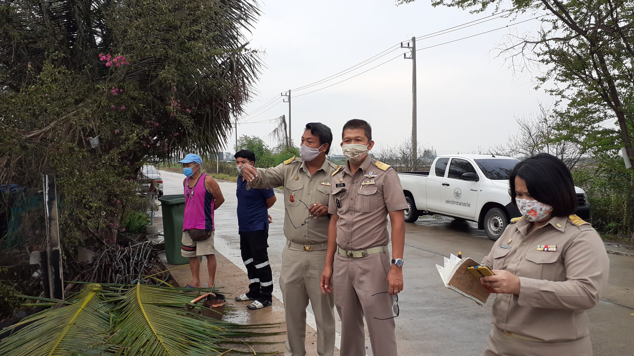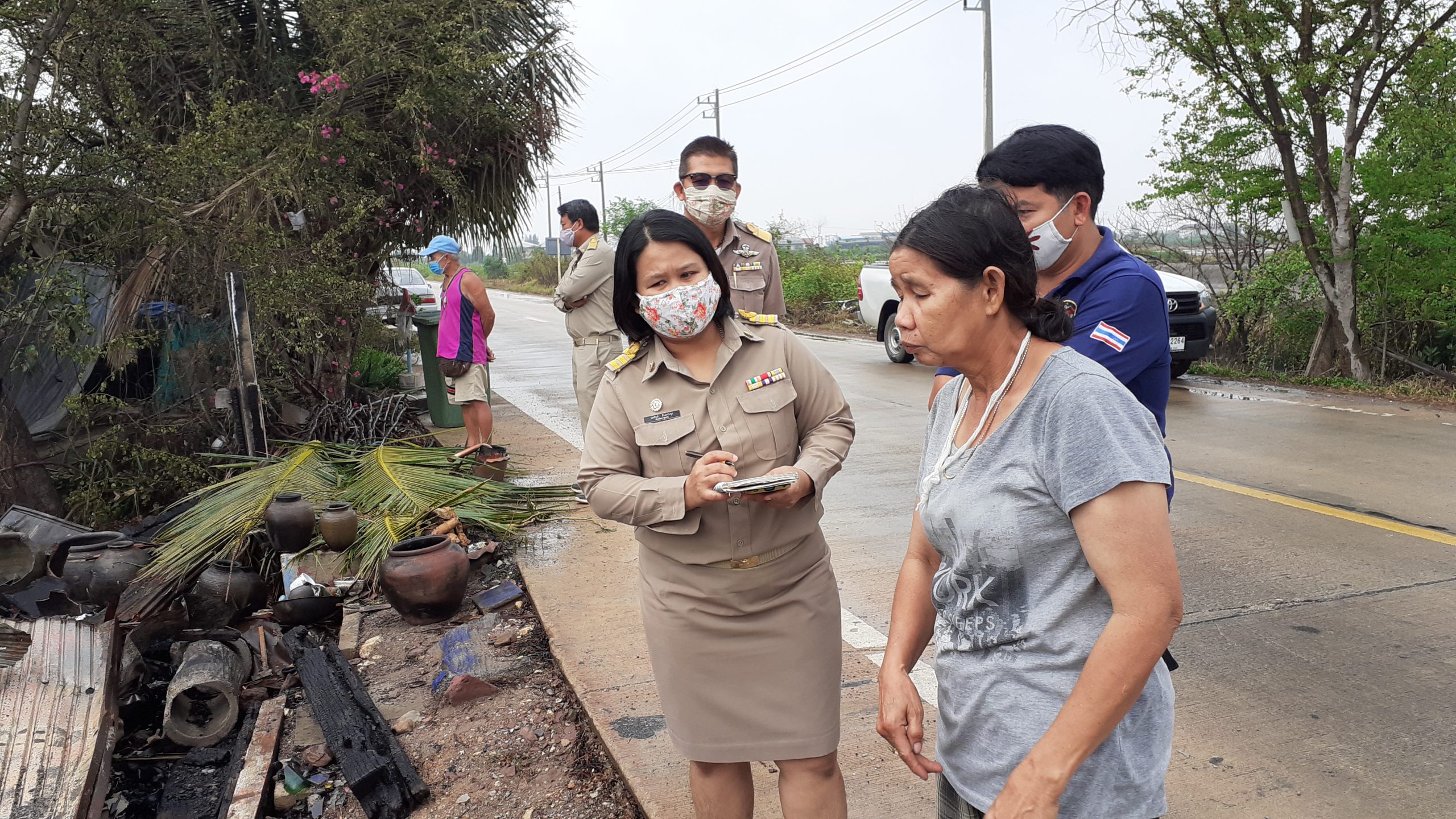 ส่วนทาง ร.อ. ทรัพย์ตพล เอี่ยมเจริญ รองปลัดองค์การส่วนตำบลนาโคกได้เข้ามาสำรวจถึงความเสียเพื่อจะได้มีการช่วยเหลือเยียวยาต่อเหตุการที่เกิดขึ้นและจะได้ประสานไปยังสำนักพัฒนาสังคม ให้เข้ามาดูแลเพื่อเป็นขวัญและกำลังใจให้กับเจ้าของบ้านอีกต่อไป