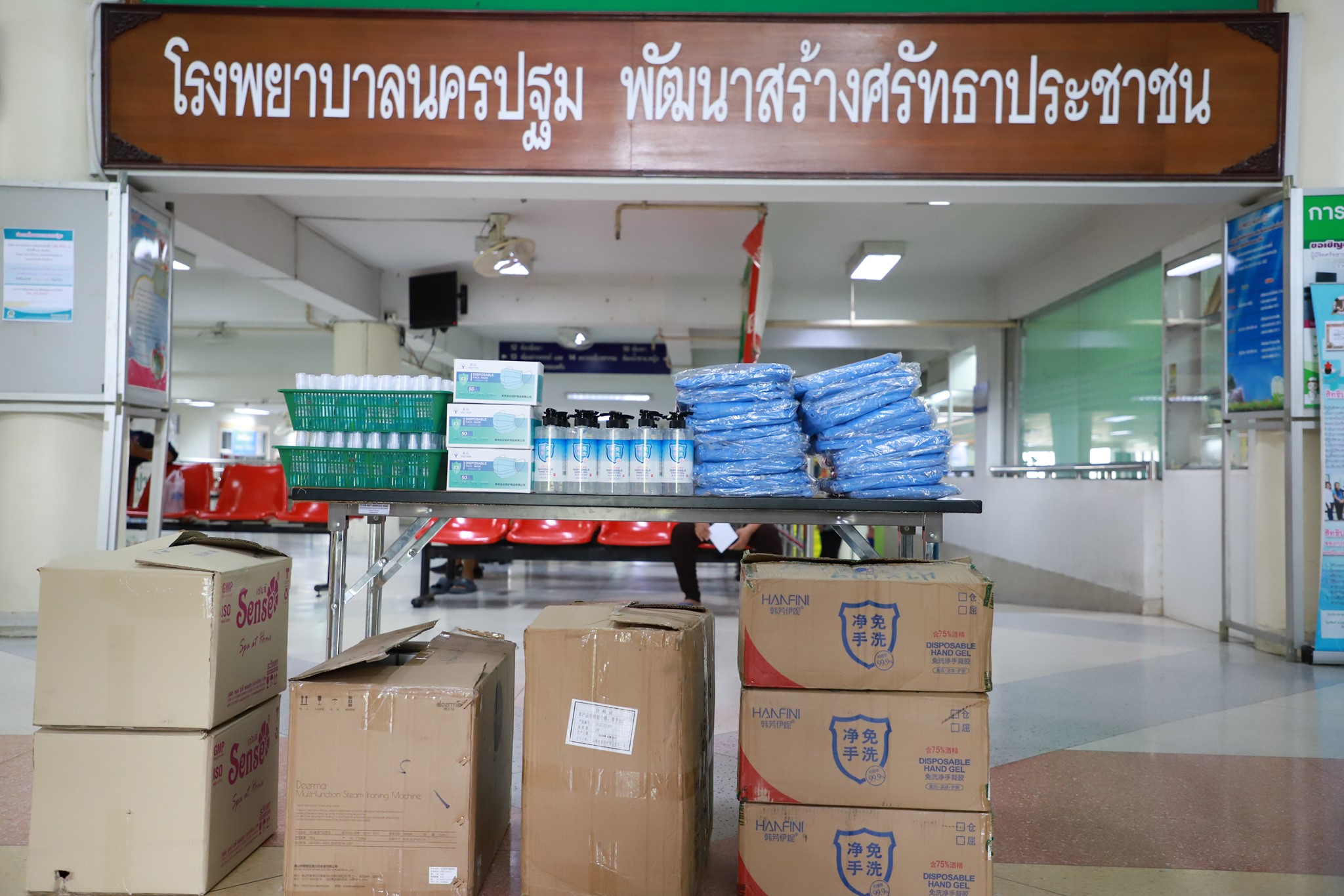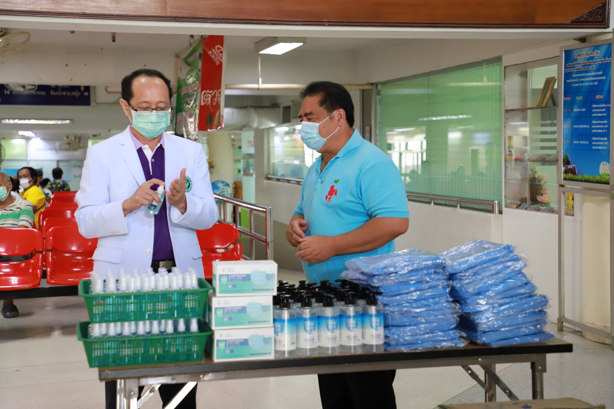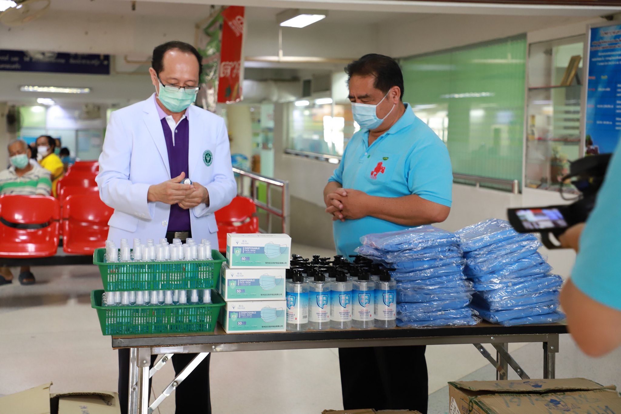 กองบุญเมืองไร่ขิงและเพื่อน โดยนายจำรัส ตั้งตระกูลธรรม นายกเทศมนตรีเมืองไร่ขิง อ.สามพราน จ.นครปฐม มอบชุดป้องกันเชื้อโรค จำนวน 70 ชุด หน้ากากอนามัย MASK ป้องกันเชื้อโรค จำนวน 50 กล่อง และเจลแอลกอฮอล์ล้างมือจำนวน 100 ขวด ให้โรงพยาบาลนครปฐม รับมอบโดย นายแพทย์วัลลภ อดุลยเกษม รองผู้อำนวยการฝ่ายบริการ โรงพยาบาลนครปฐม