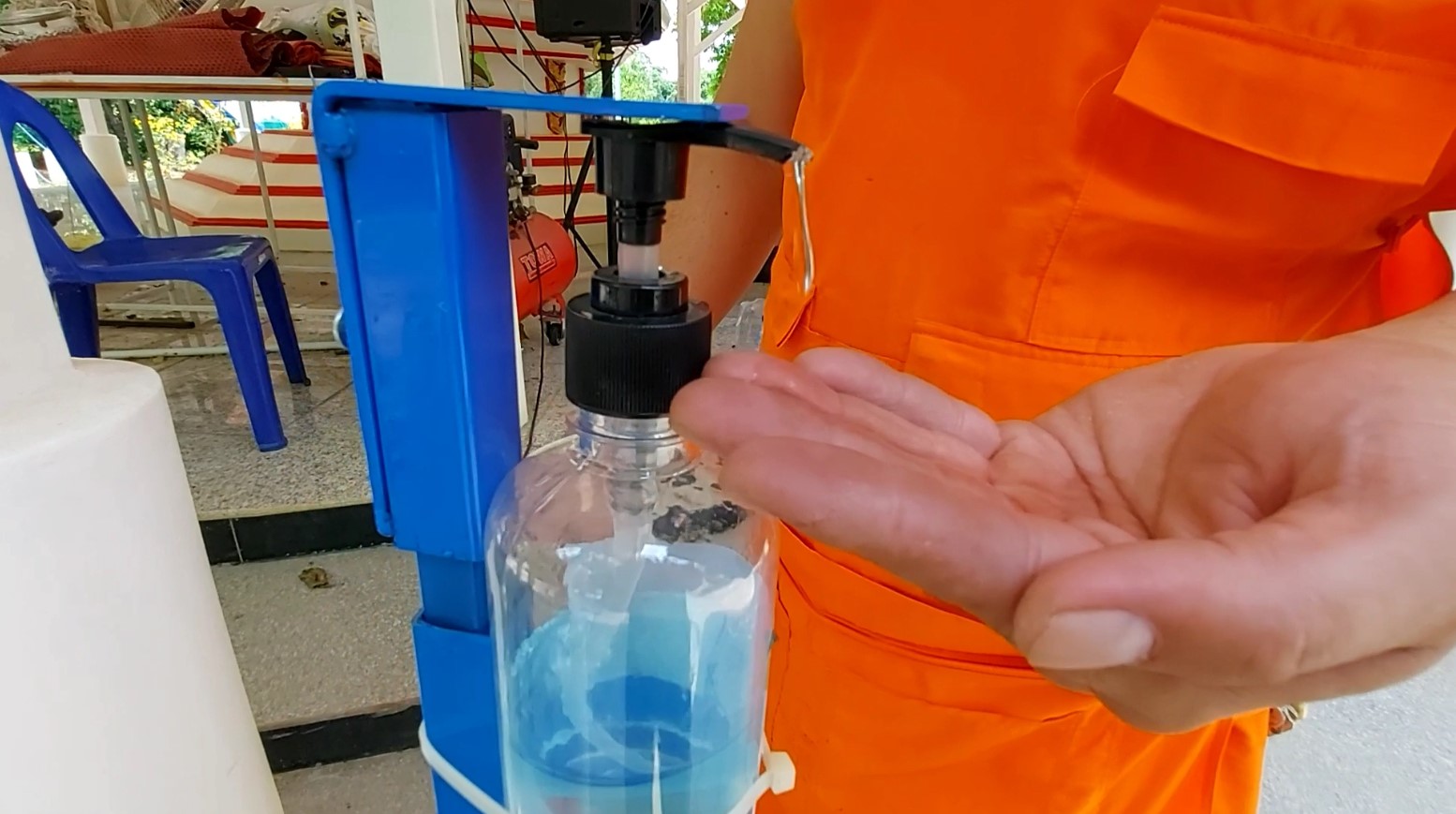 ที่ จ.สระบุรี พระสงฆ์วัดสมุหประดิษฐาราม อำเภอเสาไห้ จังหวัดสระบุรี ประดิษฐ์เครื่องกดเจล/แอลกอฮอล์แบบเท้าเหยียบ และนำไปบริจาคให้โรงพยาบาลและถวายวัด โดยผู้สื่อข่าวได้เดินทางไปพบกับพระศราวุธ ฐิตโสภโณ และพระลูกวัดสมุหประดิษฐาราม กำลังช่วยกันนำเศษเหล็กที่เหลือจากการก่อสร้างภายในวัดมาตัดเป็นท่อนขนาด ความยาว 1. 20 เซนติเมตร เพื่อทำเป็นขา ก่อนจะนำมาเชื่อมกับแผ่นเหล็กหนาที่ทำเป็นฐานตั้ง จากนั้นนำแผ่นเหล็กขนาด 2 × 6 นิ้ว เชื่อมต่อกับลูกปืนล้อเลื่อนที่สำหรับทำประตูบ้าน และนำไปเชื่อมต่อบนแผ่นเหล็กที่ทำเป็นฐานอีกครั้งหนึ่ง เพื่อทำเป็นแป้นสำหรับเท้าเหยียบกดขวดเจล/แอลกอฮอล์โดยเครื่องกดเจล/แอลกอฮอล์แบบเท้าเหยียบนี้ ยังมีเหล็กชนิดเดียวกับขาตั้งแต่มีขนาดใหญ่กว่าเล็กน้อยเพื่อให้สวมทับลงไปเป็นที่ยึดขึ้นลง โดยส่วนบนของขามีเหล็กยื่นออกมา 2-3นิ้ว เป็นที่กดด้านบนของที่ปั๊มของขวด ส่วนฐานที่วางขวดเจล/แอลกอฮอล์นั้น จะมีระยะห่างจากเหล็กที่ปั๊มขวดมากเท่าไหร่นั้น อยู่ที่ขนาดของขวดแต่ละชนิด ซึ่งการทำแต่ละอันจึงมีขนาดไม่เท่ากัน. เมื่อนำทุกส่วนมาเชื่อมต่อประกอบกันและขั้นตอนสุดท้ายก็คือการนำสีมาพ่นให้เกิดความสวยงาม ทิ้งไว้ประมาณ 1 ชั่วโมงและพ่นทับอีกครั้ง จากนั้นนำขวดเจล/แอลกอฮอล์มาทดลองวางโดยมีสายเคเบิ้ลไทร์เป็นที่รัดยึดไว้ ก่อนจะทดลองใช้เท้าเหยียบซึ่งก็ได้ผลดีเยี่ยมน้ำเจลและแอลกอฮอล์พุ่งออกมาตามแรงกด เป็นความสะดวกสบายและเป็นวิธีไม่ให้มือไปสัมผัสถูกที่กดขวดอาจจะติดเชื้อโรค ที่มีผู้มาใช้ก่อนหน้านี้ นอกจากนี้ยังมีความแข็งแรง