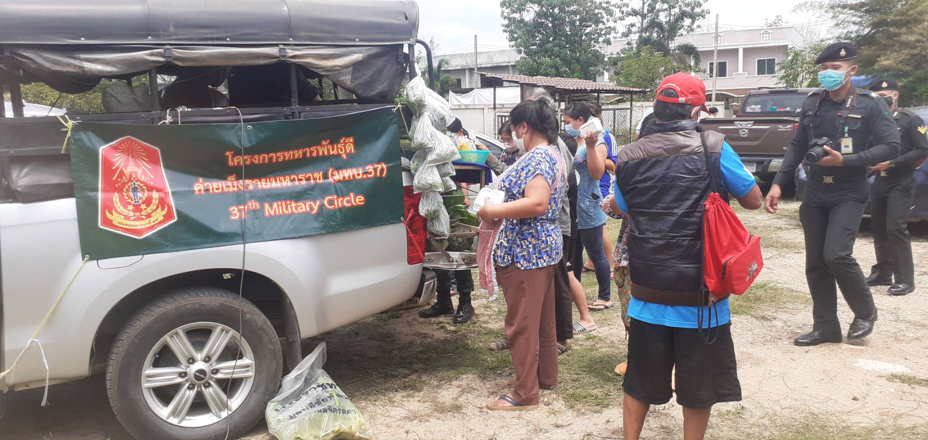 มทบ.37 แจกอาหารประชาชน พร้อมจำหน่วยผักปลอดสาร ชุมชนรอบค่าย
