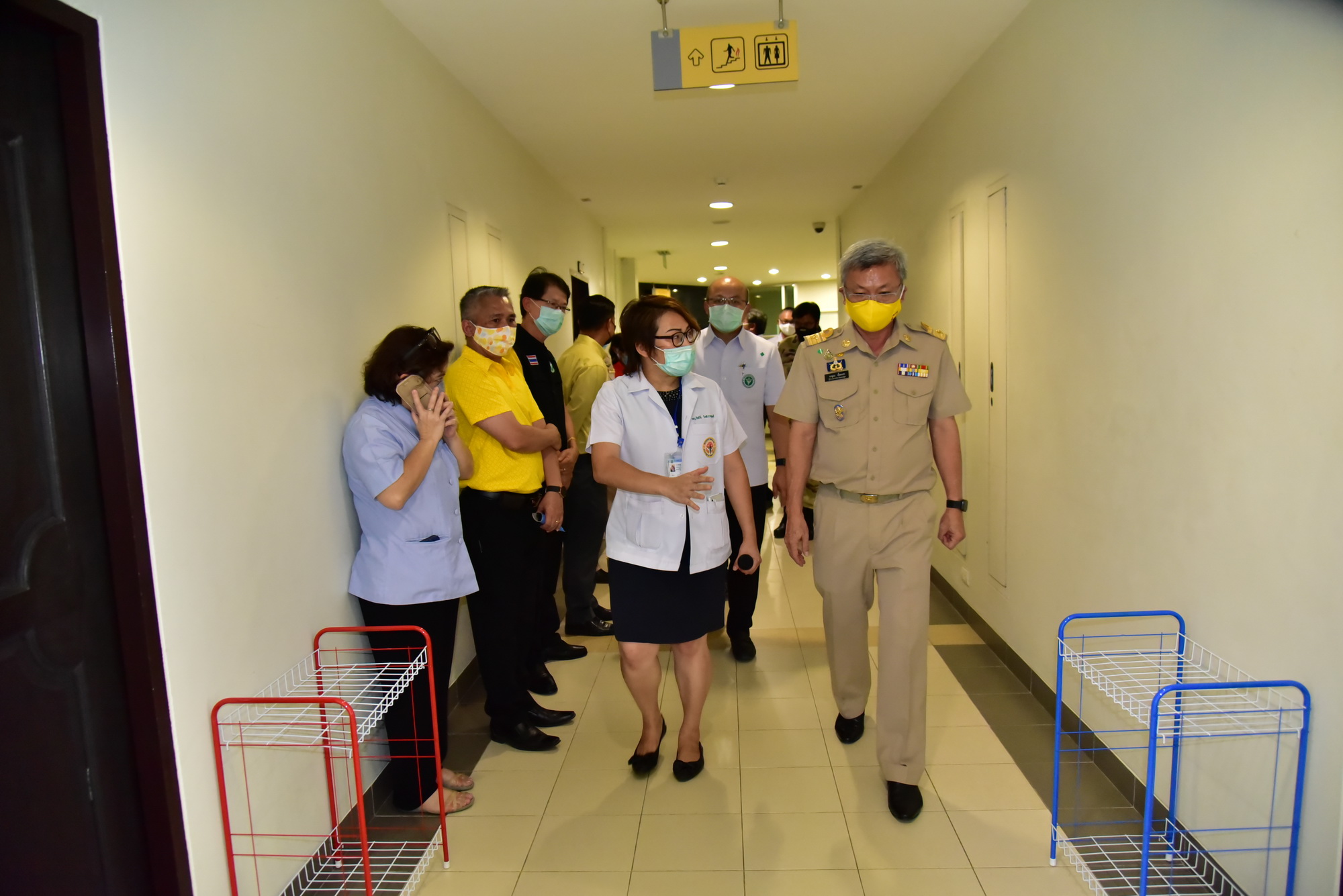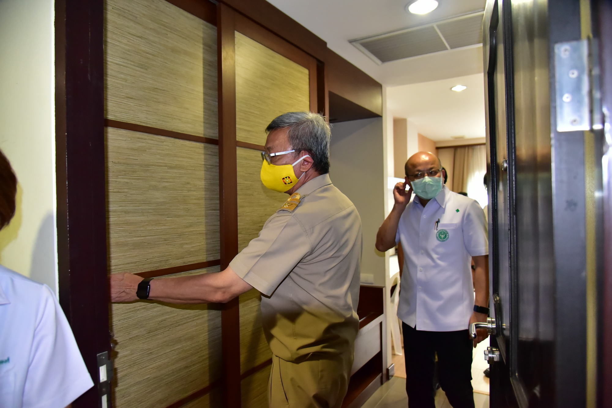 นายชาญนะ เอี่ยมแสง ผู้ว่าราชการจังหวัดนครปฐม พร้อมด้วย รองผู้ว่าราชการจังหวัด หัวหน้าส่วนราชการ และเจ้าหน้าที่จากหน่วยงานที่เกี่ยวข้อง ลงพื้นที่ตรวจการเตรียมความพร้อมของสถานที่กักกันสำหรับผู้ที่เฝ้าระวังสังเกตอาการจากเชื้อไวรัส COVID-19 หรือ Local Quarantine แห่งที่ 2 ของจังหวัด ณ แสนปาล์ม เทรนนิ่งโฮม อำเภอกำแพงแสน โดยความร่วมมือของมหาวิทยาลัยเกษตรศาสตร์ วิทยาเขตกำแพงแสน ในการใช้สถานที่อาคารพัก พุม ขำเกลี้ยง ซึ่งมีห้องพัก 48 ห้อง สามารถรองรับผู้ที่เฝ้าระวังสังเกตอาการจากเชื้อไวรัส COVID-19 ได้จำนวน 96 คน พร้อมจำกัดบริเวณเป็นสัดส่วน แบ่งเป็นโซนสีเขียว สำหรับเจ้าหน้าที่ปฏิบัติงานทั่วไป โซนสีเหลือง สำหรับเจ้าหน้าที่ปฏิบัติงานภายใน และโซนสีแดง สำหรับผู้ที่เฝ้าระวังสังเกตอาการเท่านั้น นอกจากนี้ยังมีห้องประชุมเพื่อเป็นห้องปฏิบัติงานสำหรับบุคลากรทางการแพทย์ อีกด้วย โดยในวันนี้มีการเตรียมความพร้อมขั้นตอนปฏิบัติงาน การสั่งการ กำกับภารกิจ การสั่งการด้านการแพทย์ การตรวจวัดร่างกาย การรักษาความปลอดภัย และการจัดการอาหาร เพื่อรองรับผู้ที่เฝ้าระวังสังเกตอาการ ซึ่งในขณะนี้มีความพร้อม 100 เปอร์เซ็นต์