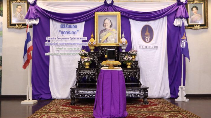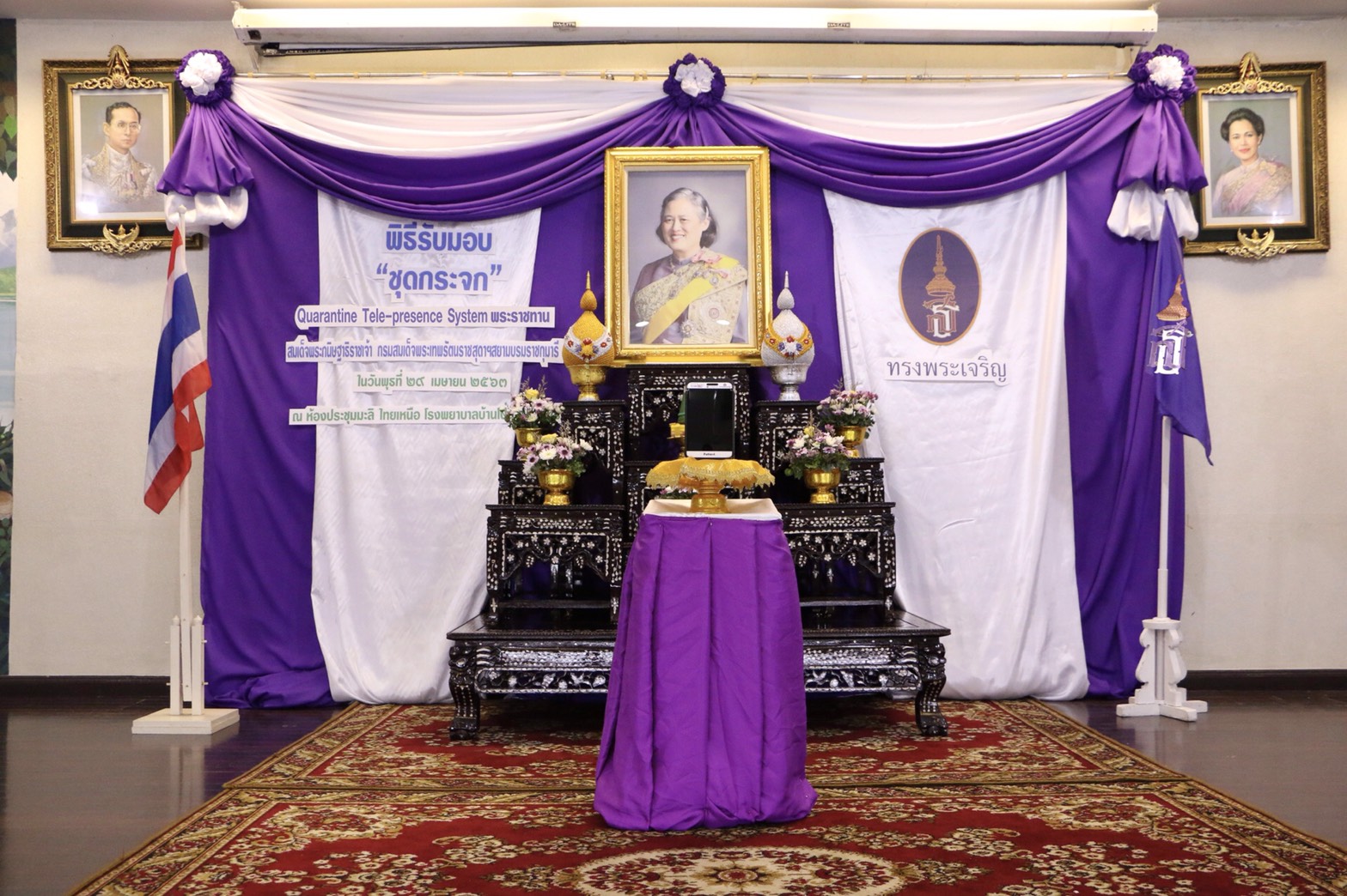 ในการนี้ สำนักงานมูลนิธิชัยพัฒนาได้ประสานกับจุฬาลงกรณ์มหาวิทยาลัย ผลิตหุ่นยนต์ปิ่นโตCU-RoboCovid_Pinto และ กระจก-ระบบสื่อสารทางไกล Telepresence Cu-RoboCovid_Telepresence ซึ่งเป็นนวัตกรรมช่วยลดความเสี่ยง ลดจำนวนอุปกรณ์การแพทย์ที่ใช้แล้วทิ้งจำนวนมหาศาล เพิ่มประสิทธิภาพการทำงานของเจ้าหน้าที่ รวมถึงลดการแพร่ระบาดของเชื้อในคนไข้และเจ้าหน้าที่ซึ่งมูลนิธิชัยพัฒนา ได้นำความกราบบังคมทูลสมเด็จพระกนิษฐาธิราชเจ้า กรมสมเด็จพระเทพรัตนราชสุดาฯ สยามบรมราชกุมารีว่า โรงพยาบาลบ้านโป่ง จังหวัดราชบุรี มีความต้องการหุ่นยนต์ปิ่นโต CU-RoboCovid_Pinto และกระจกระบบสื่อสารทางไกล Telepresence CU –RoboCovid_Telepresence และทรงพระกรุณาโปรดเกล้าฯ พระราชทานหุ่นยนต์ปิ่นโต CU-RoboCovid_Pnto และ กระจก-ระบบสื่อสารทางไกล Telepresence CU-RoboCovid_Telepresence ให้กับโรงพยาบาลฯ เพื่อนำไปใช้ประโยชน์ต่อไป ทั้งนี้ สำนักงานมูลนิธิชัยพัฒนาจะดำเนินการส่งมอบในส่วนของ กระจก-ระบบสื่อสารทางไกล Telepresence CU-RoboCovid_ Telepresence ให้กับโรงพยาบาลฯก่อน และจะจัดส่งหุ่นยนต์ปิ่นโตตามมาภายหลังต่อไป