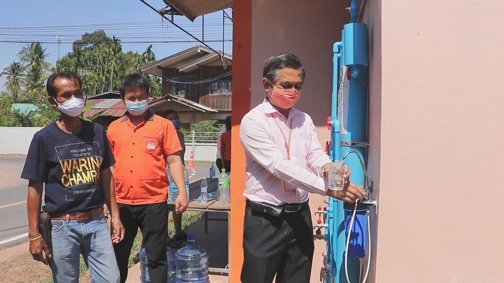 อุบลราชธานี ติดตั้งเครื่องกรองน้ำประปาดื่มได้ บรรเทาโควิด องค์การบริหารส่วนตำบลโนนผึ้ง ร่วมกับ กระทรวงการอุดมศึกษาวิทยาศาสตร์ วิจัยและนวัตกรรม และ คณะกรรมการประปาหมู่บ้าน ได้ติดตั้งเครื่องกรองน้ำประปาไว้ดื่มกิน ลดค่าใช้จ่ายให้ประชาชน สู้ภัยโควิด-19 ที่ บ้านตาติด ต.โนนผึ้ง อ.วารินชำราบ จ.อุบลราชธานี นายธนวัฒน์ ไพศาลเจริญโชติ นายกองค์การบริหารส่วนตำบลโนนผึ้ง พร้อมด้วย เจ้าหน้าที่กองช่าง คณะกรรมการประปาหมู่บ้าน และ ชาวบ้านในพื้นที่ ได้ร่วมกันทดสอบระบบการทำงานของเครื่องกรองน้ำ ในโครงการน้ำประปาดื่มได้ ซึ่งก่อนหน้านี้เจ้าหน้าที่ได้นำเครื่องกรองน้ำสะอาดมาติดตั้งและเซทระบบ นายธนวัฒน์ ไพศาลเจริญโชติ นายกองค์การบริหารส่วนตำบลโนนผึ้ง กล่าวว่า โครงการน้ำประปาดื่มได้ เป็นโครงการที่องค์การบริหารส่วนตำบลโนนผึ้ง ได้ร่วมกับ กระทรวงการอุดมศึกษาวิทยาศาสตร์วิจัยและนวัตกรรม และ คณะกรรมการประปาหมู่บ้าน ทำการติดตั้งเครื่องกรองน้ำประปาไว้ดื่มกินตามหมู่บ้าน ชุมชนต่างๆ และ ศูนย์พัฒนาเด็กเล็กในพื้นที่ เพื่อผลิตน้ำที่มีคุณภาพ ลดค่าใช้จ่ายให้ประชาชน และบรรเทาความเดือดร้อนในช่วง ที่โควิด-19 แพร่ระบาดในประเทษไทย ทำให้พี่น้องประชาชน บางส่วนต้องหยุดงานขาดรายได้