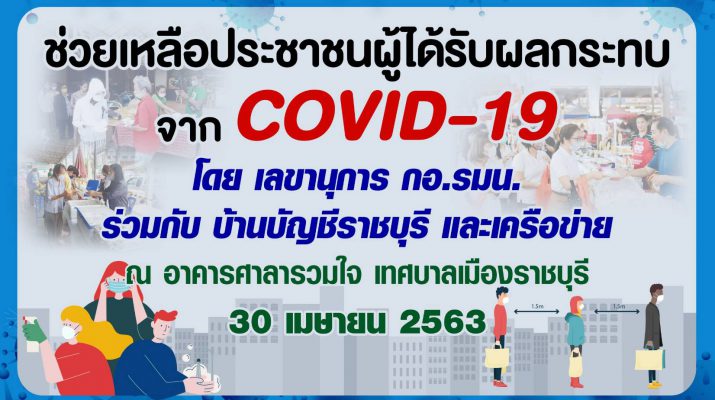 ที่อาคารรวมใจเทศบาลเมืองราชบุรี พล.ต.เอกธนา เสนานนท์ เลขานุการกองอำนวยการรักษาความั่นคงภายในประเทศเป็นประธานมอบสิ่งของอุปโภคและบริโภคแก่ประชาชนทีได้รับผลกระทบจากโควิด 19 โดยมีเครือข่าย บ้านบัญชีบุรี และหน่วยงานกอ.รมน.จ.ราชบุรีและทหารในพื้นที่ ร่วมกันมอบสิ่งของในครั้งนี้ มีประชาชนที่ได้รับผลกระทบจำนวนหลายร้อยคนเดินทางมารับสิ่งของโอกาสเดียวกันเลขานุการ กอ.รมน. กล้าวถึงการช่วยเหลือประชาชนในครั้งนี้สืบเนื่องมาจากรัฐบาลได้มีนโยบายให้ประชาชนมีส่วนร่วมในการลดผู้ป่วยติดเชื้อโควิด 19 จึงได้สั่งการให้ประชาชนทั่วประเทศหยุดอยู่กับบ้านเพื่อลดการแพร่เชื้อโควิด 19