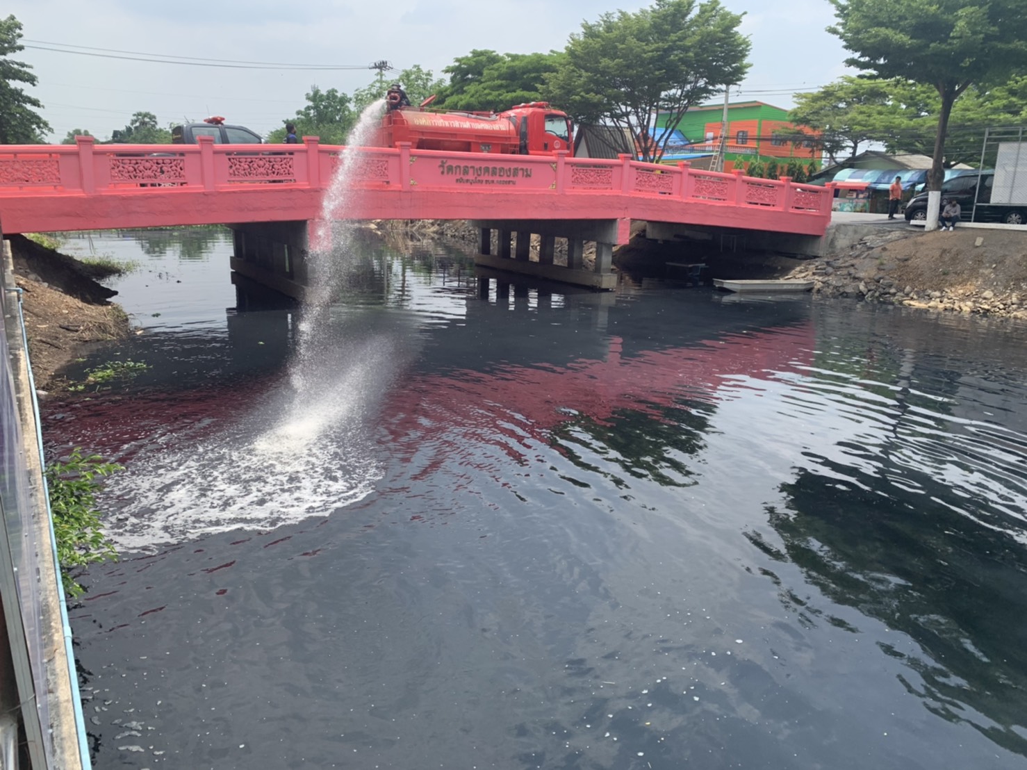 ปทุมธานี อบต.คลองสามเร่งฉีดพ่น EM หลังพบปลาลอยตายเกลื่อนคลองชลประทาน