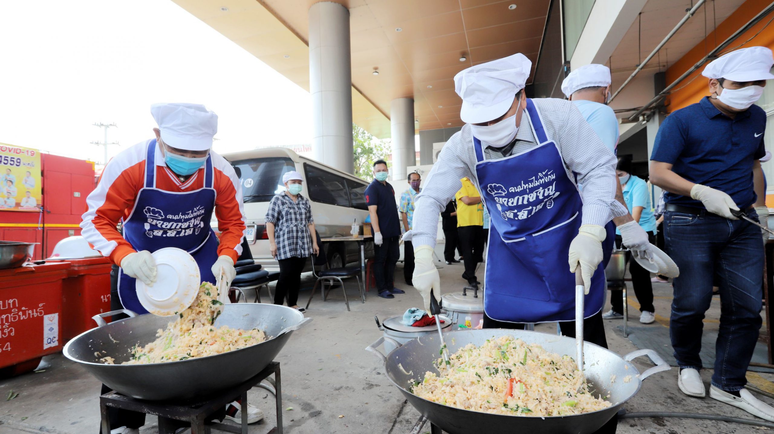 โดยมีกลุ่มข้าราชการอบจ.ปทุมธานี ได้ช่วยกันคนละไม้คนละมือ ตั้งครัวสนามของอบจ.ร่วมกันผัดข้าวผัดวันละ1,000กล่อง แจกประชาชนที่ได้รับผลกระทบจากการแพร่ระบาดของ ไวรัสโควิด-19 ณ บริเวณหน้าองค์การบริหารส่วนจังหวัดปทุมธานี อำเภอเมือง จังหวัดปทุมธานี