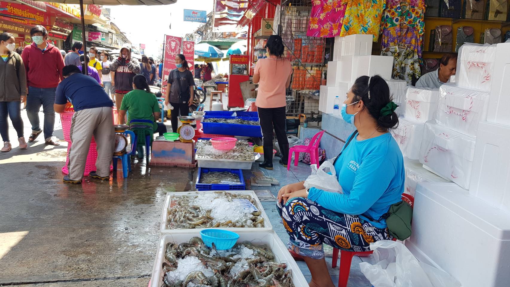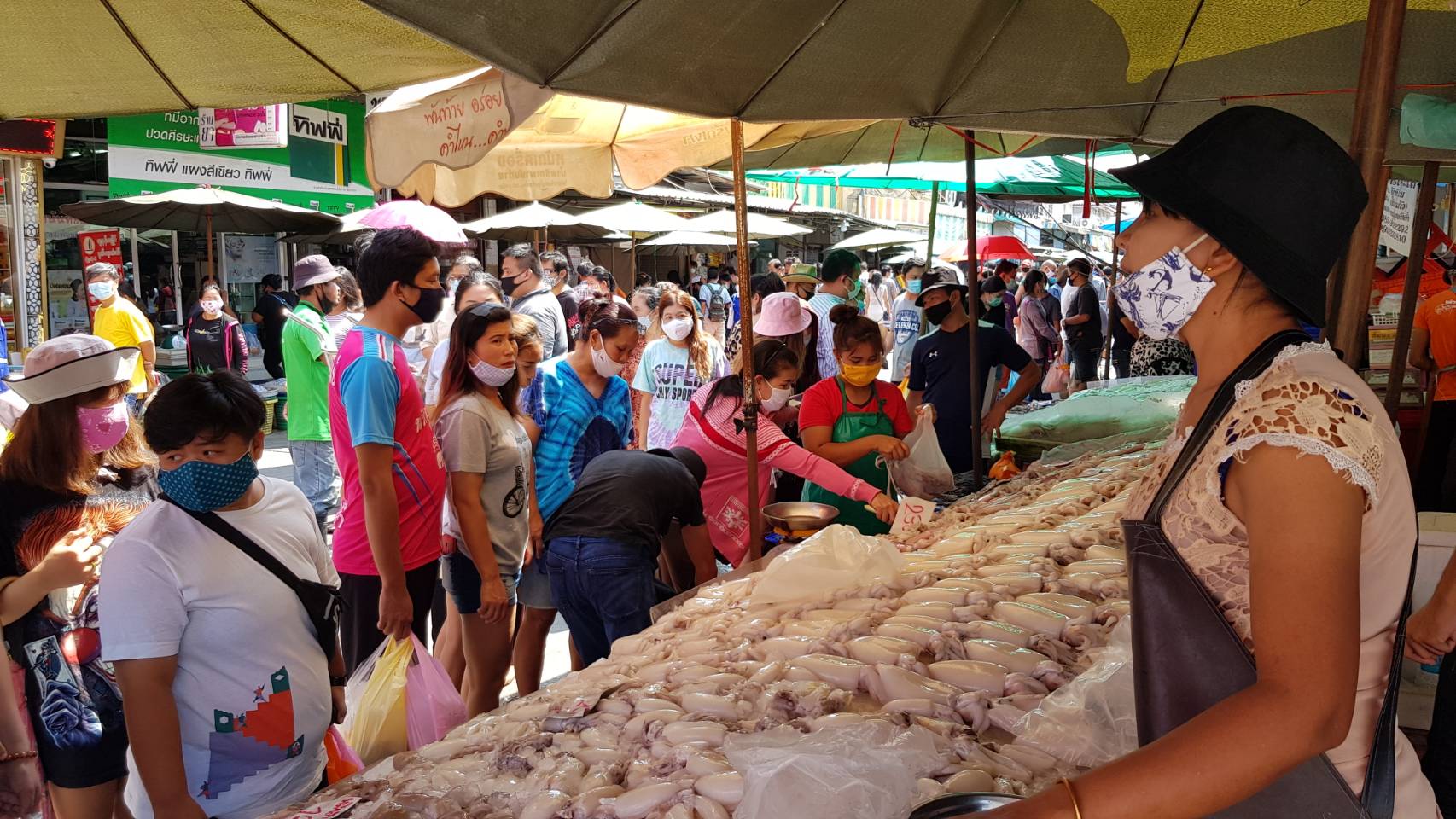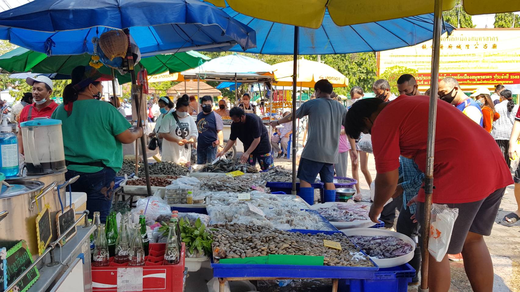 เพื่อป้องกันการแพร่ระบาดเชื้อไวรัสโคโรนา 2019 (COVID-19) ส่วนทางเจ้าหน้าที่ตำรวจจราจรก็ได้มีการอำนวยความสะดวกการจราจรเช่นกัน โดยทางด้านแม่ค้าอาหารทะเล บอกว่าวันนี้คนคึกคักเป็นพิเศษทำให้อาหารทะเลขายดี ซึ่งราคาของอาหารทะเลวันนี้ก็ถือว่าเป็นปกติราคาไม่สูงอาทิกุ้งก้ามกรามราคา220-350บาท หมึกกล้วย 180 บาท เป็นต้น ซึ่งต้องการให้ขายดีแบบนี้ทุกวันเลย เศรษฐกิจจะได้ดีขึ้น../