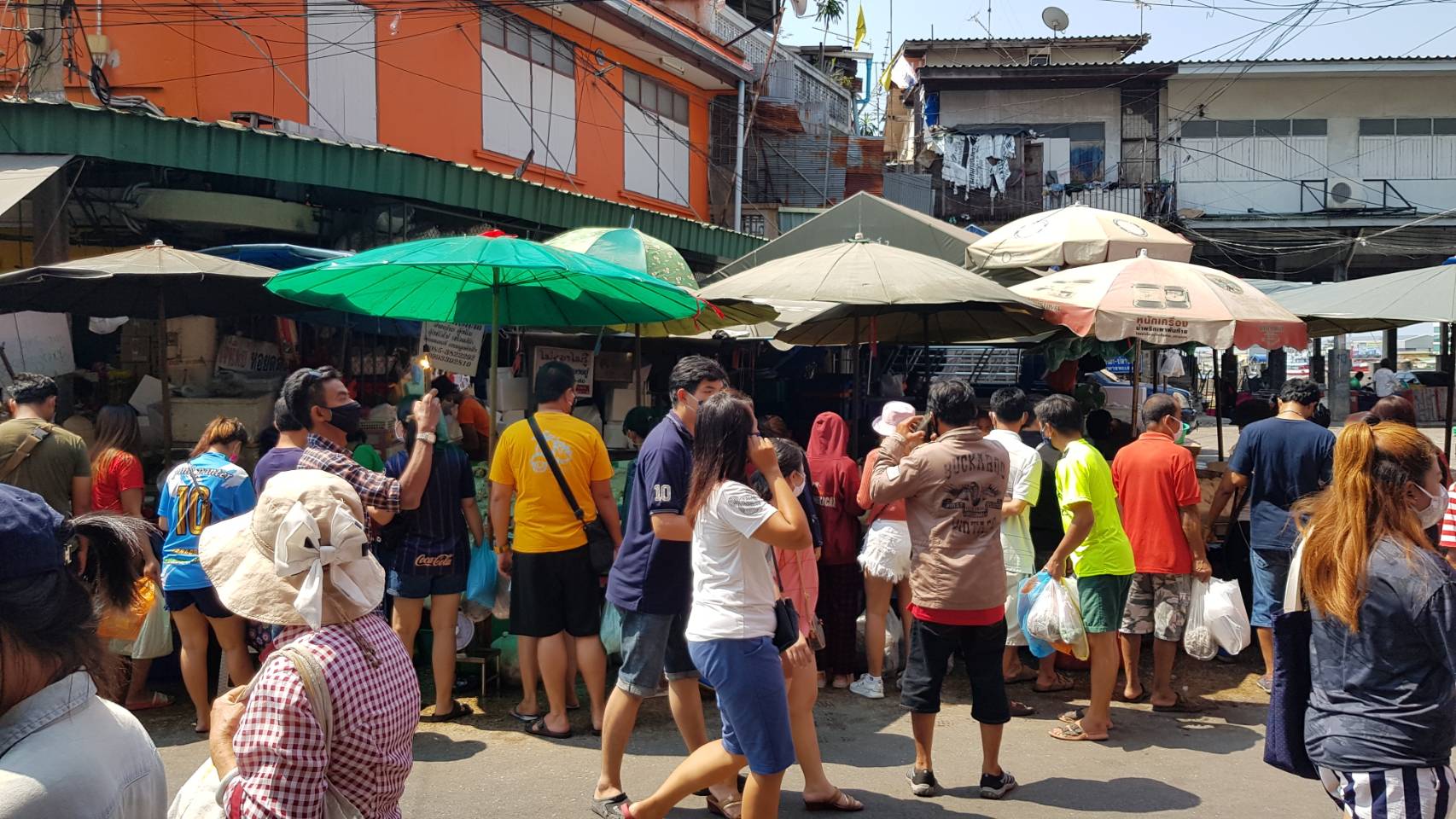 เมื่อเวลาประมาณ08.30น.ของวันที่ 1 พฤษภาคม 2563 ผู้สื่อข่าวได้ลงพื้นที่บริเวณตลาดมหาชัย ต.มหาชัย อ.เมือง จ.สมุทรสาคร พบว่าในวันนี้ตลาดมหาชัยดูคึกคักเป็นพิเศษ เนื่องจากเป็นวันแรงงานแห่งชาติซึ่งถือเป็นวันหยุดของผู้ใช้แรงงาน จึงมีประชาชนออกมาจับจ่ายใช้สอยกันเป็นจำนวนมาก แม่ค้าหลายร้านนำอาหารทะเลออกมาวางโชว์ให้ผู้ซื้อได้เลือกกันแบบสะดวก ซึ่งก็มี คนในพื้นที่และจังหวัดใกล้เคียง รวมทั้งแรงงานต่างด้าว ก็ออกมาเลือกหาของทะเลสำหรับไว้ทำรับประทานกันในครอบครัว ซึ่งบรรยากาศโดยทั่วไปได้มีทางเจ้าหน้าที่เทศบาลนครสมุทรสาครได้มาทำการ ตั้งจุดคัดกรองตรวจวัดอุณหภูมิ ล้างมือด้วยเจลแอลกอฮอล์ทุกคนก่อนเข้าตลาด