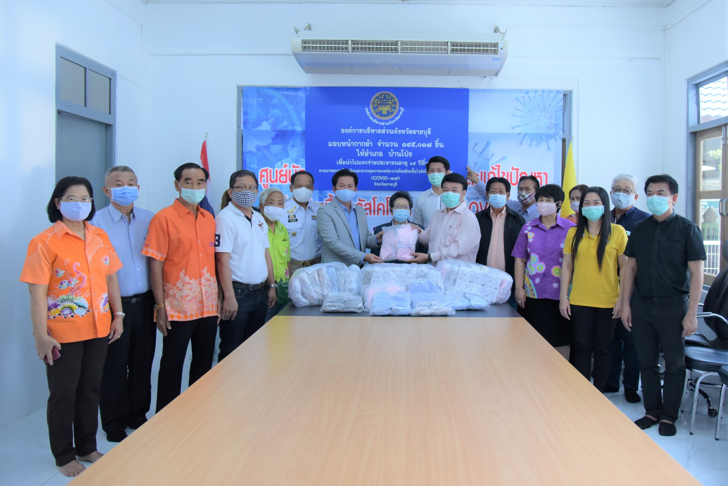 เป็นโครงการที่จังหวัดราชบุรีได้มอบหมายให้ อบจ.ราชบุรีจัดทำขึ้น เพื่อป้องกันการแพร่ระบาดเชื้อไวรัส COVID-19 เป็นหน้ากากผ้าสะท้อนน้ำ ซึ่งเป็นหน้ากากผ้าอย่างดี จำนวน 725,683 ชิ้น โดยมอบให้อำเภอต่างๆทั้ง 10 อำเภอ นำไปแจกจ่ายให้กับประชนในจังหวัดราชบุรี ตั้งแต่อายุ 15 ปีขึ้นไป โดยในวันนี้ อำเภอบ้านโป่งเป็นอำเภอแรกที่รับมอบหน้ากากผ้าชุดนี้ จำนวน 145,017ชิ้น มีสมาชิกวุฒิสภาจังหวัดราชบุรี พร้อมคณะผู้บริหาร สมาชิกสภา อบจ.ราชบุรี หัวหน้าส่วนราชการร่วมเป็นเกียรติในพิธีดังกล่าว ณ ศูนย์บัญชาการเหตุการณ์ป้องกันและแก้ไขปัญหาโรคติดเชื้อเชื้อไวรัส COVID-19 อ.บ้านโป่ง จ.ราชบุรี