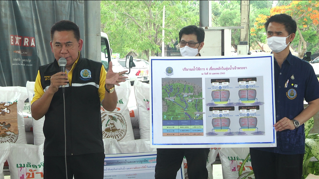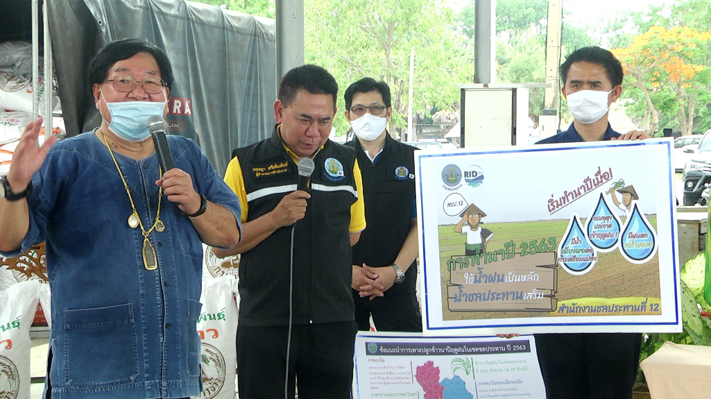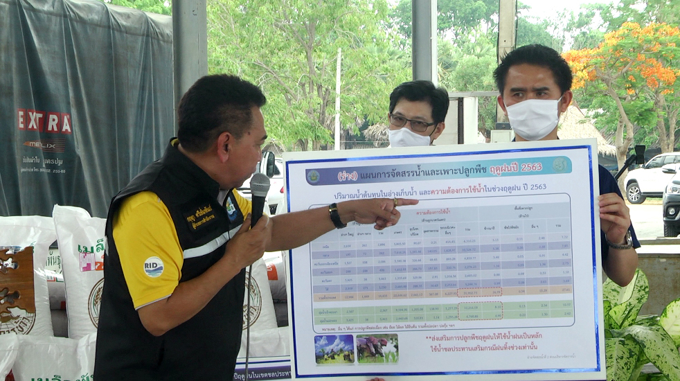 ส่วนเรื่องน้ำที่จะทำนานั้น ช่วงเดือนพฤษภาคม จะเป็นช่วงต้นฤดูฝน เกษตรกรจะเตรียมการเพาะปลูกข้าวนาปี แต่อย่างไรก็ตามทางชลประทานแจ้งว่าขณะนี้ต้นทุนน้ำ 4 เขื่อน หลักยังมีปริมาณน้อย น้ำมีเพียงพอไว้ใช้อุปโภคบริโภค เลี้ยงสัตว์เท่านั้น ขณะนี้ปริมาณน้ำในเขื่อนยังไม่เพียงพอกับการเพาะปลูกพืชผลทางการเกษตรขอให้พี่น้องเกษตรกรรอฟังประกาศจากกรมอุตุนิยมวิทยาว่าในปีนี้จะมีฝนตกลงมากน้อยเพียงใด เกษตรกรจะสามารถเริ่มทำนาได้ประมาณวันที่เท่าไร ซึ่งในปีที่ผ่านมาเกษตรกรเริ่มลงมือทำนาปี ราววันที่ 20 พฤษภาคม ช่วงนี้ขอให้พี่น้องเกษตรกรรอฝนตกลงมาก่อน คาดว่าเกษตรกรจะสามารถเริ่มทำนาได้ประมาณ วันที่ 25 พฤษภาคม 2563 จากนั้นก็ให้ทางชลประทานประกาศให้เริ่มทำนาได้ หากปริมาณน้ำฝนไม่เพียงพอในการการทำนาปี ทางชลประชนจะปล่อยน้ำเข้ามาช่วยเสริม เพื่อให้พี่น้องเกษตรกรได้เก็บเกี่ยวผลผลิตต่อไป ส่วนเงินทุนในโครงการส่งเสริมการผลิตเมล็ดพันธุ์ข้าวคุณภาพดี ปี 2563 ซึ่งการเพาะปลูกข้าวนาปี ทางกระทรวงเกษตรและสหกรณ์ ได้ประสานกับทาง ธ.ก.ส.ขอให้เกษตรกรที่จะเข้าร่วมโครงการส่งเสริมการผลิตเมล็ดพันธุ์ข้าวคุณภาพดีปี 2563 ไปรวมกลุ่มกันขึ้นทะเบียนเป็นวิสาหกิจชุมชนแล้วก็ยื่นขอกู้เงินทุนกับทาง ธ.ก.ส.ได้โดยทาง ธ.ก.ส.จะคิดดอกเบี้ยเพียงล้านละร้อยต่อปี
