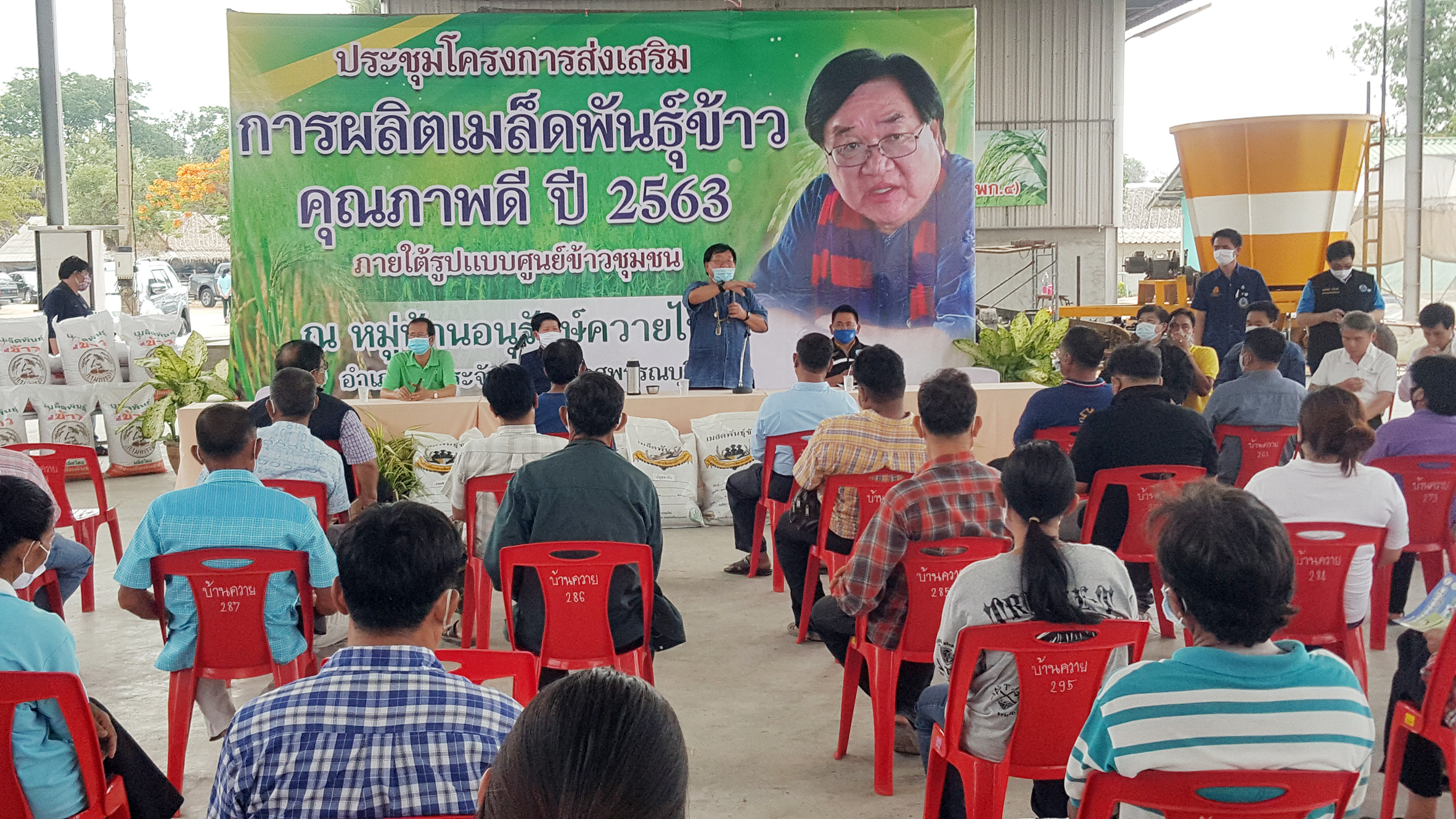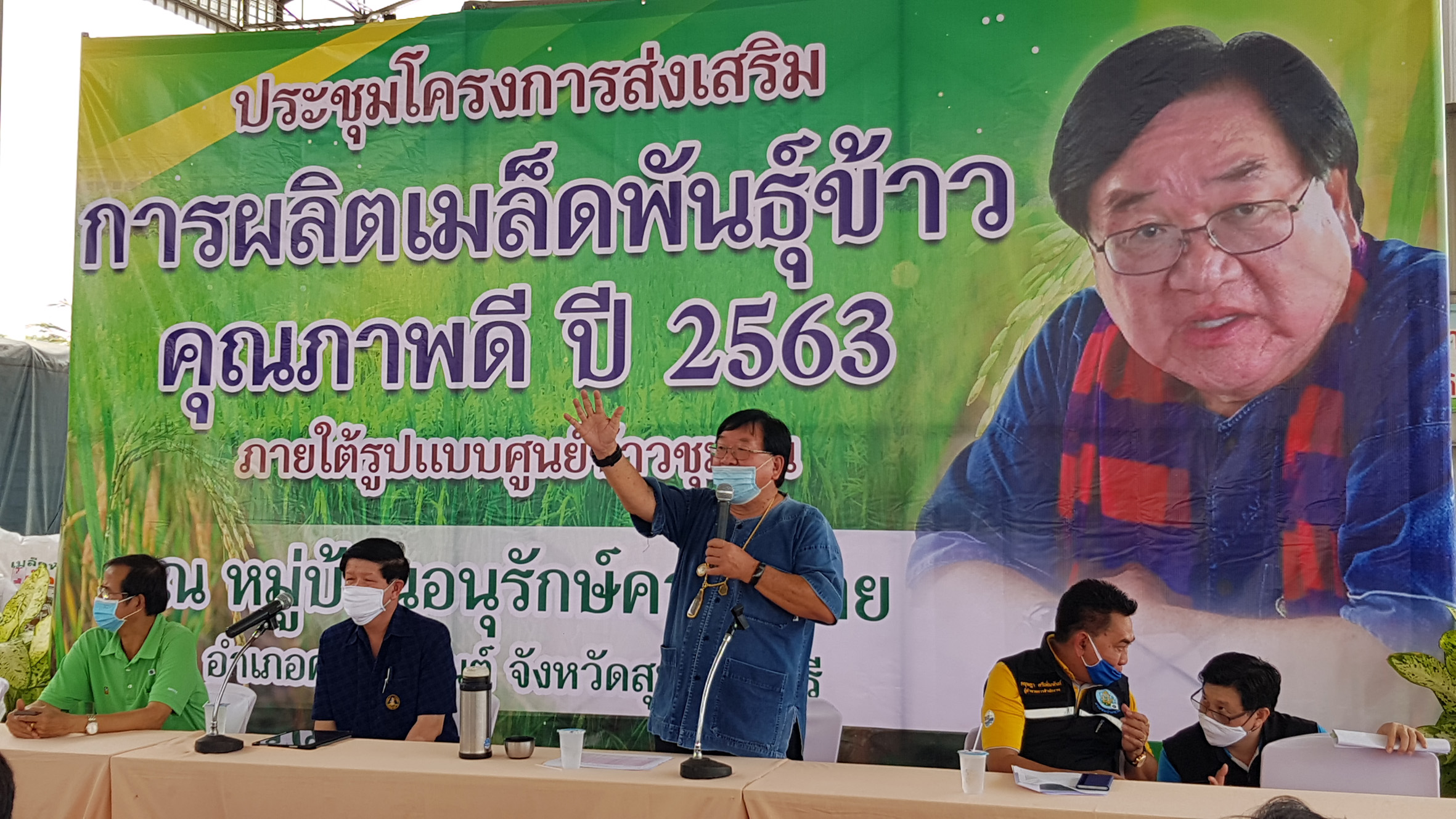 ที่ จ.สุพรรณบุรี นายประภัตร โพธสุธน รมช.เกษตรและสหกรณ์ นายภูสิต สมจิตต์ รอง ผวจ.สุพรรณบุรี นายขจร เล้าประเสริฐ รองอธิบดีกรมการข้าว นายกฤษดา ศรีเพิ่มพันธ์ ผอ.สำนักงานชลประทานที่ 12 นายไพฑูรย์ รื่นสุข เกษตร จ.สุพรรณบุรี นายสมภพ เรืองจันทร์ ผอ.ธ.ก.ส.สำนักงานสุพรรณบุรี นายอาคม แย้มนวล นายอำเภอศรีประจันต์ เจ้าหน้าที่เกษตรอำเภอ เกษตรตำบล และตัวแทนกลุ่มเกษตรกร จาก อ.เดิมบางนางบวช อ.สามชุก อ.ศรีประจันต์ กว่า 100 คน เข้าร่วมโครงการส่งเสริมการผลิตเมล็ดพันธุ์ข้าวคุณภาพดี ปี 2563 ณ หมู่บ้านอนุรักษ์ควายไทย อ.ศรีประจันต์ จ.สุพรรณบุรี ได้ประชุมชี้แจงโครงการส่งเสริมการผลิตเมล็ดพันธุ์ข้าวคุณภาพดี ปี 2563 ณ หมู่บ้านอนุรักษ์ควายไทย อ.ศรีประจันต์ จ.สุพรรณบุรี มีตัวแทนกลุ่มเกษตรกร จาก อ.เดิมบางนางบวช อ.สามชุก อ.ศรีประจันต์ กว่า 100 คน เข้าร่วม