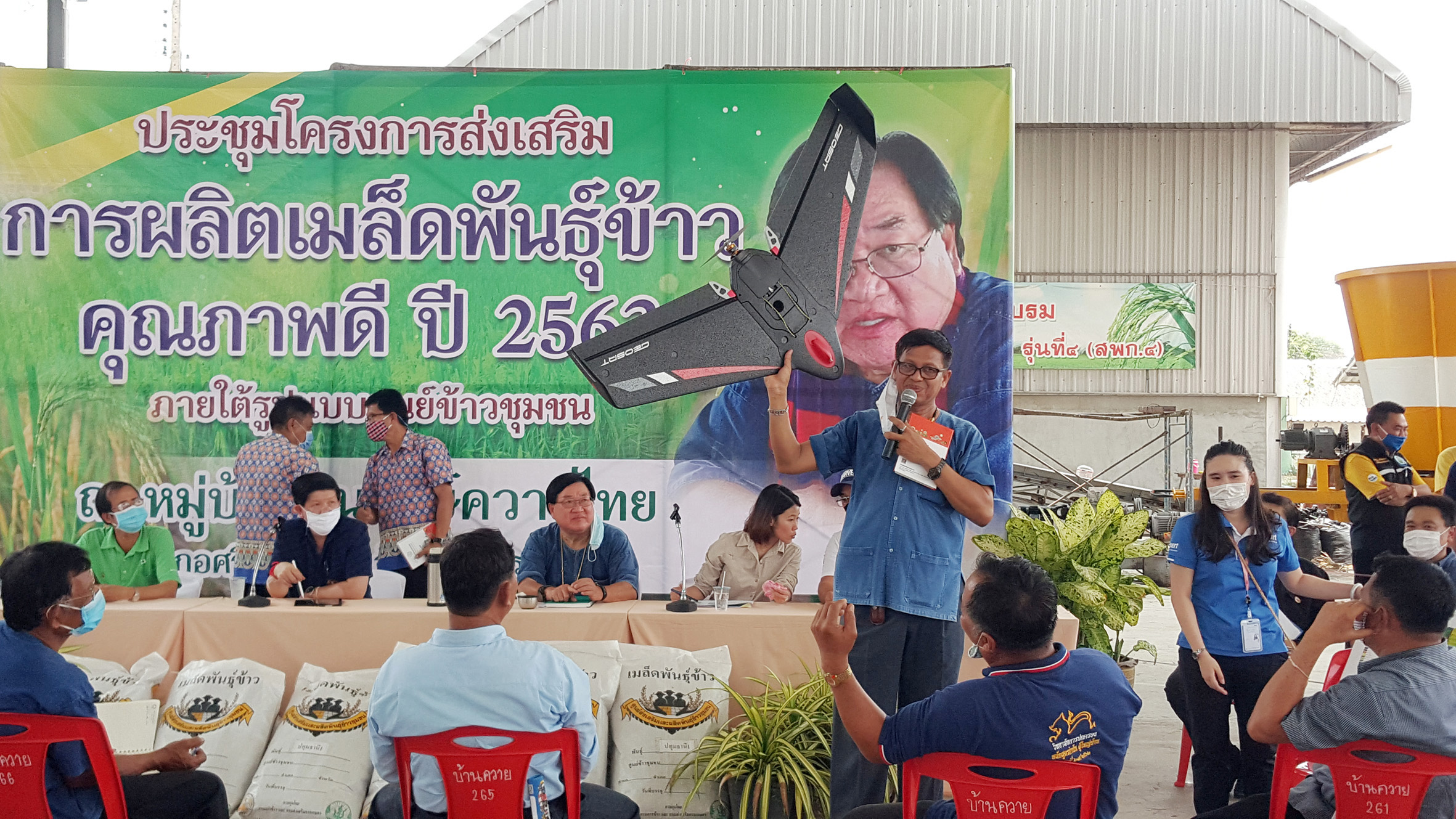 โดยนายประภัตร โพธสุธน รวช.เกษตรและสหกรณ์ เปิดเผยว่ากระทรวงเกษตรและสหกรณ์ กรมส่งเสริมการเกษตร และกรมการข้าว ชลประทาน เกษตรจังหวัดสุพรรณบุรี ธ.ก.ส.สุพรรณบุรี บริษัทผลิตปุ๋ยออแกนิค และบริษัทที่จะมารับดูแลการปลูกข้าวหน่วยงานที่เกี่ยวข้องประชุมเพื่อเตรียมความพร้อมในการผลิตเมล็ดพันธุ์ข้าวพันธุ์ดี เตรียมตั้งศูนย์พันธุ์ข้าว ที่จะผลิตเมล็ดพันธุ์ข้าวพันธุ์ดี ด้วยการนำเทคโนโลยีการผลิตสมัยใหม่และใช้โดรนบินถ่ายภาพทางอากาศผ่านดาวเทียม เพื่อนำไปตรวจวัดการเจริญเติบโตของข้าว