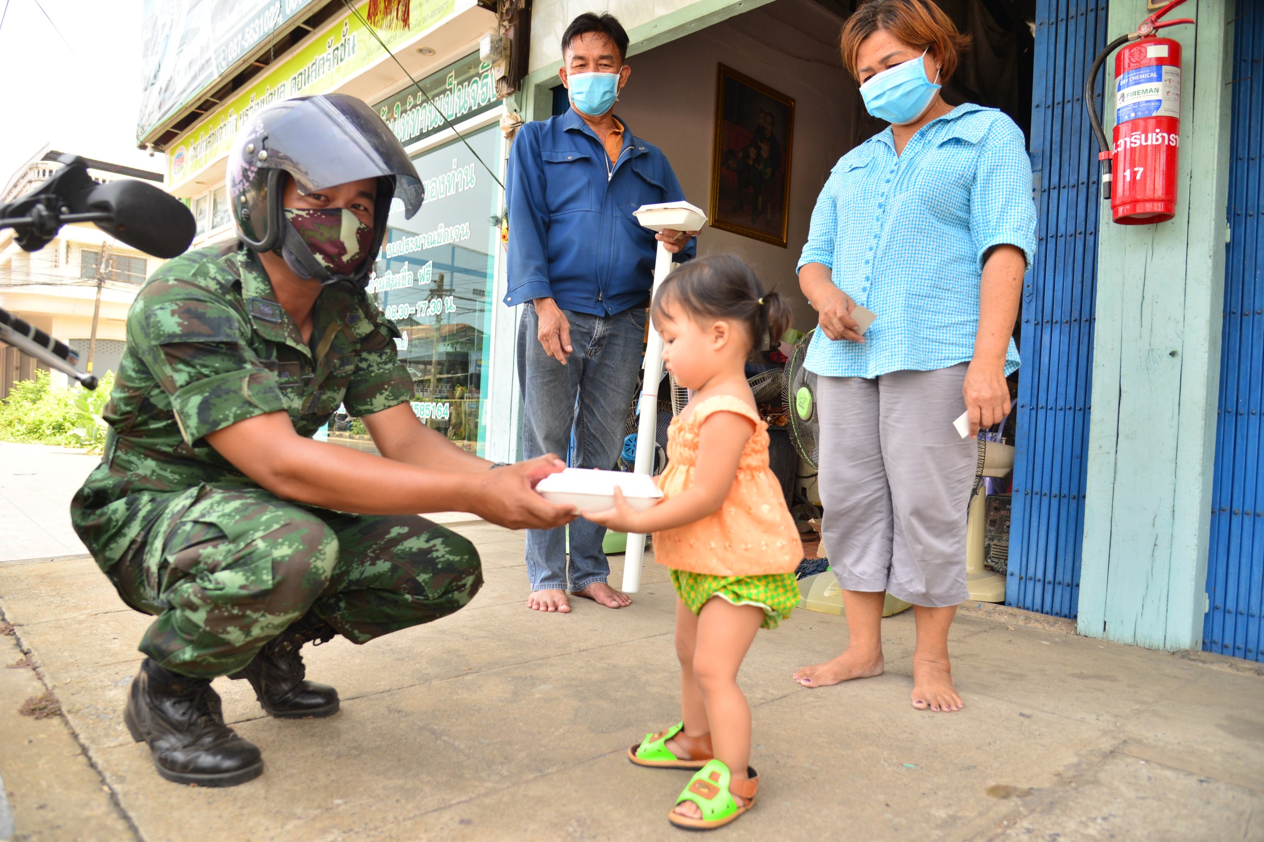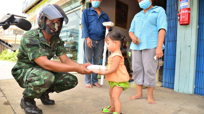 วันที่ 2 พ.ค. 63 พล.ต.สรชัช สุทธิสนธิ์ ผบ.มทบ.22 มอบหมายให้ Army Delivery มทบ.22 โดยกำลังพลทหาร และจิตอาสาพระราชทาน นำอาหารปรุงสุกที่ประกอบโดยรถครัวสนาม จำนวน 1,000 กล่อง ส่งถึงหน้าบ้านประชาชน ในชุมชนวัดวาริน อ.วารินชำราบ จ.อุบลราชธานี