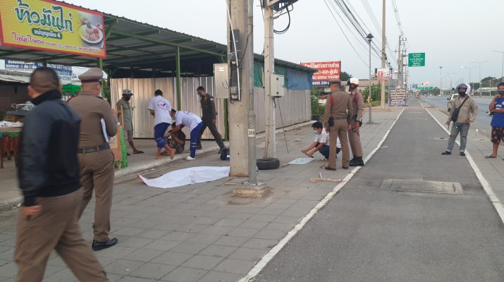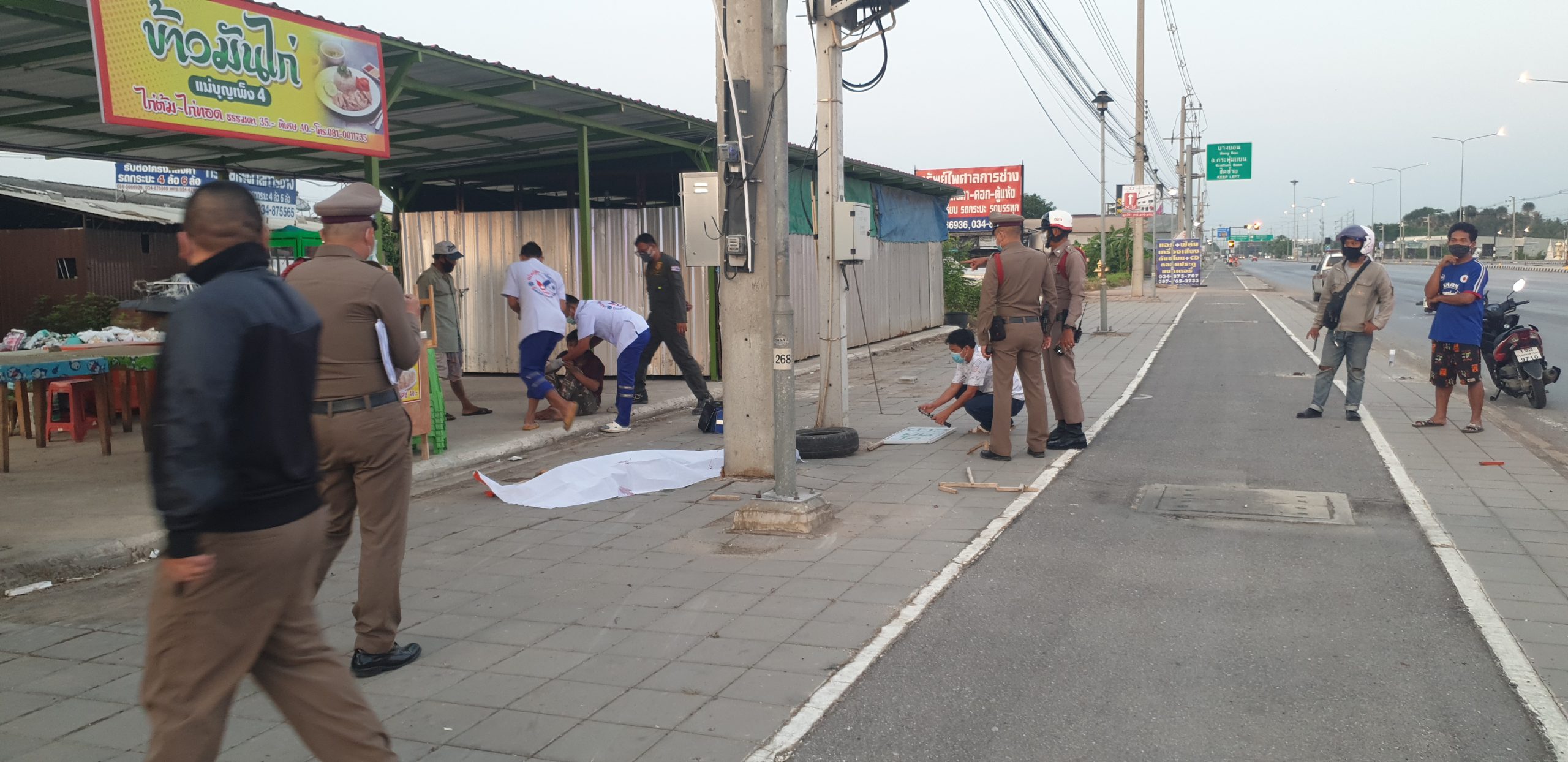 สองหนุ่มวัยรุ่นขับจยย.พุ่งชนฟุตบาท ร่างกระเด็นกระแทกเสาไฟฟ้าตาย 1 เจ็บ 1 ค้นในตัวพบเครื่องชั่ง และยาเคตกอยู่พื้นถนน