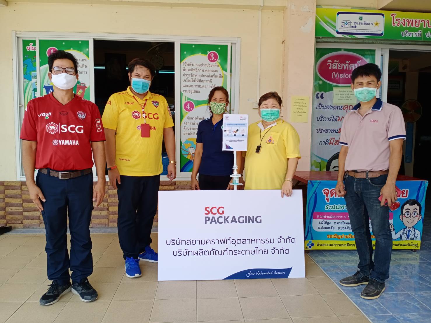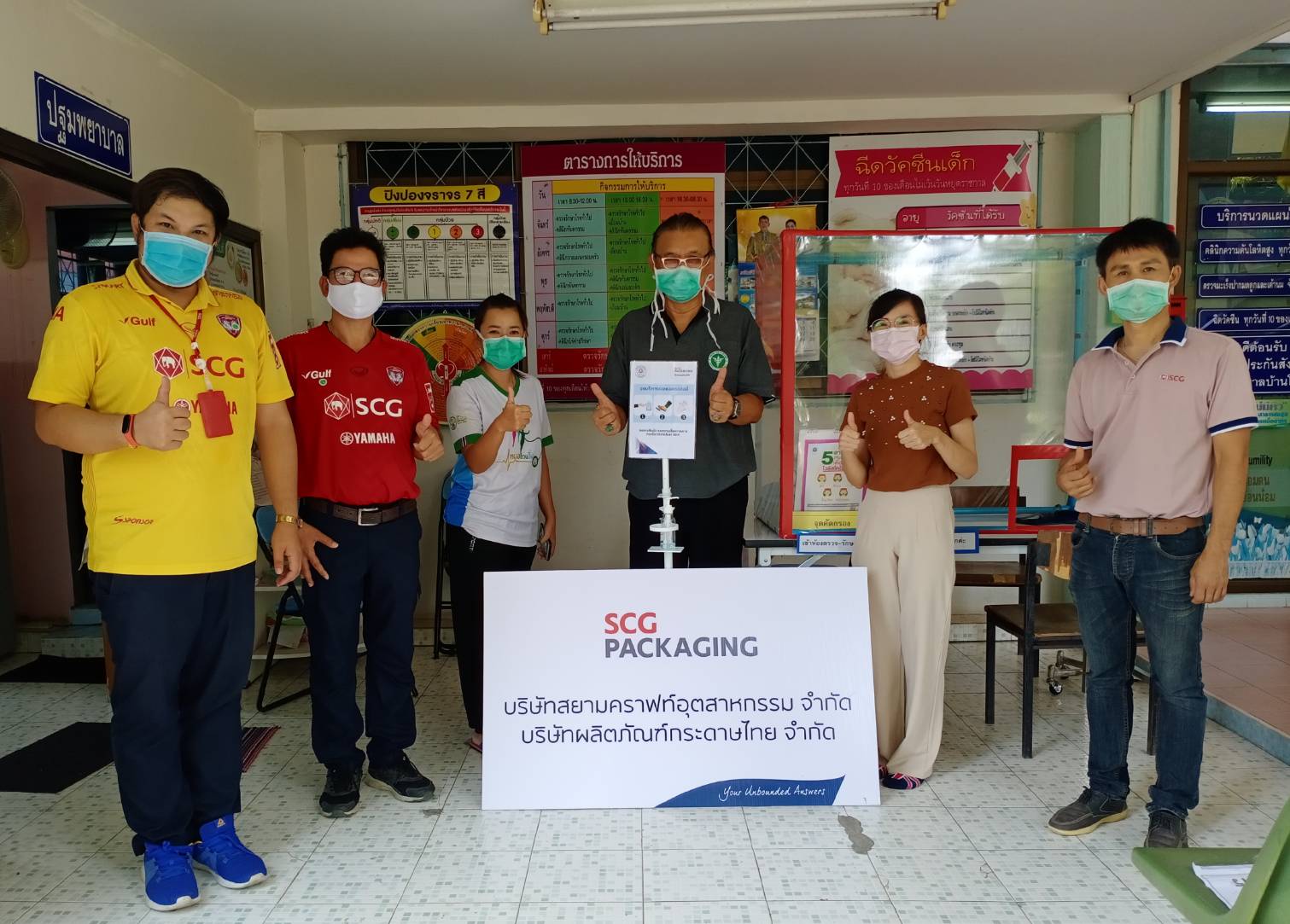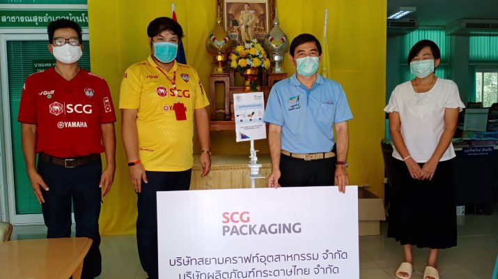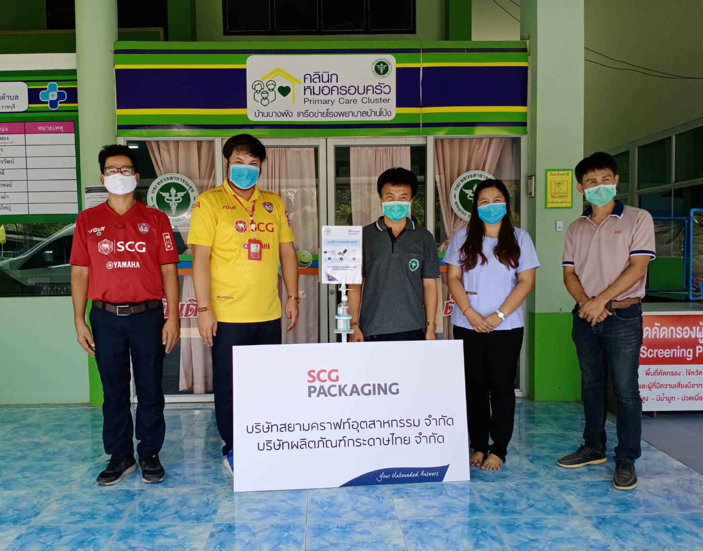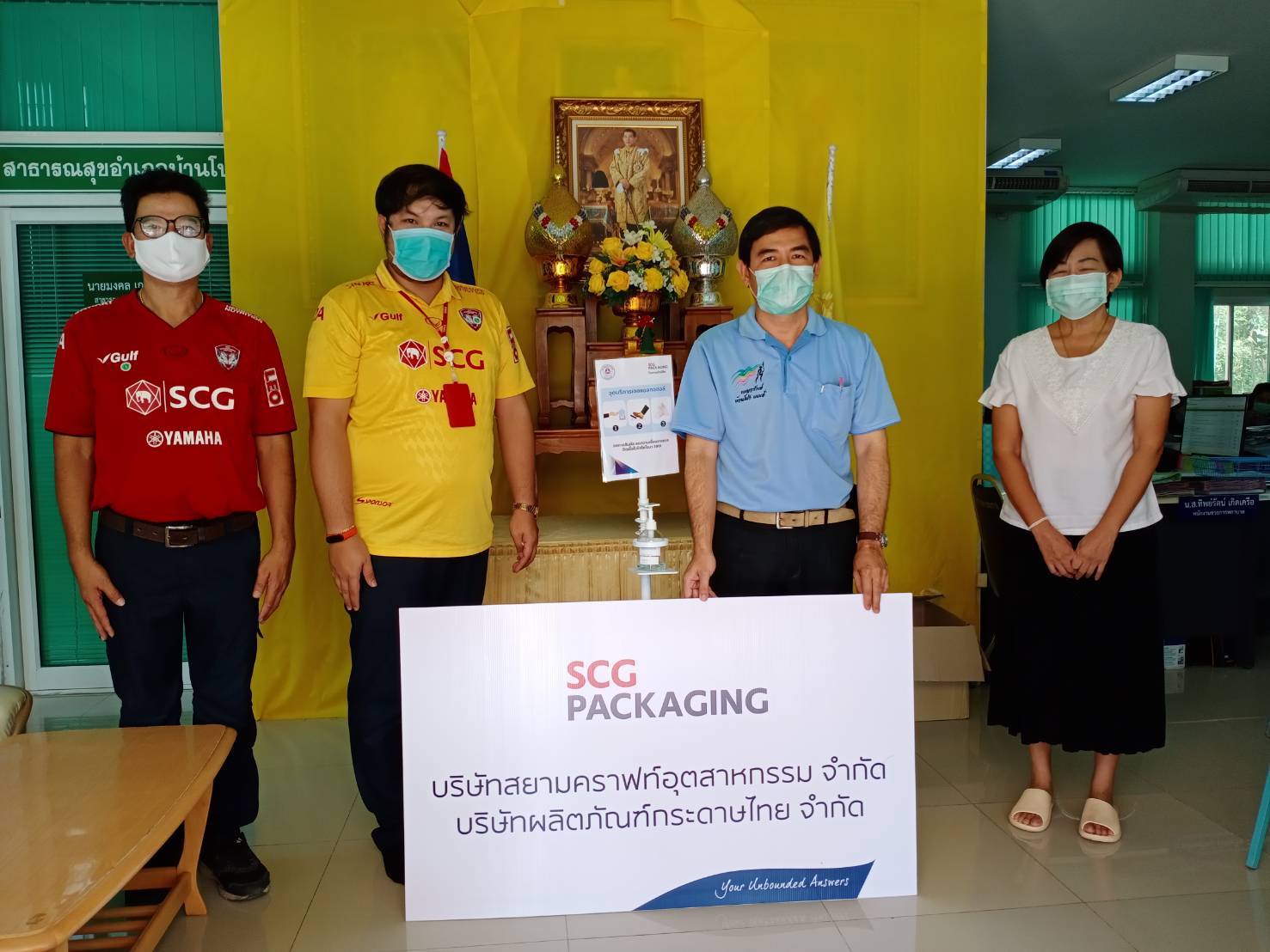 SCG โรงงานบ้านโป่ง ส่งต่อ มอบอุปกรณ์ “ เครื่องกดแอลกอฮอล์เจลแบบใช้เท้าเหยียบ”ให้ภาครัฐอำเภอบ้านโป่ง จังหวัดราชบุรีและพื้นที่ติดต่อรอบโรงงานจังหวัดกาญจนบุรี