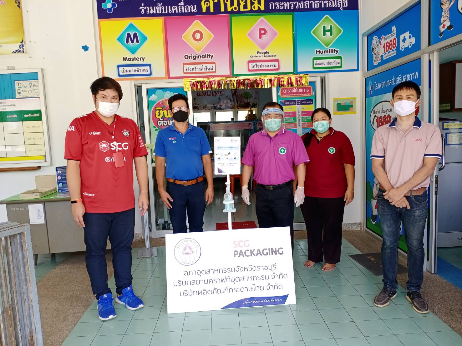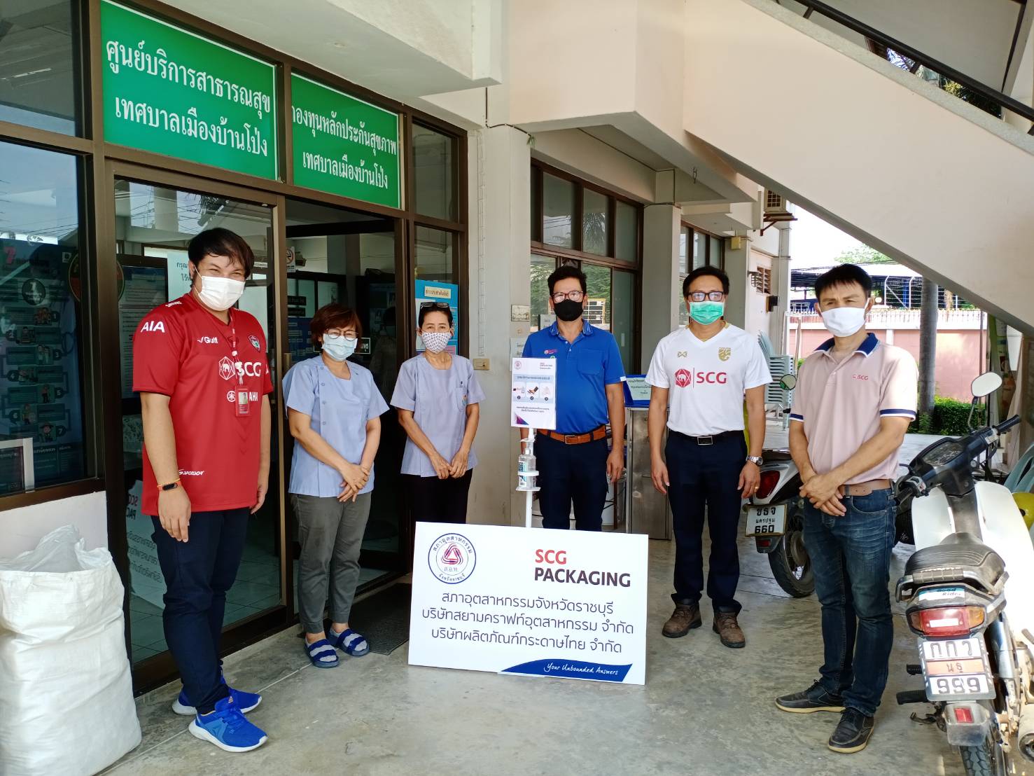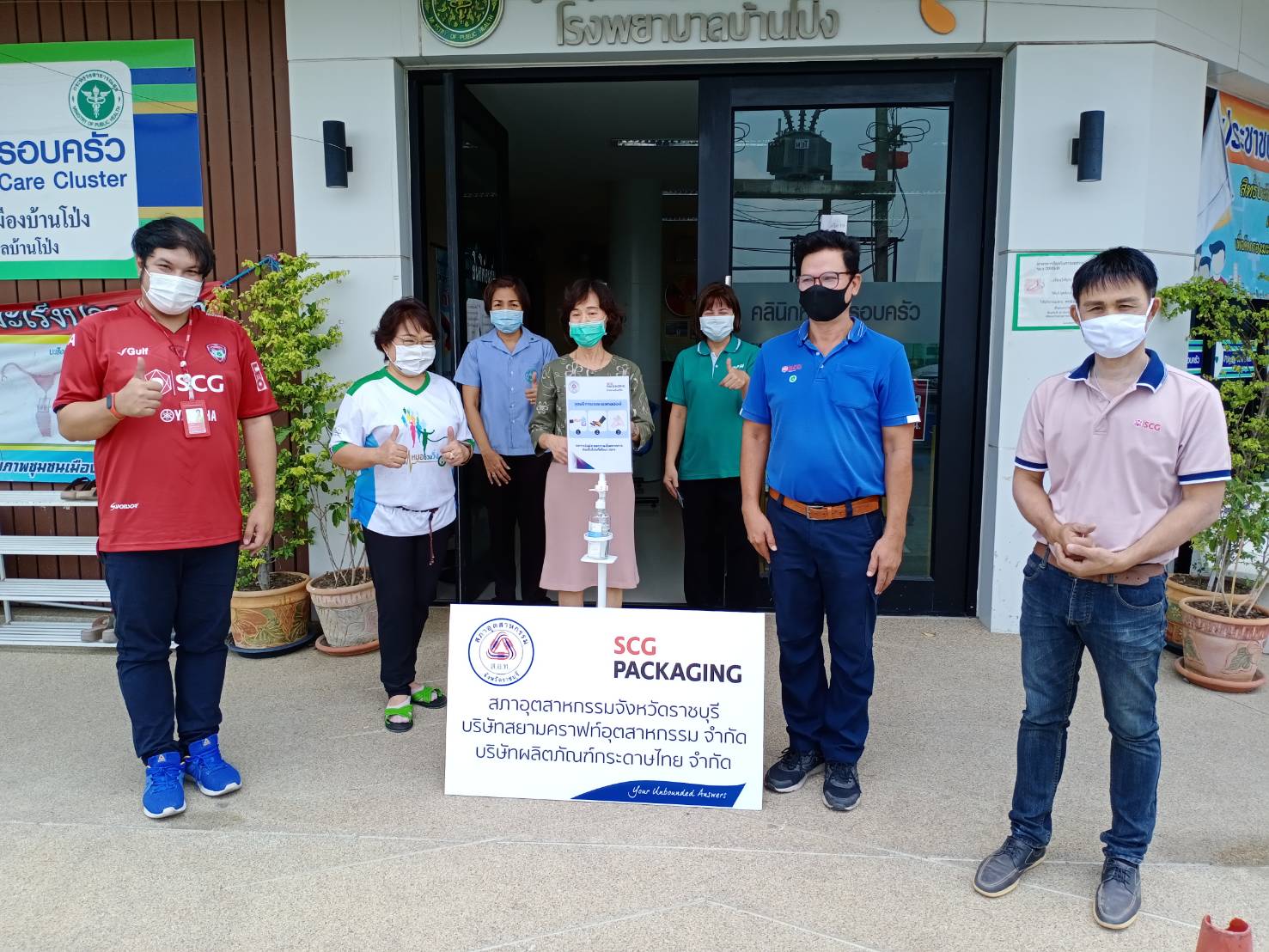 เมื่อวันที่ 17-29 เมษายน 2563 เอสซีจี โรงงานบ้านโป่ง ในนามของ สภาอุตสาหกรรมจังหวัดราชบุรี มอบอุปกรณ์ “เครื่องกดแอลกอฮอล์เจลแบบใช้เท้าเหยียบ” (Alcohol Spary by foot) ให้กับโรงพยาบาลบ้านโป่ง , สำนักงานสาธารณสุขอำเภอบ้านโป่ง , โรงพยาบาลส่งเสริมสุขภาพตำบล (รพ.สต.) ในอำเภอบ้านโป่ง จังหวัดราชบุรี ทั้ง 24 แห่ง ศูนย์ส่งเสริมสุขภาพชุมชนเมืองบ้านโป่ง (SCG ริมน้ำ) , ศูนย์บริการสาธารณสุขเทศบาลเมืองบ้านโป่ง