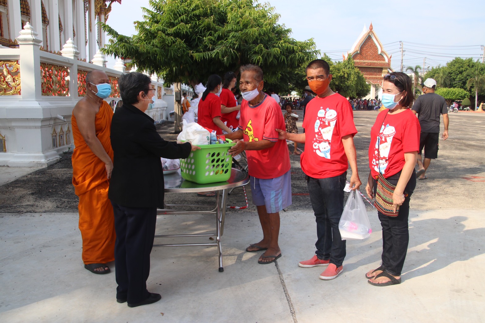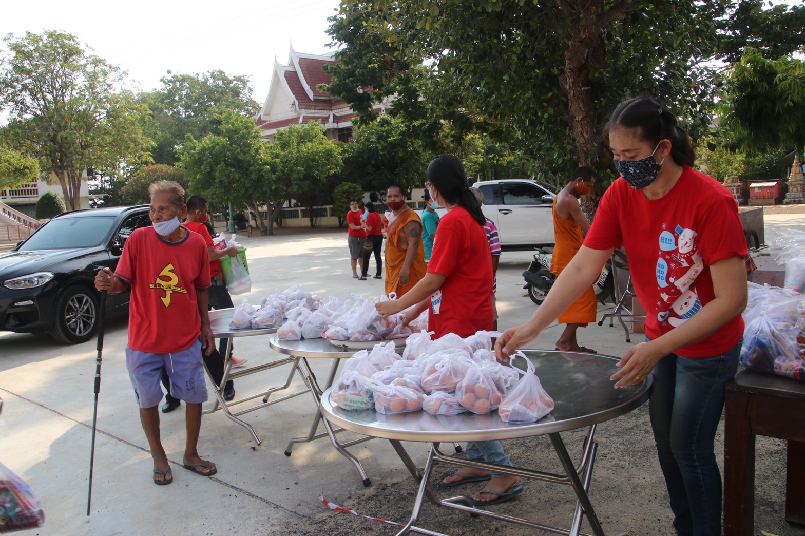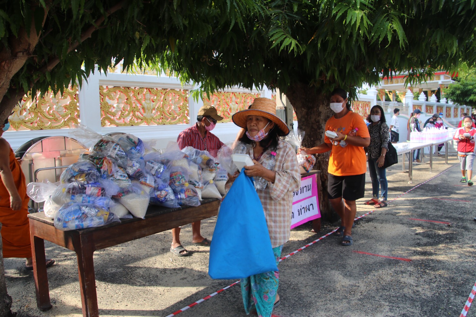 ราชบุรี พระก็ร่วมโยมก็ทำบริจาคข้าวสารอาหารแห้ง แจกประชาชน รับผลกระทบเคอร์ฟิว (ต้านไวรัสโควิด 19)
