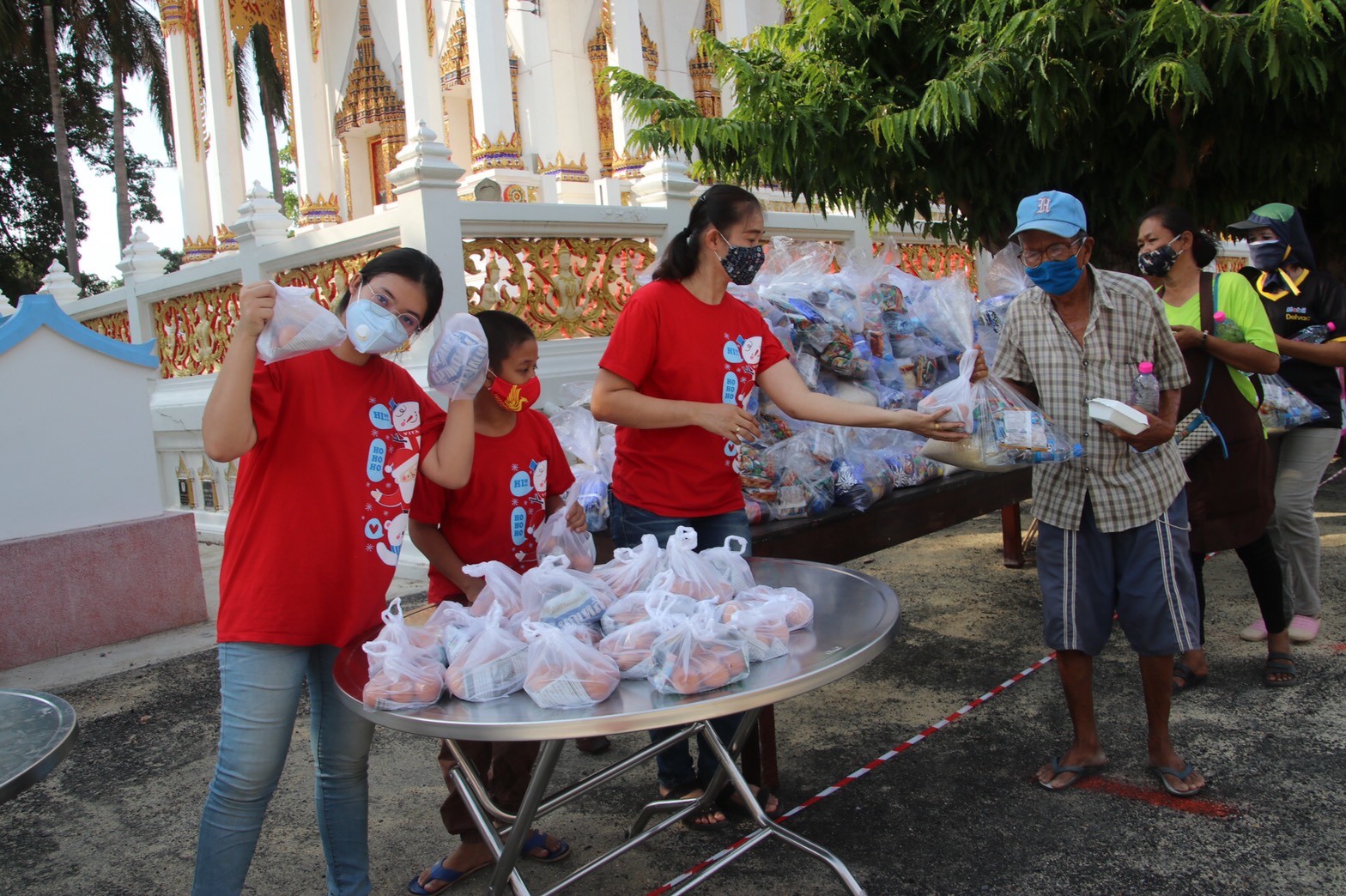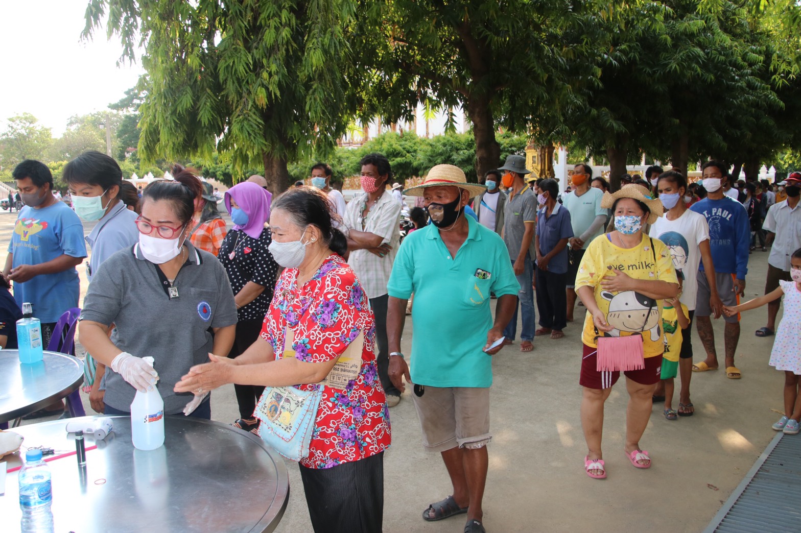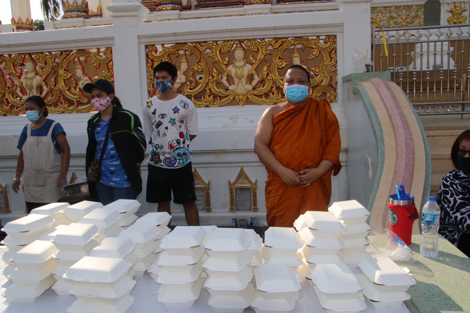 ราชบุรี พระก็ร่วมโยมก็ทำบริจาคข้าวสารอาหารแห้ง แจกประชาชน รับผลกระทบเคอร์ฟิว (ต้านไวรัสโควิด 19)