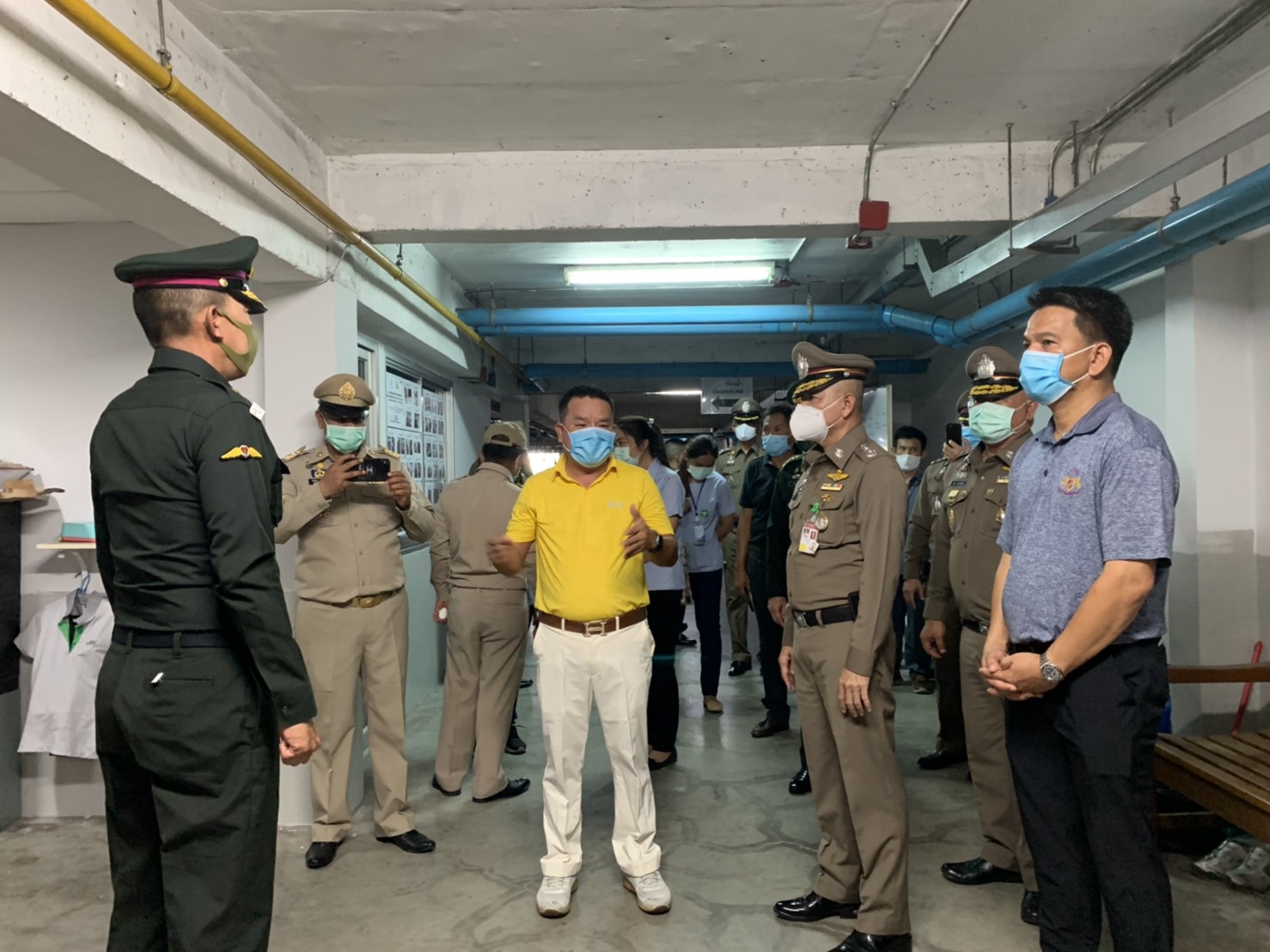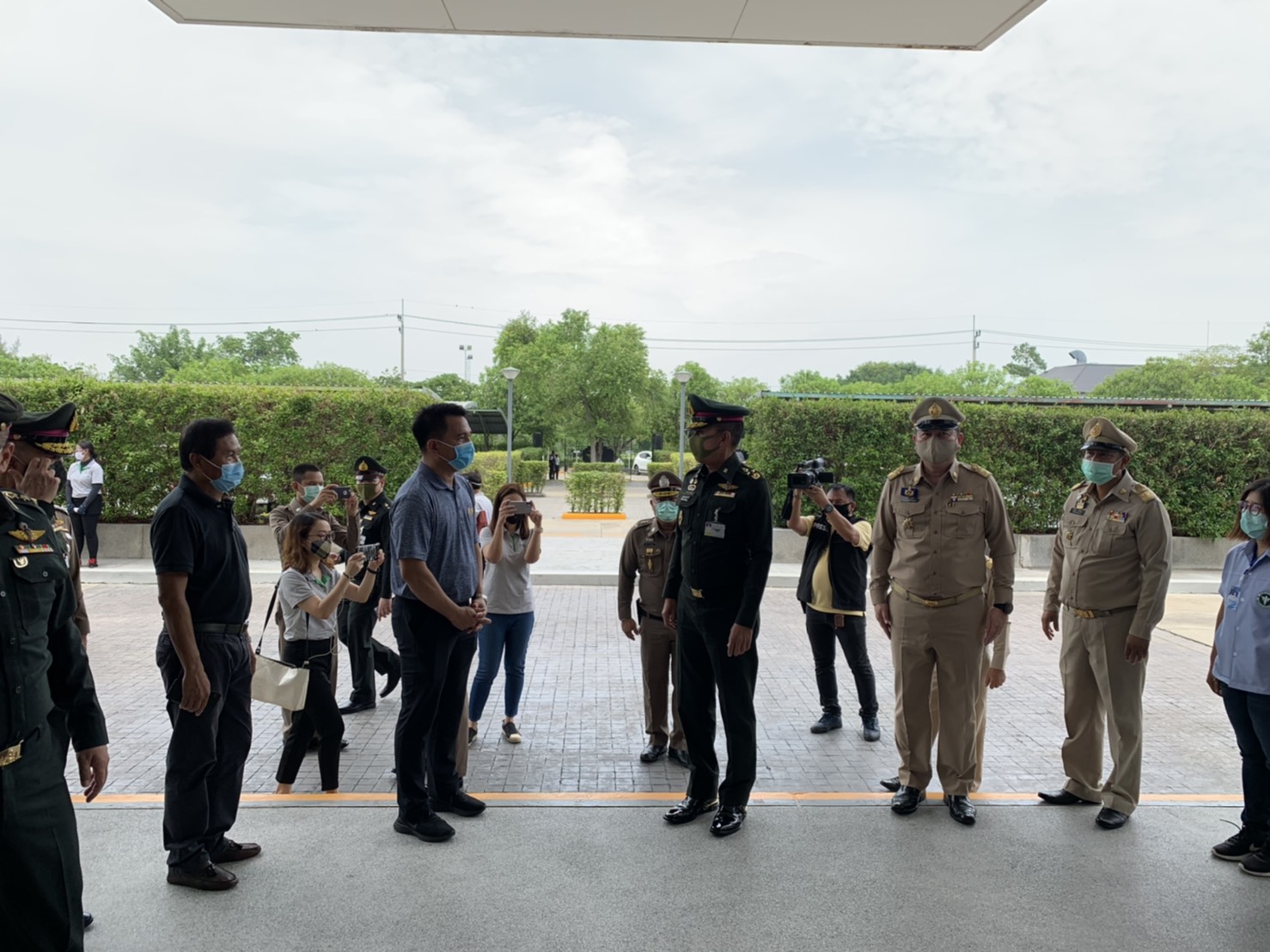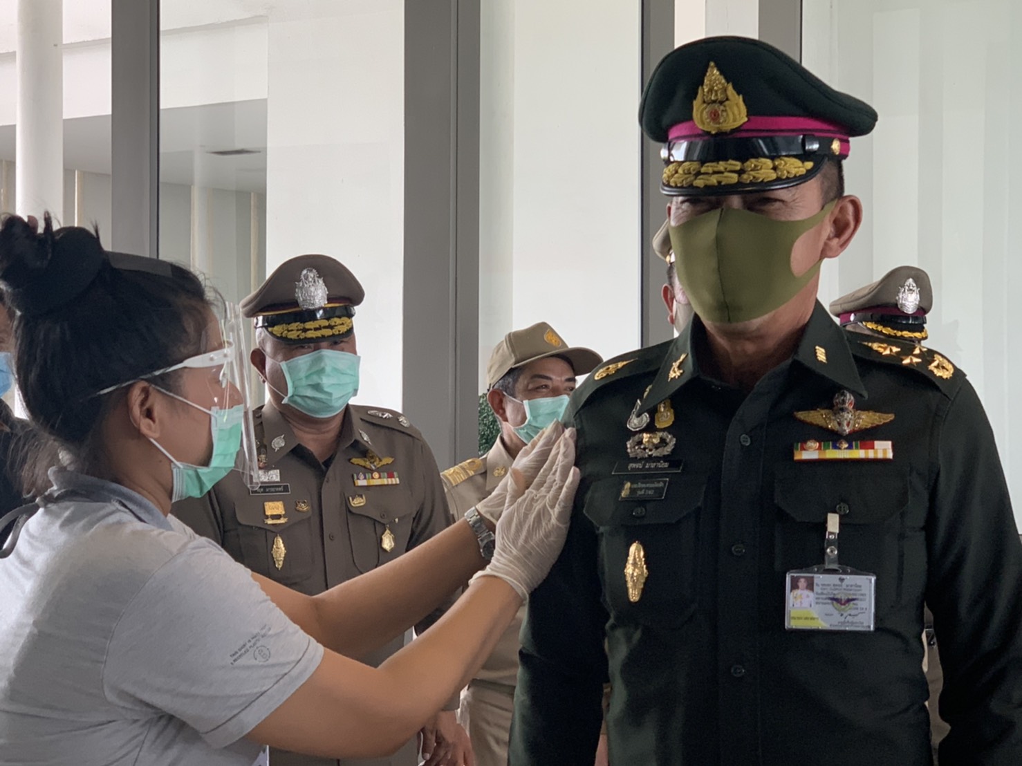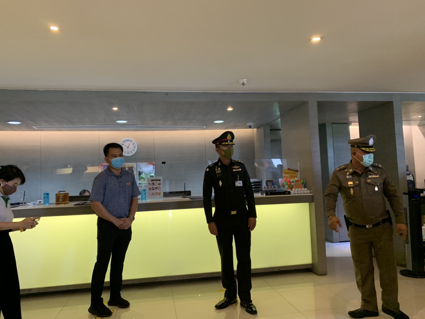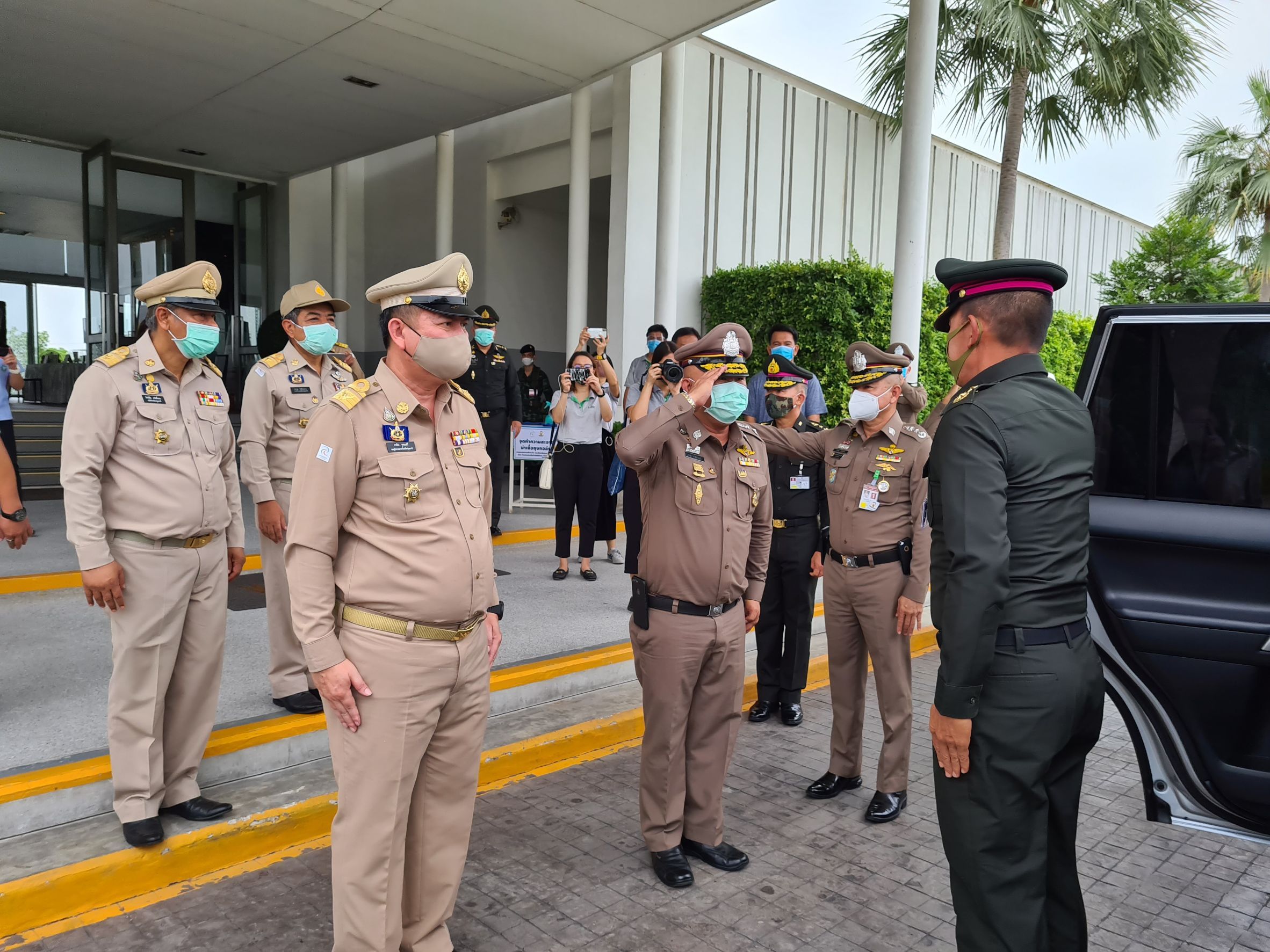 เมื่อช่วงบ่าย วันที่ 4 พ.ค. 63 พล.อ.สุพจน์ มาลานิยม รองเสนาธิการทหาร ( ผู้แทน ศปม. ) พร้อมด้วย พล.ต.ท.อำพล บัวรับพร ผบช.ภ.1 พล.ต.ต.ชยุต มารยาทตร์ ผบก.ภ.จว.ปทุมธานี นายชาธิป รุจนเสรี รอง ผวจ.ปทุมธานี นายสิทธิชัย สวัสดิ์แสน ปลัดจังหวัดปทุมธานี นายอาวุธ วิเชียรฉาย นอภ.เมืองปทุมธานี พ.ต.อ.ประวิทย์ บุญธรรม ผกก.สภ.ปากคลองรังสิต ทหาร จนท.ฝ่ายปกครอง จนท.สาธารณสุข เดินทางมาตรวจเยี่ยมสนามกอล์ “ฟริเวอร์เดล กอล์ฟ คลับ” และ สนามกอล์ฟ “บางกอก กอล์ฟ คลับ” ต.บ้านใหม่ อ.เมือง จ.ปทุมธานี หลังจากมีการปลดล็อคจาก พรก.ฉุกเฉิน เพื่อรับทราบการดำเนินการตามมาตรการการด้านความปลอดภัยและมาตรการความสะอาด หลังเปิดให้บริการตามมาตรการป้องกันการแพร่ระบาด ของเชื้อไวรัสโควิด-19 อย่างเคร่งครัด พร้อมให้ข้อเสนอแนะกับคณะผู้บริหารสนามกอล์ฟ โดยมีนายพงษ์ศักดิ์ ศัพท์เสน กก.ผจก.สนามกอล์ฟริเวอร์เดล กอล์ฟ คลับ และ นายเกียรติศักดิ์ เกตุศีริ ผู้จัดการทั่วไปฯ มาให้การต้อนรับ และนำพาชมการจัดการสถานที่ อาทิ จุดคัดกรองบริเวณล็อบบี้ พื้นที่พักคอย ห้องอาหาร ห้องซื้อตั๋วจำหน่ายอุปกรณ์ออกรอบ ห้องพักแคดดี้ โรงอาหาร และ ในสนามกอล์ฟ เป็นต้น