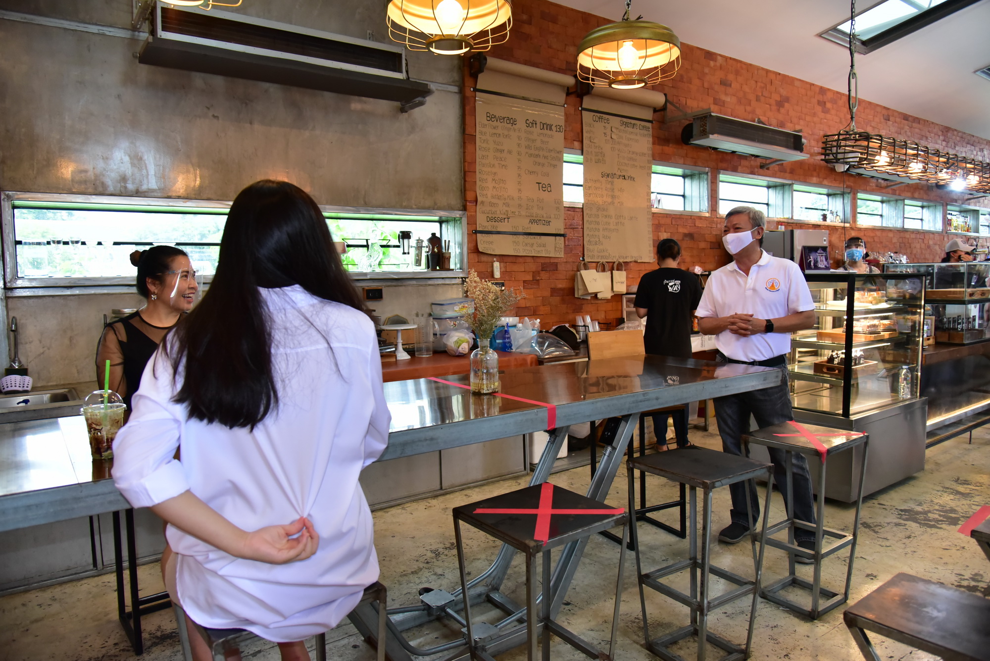 โดย ผู้ว่าราชการจังหวัดนครปฐม และคณะได้ให้คำแนะนำร้านอาหาร /เครื่องดื่ม และตลาดนัดชุมชน ในเรื่องของการเว้นระยะห่างโต๊ะ ที่นั่งและการเดิน จำนวนคนรอคิวไม่ให้แออัด ตลอดจนให้มีการเช็ดทำความสะอาดพื้นผิวสัมผัส ทั้งก่อนและหลังการให้บริการ ซึ่งผู้ค้ายินดีให้ความร่วมมือปฏิบัติตามมาตรการเพื่อความปลอดภัย และป้องกันการแพร่กระจายเชื้อโควิด-19 ต่อไป