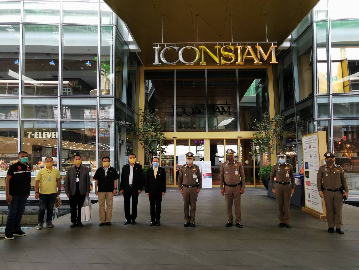 โดยห้างสรรพสินค้าไอคอนสยาม มีการตั้งจุดคัดกรองด้วยการติดตั้งเครื่องวัดอุณหภูมิ บริเวณทางเข้า-ออก ชั้น G จำนวน 2 จุด ไม่อนุญาตให้ผู้ไม่สวมหน้ากากอนามัยเข้าพื้นที่ ซึ่งทางห้างเปิดให้บริการเฉพาะโซนขายอาหารชั้น G และซูเปอร์มาร์เก็ตตั้งแต่เวลา 11.00-20.00 น.เท่านั้น อีกทั้งยังกำชับให้ผู้ค้าสามารถขายอาหารให้แก่ลูกค้าที่นำกลับบ้าน และขายให้กับบรรดาพนักงานแกร็ปฟู้ดที่ให้บริการส่งอาหารตามบ้านเท่านั้นไม่อนุญาตให้นั่งรับประทานในร้าน หรือจัดพื้นที่ให้ลูกค้านั่งรับประทานบริเวณห้างสรรพสินค้าแต่อย่างใด หากใครประสงค์จะซื้อของกินจากในห้างก็จะต้องออกมาด้านนอกเพื่อหาพื้นที่นั่งรับประทานเพียงลำพัง ตามมาตรการเว้นระยะห่างทางสังคม หรือ SOCIAL DISTANCING