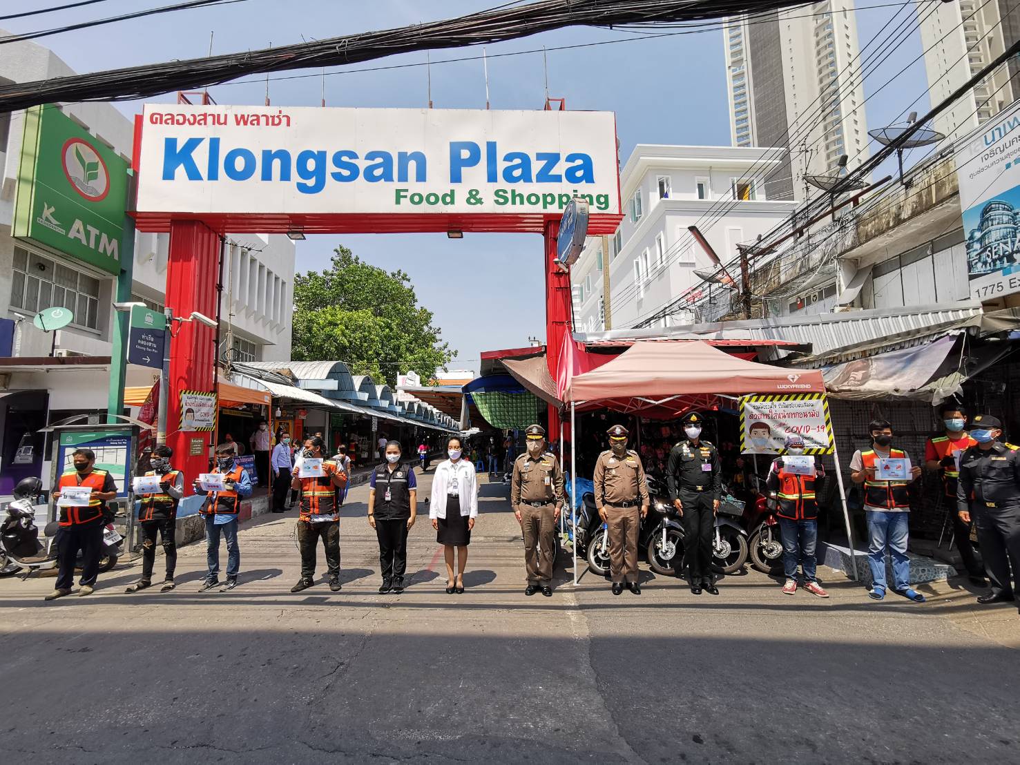 ทำให้บุคคลที่เข้าและออกห้างส่วนใหญ่เป็นพวกพนักงานแกร็ปฟู้ด จะมีชาวต่างชาติมาซื้อสินค้าที่ซูเปอร์มาร์เก็ตบ้างประปราย สำหรับบรรยากาศผู้ค้าในตลาดคลองสาน ซึ่งห่างจากไอคอนสยาม 300 เมตร พบว่า ผู้ค้าอาหารสำเร็จรูปและเสื้อผ้า วางแผงขาย ให้บริการกันเต็มพื้นที่ โดยเจ้าหน้าที่สำนักงานเขตคลองสานทำการแจกสติ๊กเกอร์ยืนเว้นระยะ 1 เมตร ติดบอกตำแหน่งที่พื้นอำนวยความสะดวกให้แก่ลูกค้าที่จะมาซื้อข้าวของตามร้านต่างๆ และติดแผ่นป้ายประชาสัมพันธ์รักษาระยะห่างทางสังคม ซึ่งพ่อค้าและแม่ค้าทุกแผงต่างสวมหน้ากากอนามัยและมีเจลล้างมือเตรียมไว้ให้ลูกค้าเพื่อความปลอดภัยด้วยเช่นกัน.