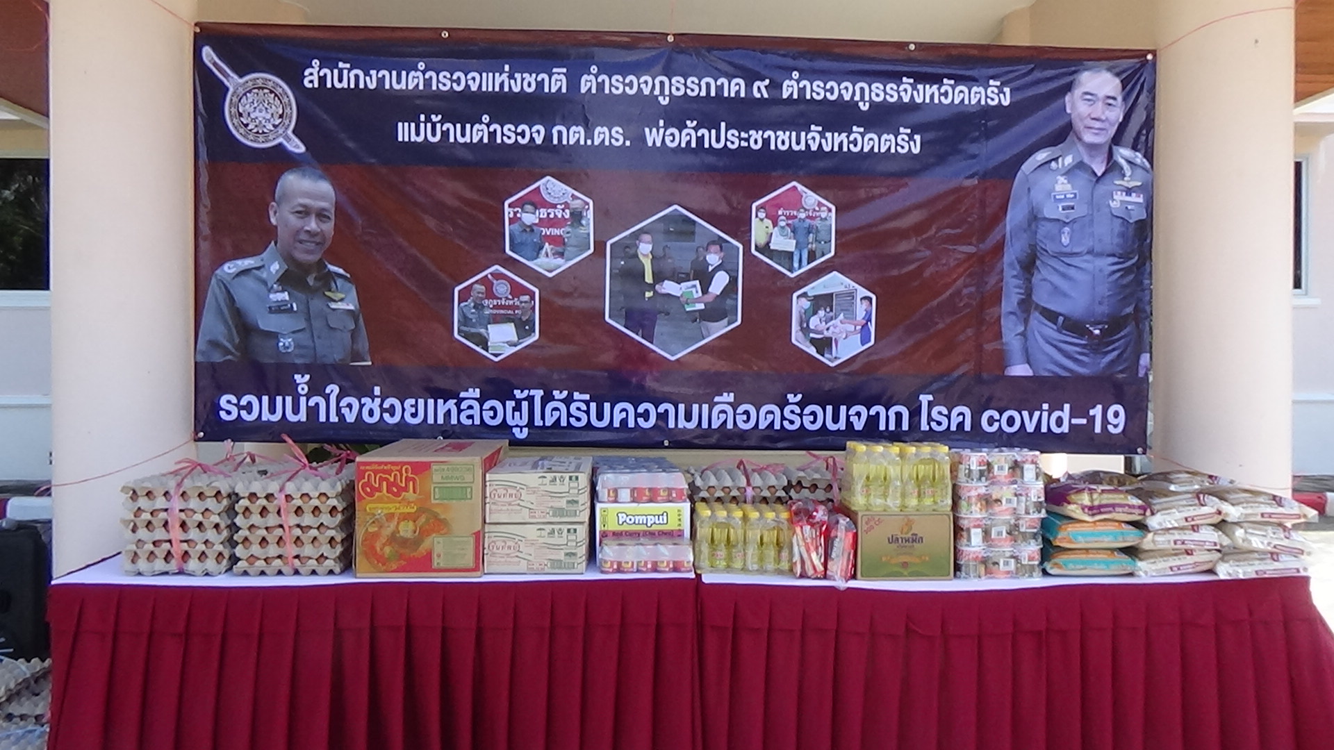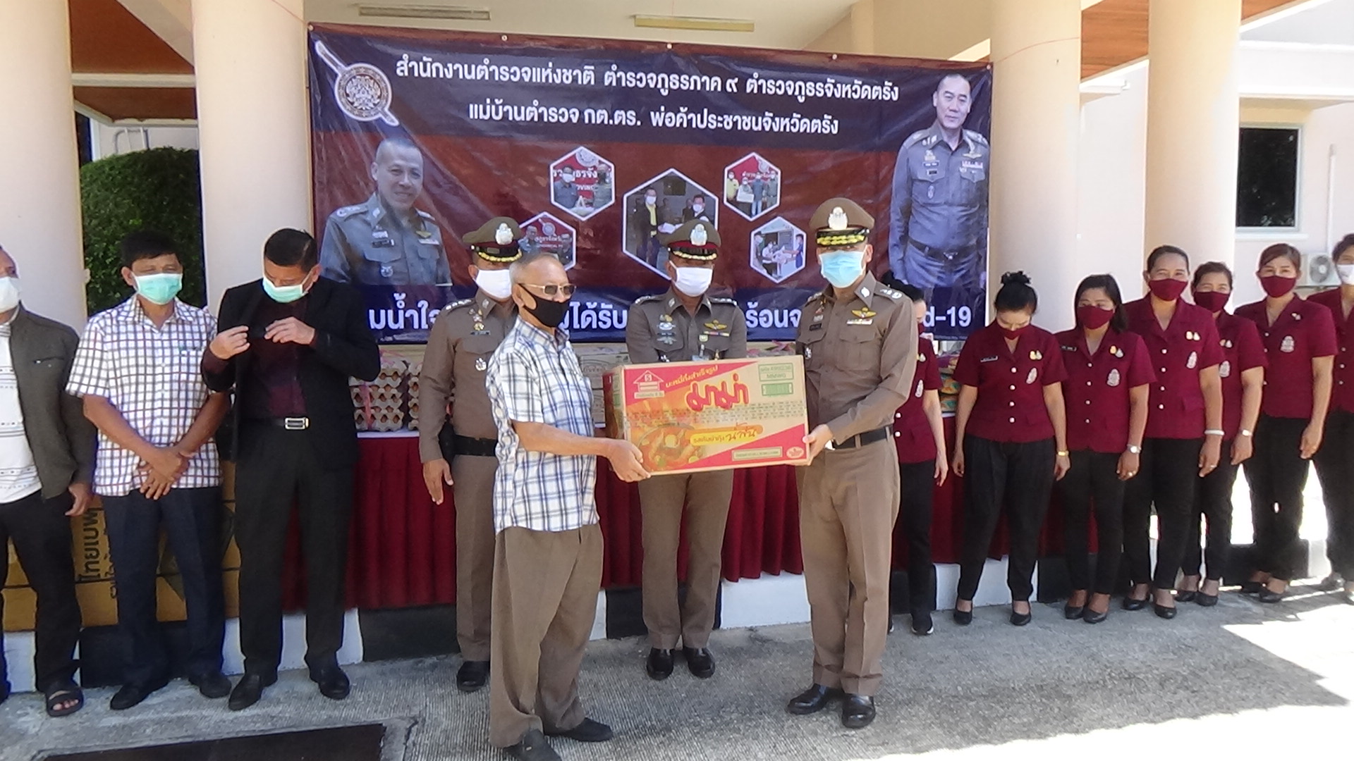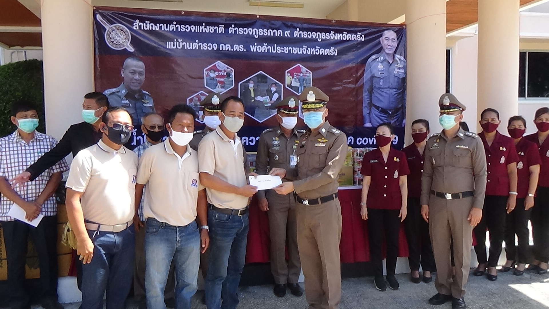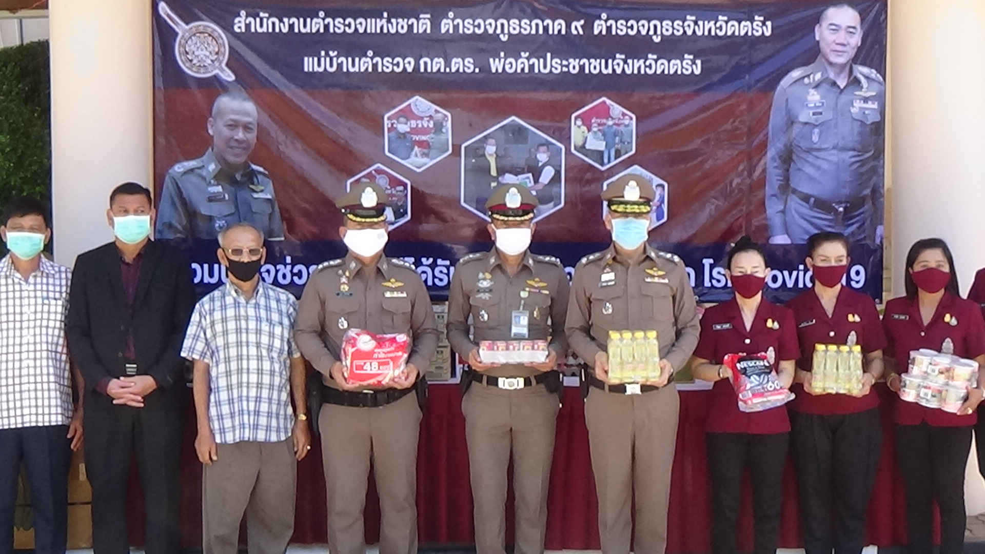 คณะกรรมการตรวจสอบและติดตามการบริหารงานตำรวจจังหวัดตรังและภาคเอกชน ร่วมใจกันมอบสิ่งของและเงินสนับสนุนให้กับตำรวจภูธรจังหวัดตรัง เพื่อนำไปช่วยเหลือครอบครัวของเจ้าหน้าที่ตำรวจที่ได้รับผลกระทบจากโควิด-19 ตามนโยบายของผู้บัญชาการตำรวจแห่งชาติ
