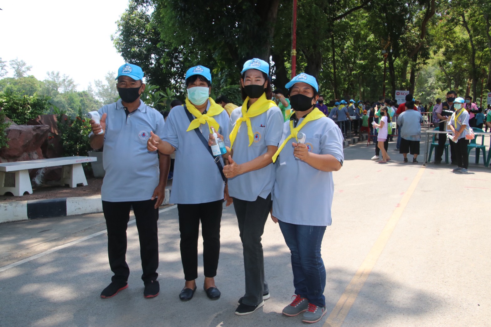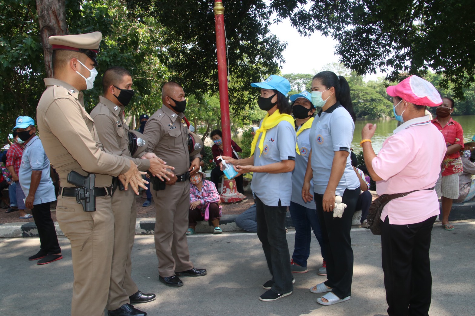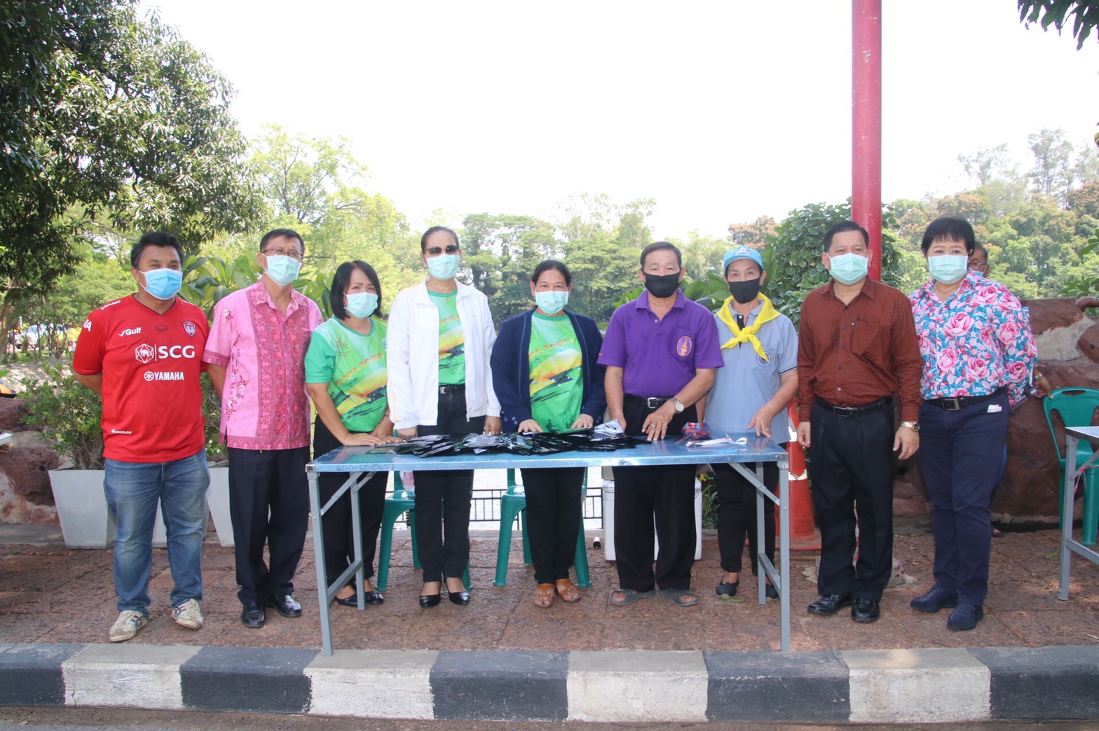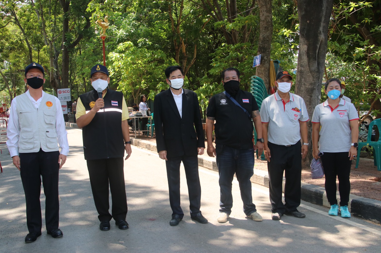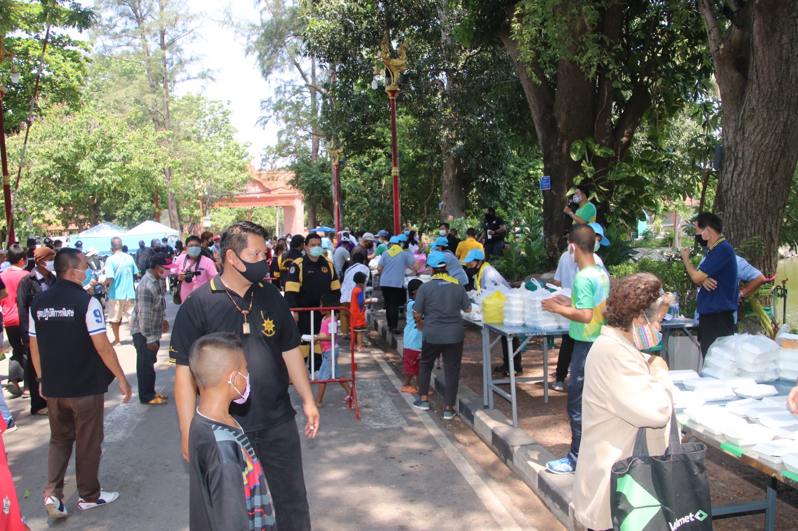 โดยมีนายรณภพ เวียงสิมมา นายอำเภอบ้านโป่ง นายคเชนท์ พูลจันทร์ ผู้จัดการส่วนสัมพันธ์ SCG โรงงานบ้านโป่ง นายนิสันต์ ง่วนสำอางค์ (กำนันฉุย) กำนันตำบลท่าผา ตัวแทนบริษัทราชาชูรส ตัวแทน บริษัท ยูทิลิตี้ ร.ต.ท. สุชาติ สุขแป้น หัวหน้าสายตรวจตำบลท่าผา หัวหน้าส่วนราชการเทศบาลเมืองท่าผา, ผู้ใหญ่บ้าน,สารวัตรกำนัน,แพทย์ ,ผู้ช่วย ร่วมแจกข้าวและหน้ากาก , แอลกอฮอล์เจล, และเจ้าหน้าที่ ป้องกัน ,อสม. รวมด้วยช่วยกันตรวจคัดกรองจัดระยะห่างเพื่อไม่ให้เกิดการแพร่กระจายเชื้อ ครั้งที่ 1 ที่สระน้ำโกสินารายณ์ หมู่ที่ 19 ตำบลท่าผา อำเภอบ้านโป่ง จังหวัดราชบุรี
