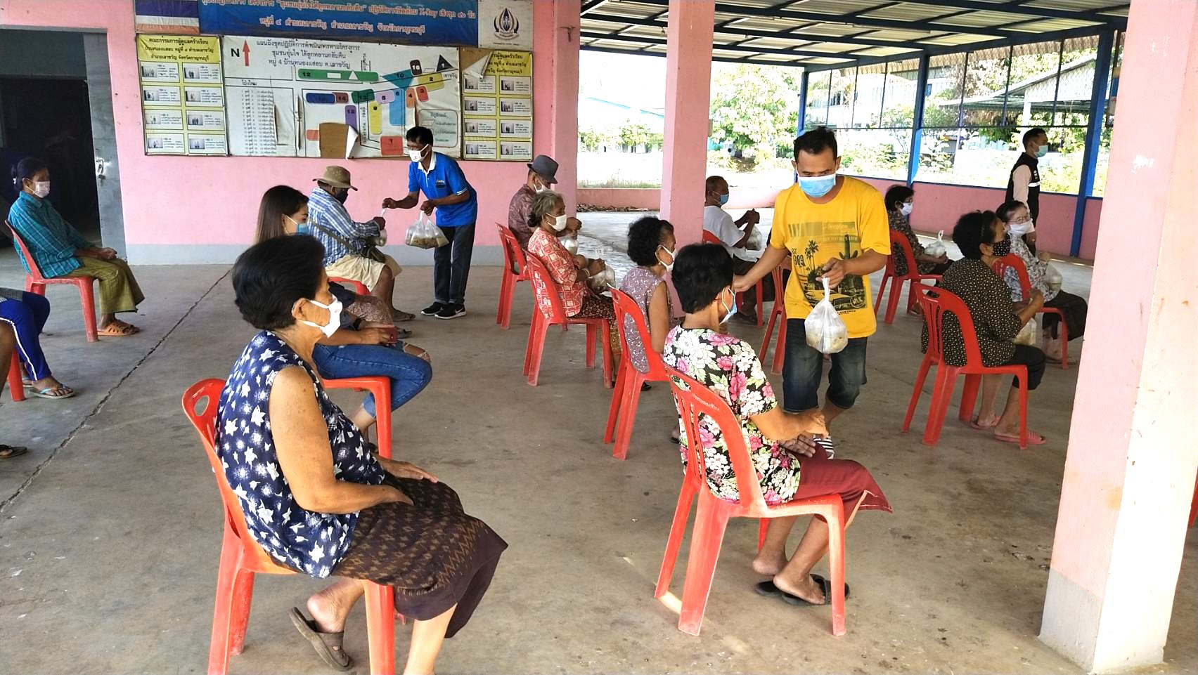 ได้แก่ ผัดโป้ยเซียน แกงเขียวหวานไก่ และต้มจืดเต้าหู้ มอบให้กับผู้ที่ได้รับผลกระทบจากการแพร่ระบาดของเชื้อไวรัสโคโรนา 2019 (โควิด-19) ผู้สูงอายุ ผู้พิการ ผู้ป่วยติดเตียง และผู้ยากจน เพื่อช่วยเหลือลดภาระค่าใช้จ่ายในครัวเรือน เสริมสร้างความสัมพันธ์ที่ดีสามัคคีปรองดองสมานฉันท์ในหมู่บ้าน โดย องค์การบริการส่วนจังหวัดกาญจนบุรี ได้สนับสนุนงบประมาณดำเนินการตั้งต้นโรงครัวหมู่บ้านละ 30,000 บาท และจะได้ประสานองค์กรปกครองส่วนท้องถิ่น และภาคเอกชนผู้ใจบุญให้การสนับสนุนต่อยอดการดำเนินงานโรงครัวหมู่บ้าน เพื่อดูแลช่วยเหลือบุคคลดังกล่าวต่อไป