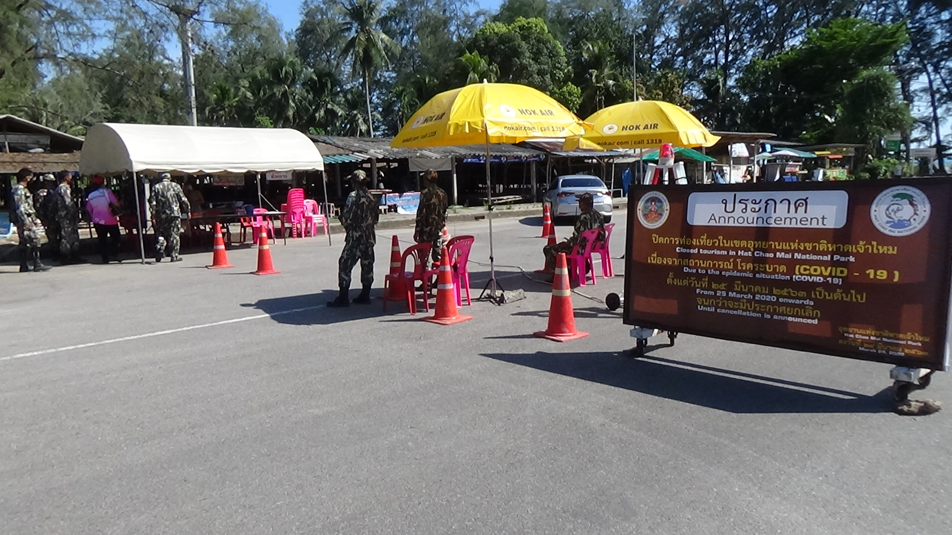 อุทยานแห่งชาติหาดเจ้าไหมจังหวัดตรัง ตั้งจุดสกัดเข้มก่อนถึงชายหาดปากเมง อำเภอสิเกา ซึ่งเป็นแหล่งท่องเที่ยวที่มีชื่อเสียง โดยห้ามนักท่องเที่ยวเข้าโดยเด็ดขาด หลังจากที่ประชาชนเข้าใจผิดเดินทางมาท่องเที่ยวในช่วงวันหยุด ประกอบกับไม่เข้าใจมาตรการผ่อนปรน ที่บริเวณถนนก่อนถึงก่อนถึงสามแยกหาดปากเมง ตำบลไม้ฝาด อำเภอสิเกา จังหวัดตรัง นายณรงค์ คงเอียด หัวหน้าอุทยานแห่งชาติหาดเจ้าไหม นำเจ้าหน้าที่อุทยานฯตั้งจุดตรวจเข้ม ห้ามไม่ให้นักท่องเที่ยวเดินทางเข้าไปท่องเที่ยวโดยเด็ดขาด พร้อมทั้งกล่าวว่าเนื่องจากแหล่งท่องเที่ยวทั้งทางบกและทางทะเลในเขตรับผิดชอบของอุทยานแห่งชาติหาดเจ้าไหม ยังปิดไม่ให้มีการท่องเที่ยว ตามคำสั่งกรมอุทยานแห่งชาติสัตว์ป่าและพันธุ์พืช เพื่อป้องกันการแพร่ระบาดของเชื้อไวรัสโคโรนา 2019 หรือโควิด-19
